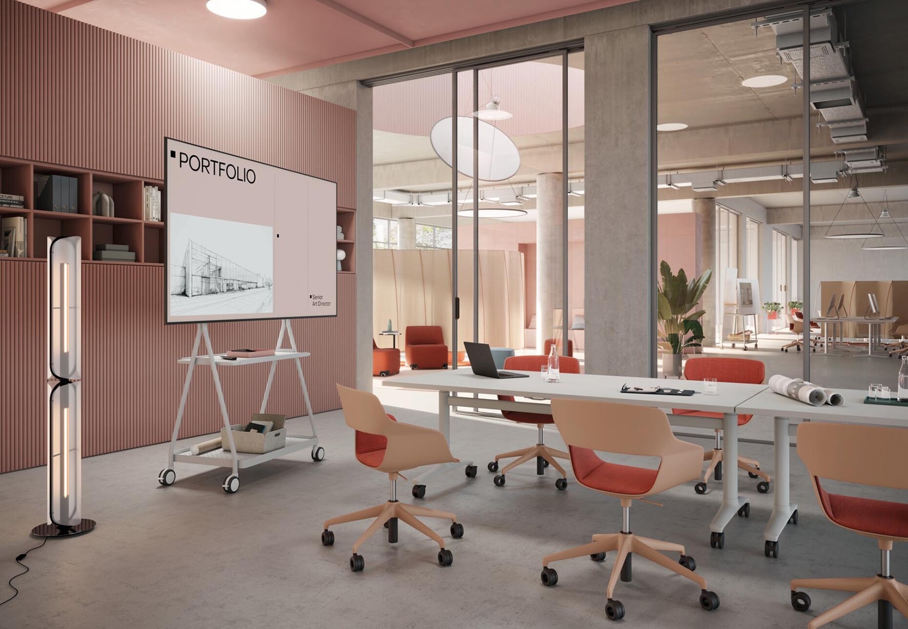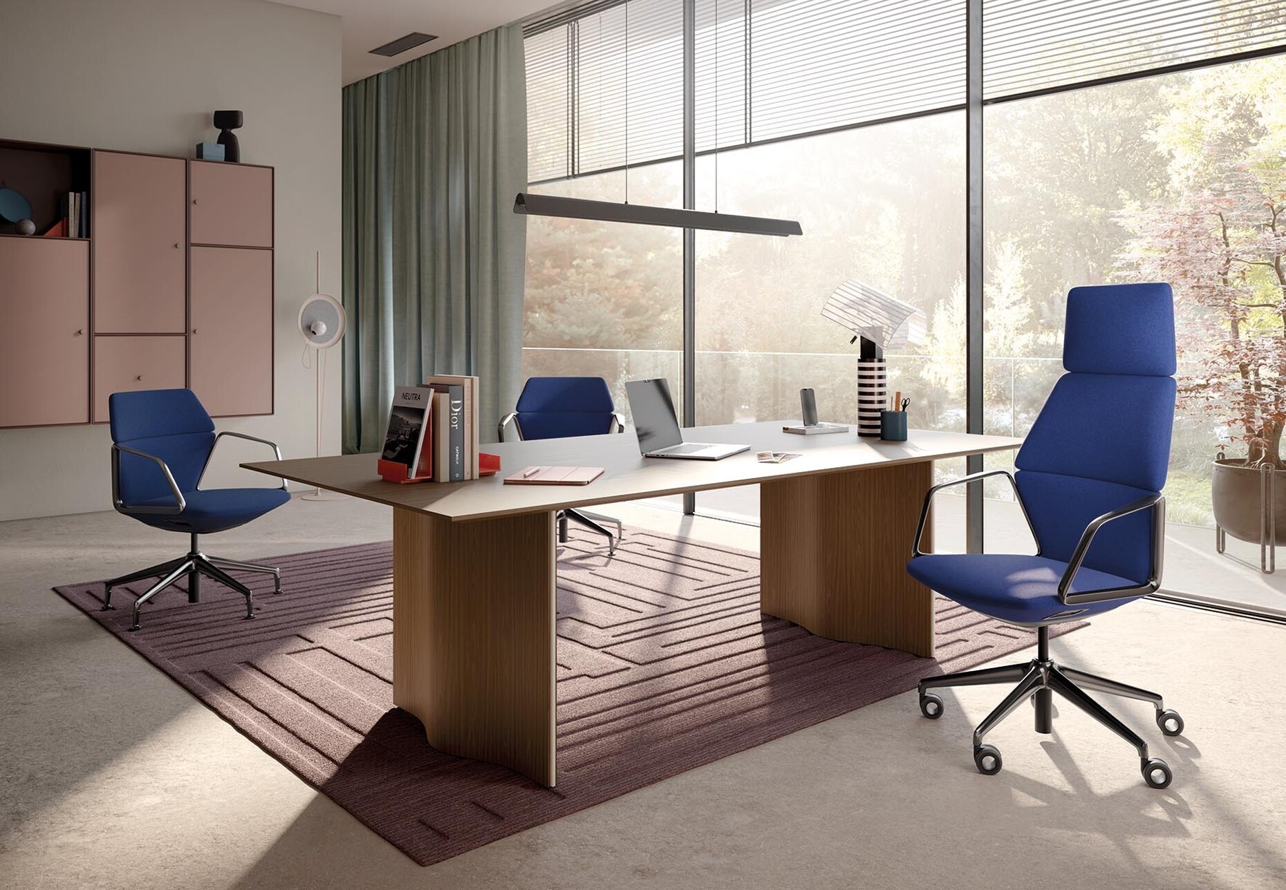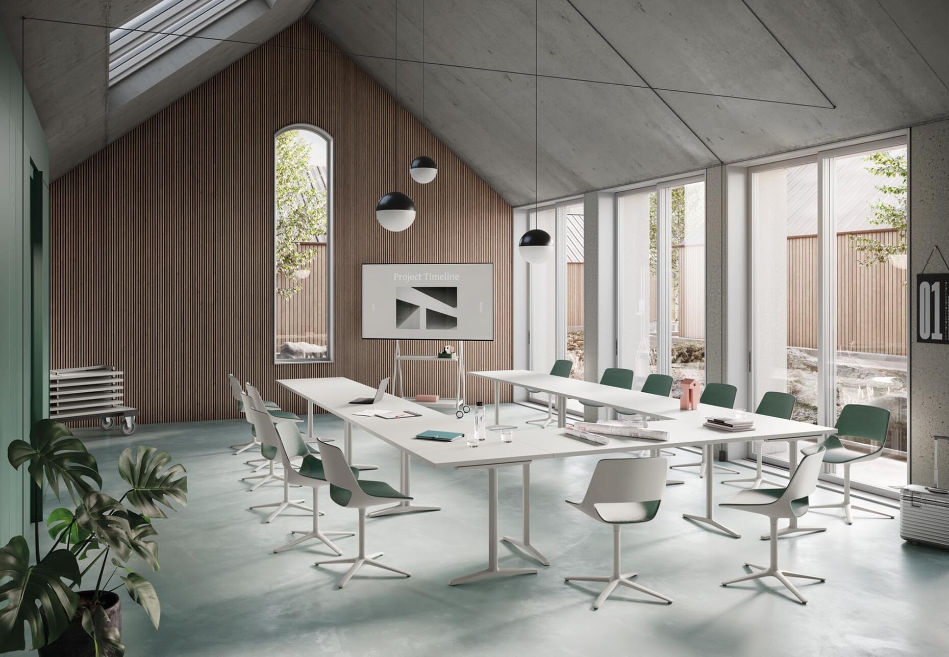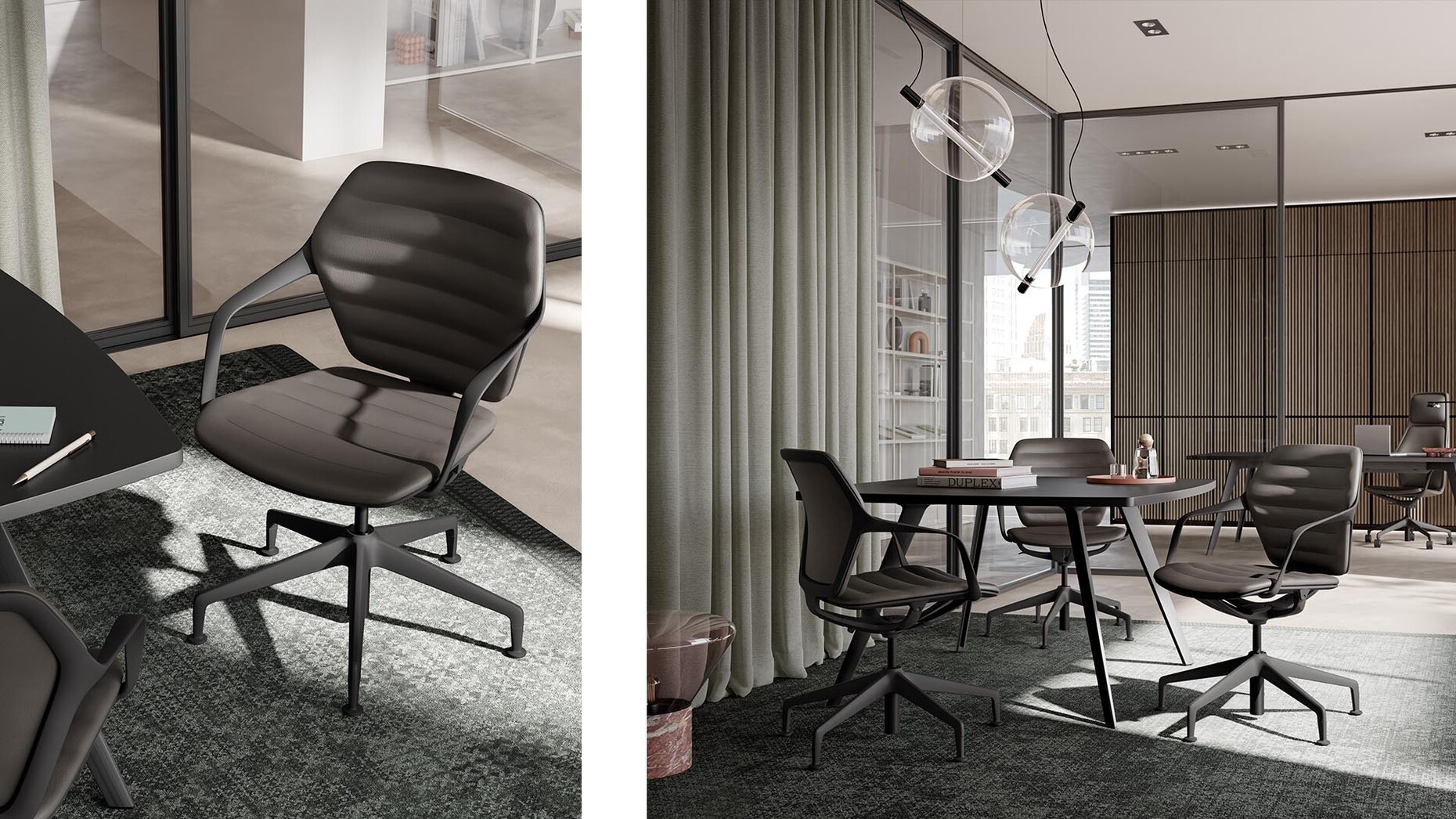 Flexibilität, Funktionalität, Komfort und durchdachtes Design stehen bei Brunner im Fokus, denn "genau solche Lösungen sind entscheidend in dynamischen Umgebungen mit wechselnden NutzerInnen". Dazu gehört der von jehs+laub entwickelte Brunner-Drehstuhl "ray work", der sich den individuellen Körperbewegungen anpasst. Parallel zeigt dieser eine elegante Formsprache, die passgenau in jeden formellen Kontext integriert werden kann. Für den individuellen Bedarf ergänzt Brunner zu den bekannten Netz- und Polstervarianten das Gestell in lava aus recyceltem Kunststoff sowie die Vollpolsterung mit Leder in Wellenabsteppung. Ist der große Auftritt gefragt, steht der elegante Drehstuhl "ray executive" bereit: In drei Rückenhöhen erhältlich und mit perfekt aufeinander abgestimmten Polsterkissen versehen, ist selbst langes Sitzen angenehm. Das ideale Match des "ray executive" ist der Konferenztisch "wave" von Brunner.