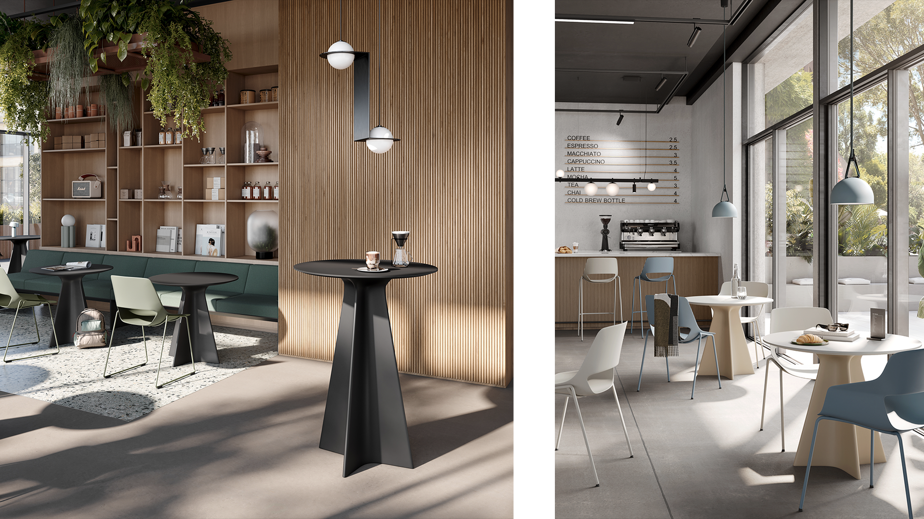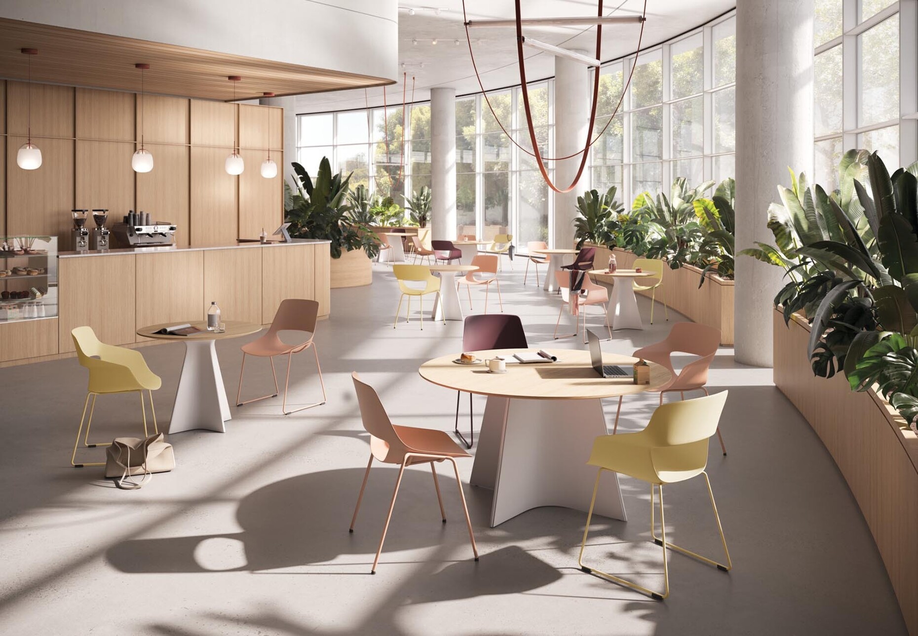 Dazu gehört der Konferenztisch "wave" von jehs+laub, dessen Produktbezeichnung sich in der eleganten Wellenform der Tischbeine widerspiegelt. "Durch die durchdachte Tragkonstruktion inklusive Kabelführung sind unterschiedlichste Tischformen und exklusive Individualisierungen der Tischplatte und -beine möglich", so Brunner. Für die Konferenzräume ist "wave" in der rechteckigen Version aus Stahl oder Holz ideal, für gehobene Hospitality-Bereiche bietet sich die Ausführung in Holz mit runder Tischplatte an. Darüber hinaus kann die wellenförmige Abdeckung aus Holz oder Metall, die magnetisch an der Unterkonstruktion befestigt ist, in unterschiedlichen Farben gebeizt oder pulverbeschichtet werden. Ist mehr Flexibilität gefragt, ist "wave light" die richtige Wahl: Gefertigt aus Kunststoff sind die Bistro- und Stehtische robust wie leichtgewichtig und können mit unterschiedlichen Tischplattengrößen sowie in vielen Farben gewählt werden.
