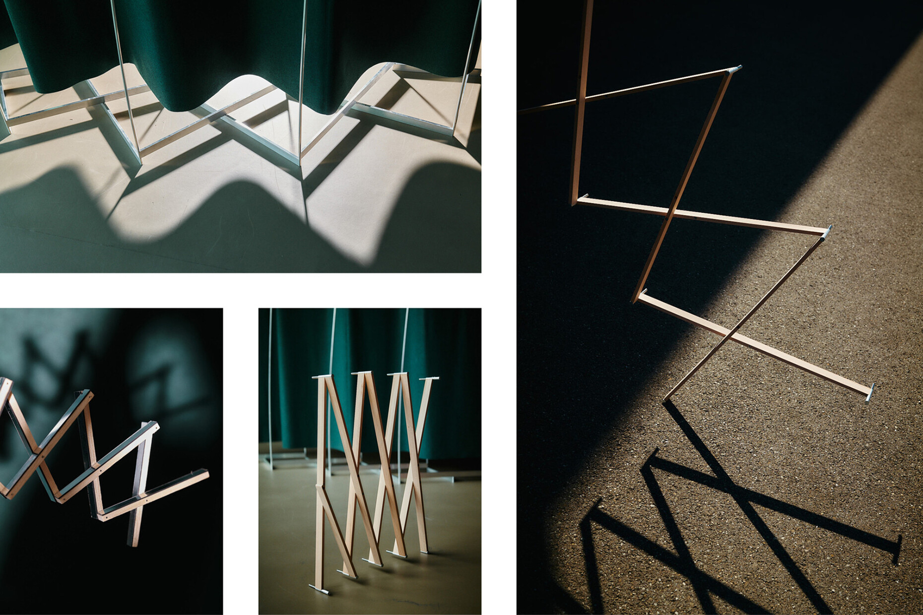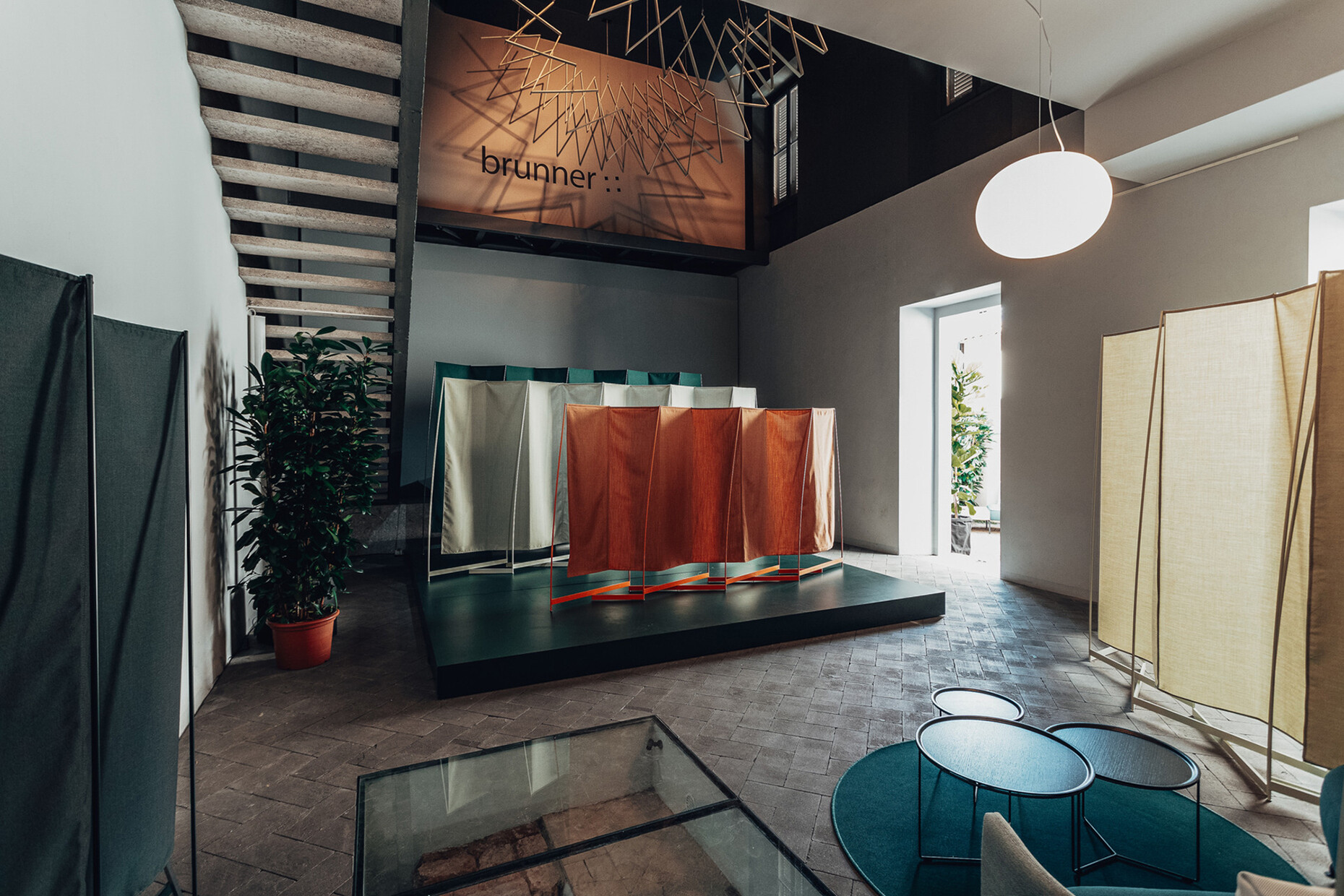 Aurel Aebi: Die Scherenstruktur von "foild" ist ein Licht-Schatten-Spiel, das lebendige Räume schafft. Unsere Szenografie für den Showroom von Brunner in Mailand hat eine variable Größe dargestellt, untermalt mit Musik von einem Akkordeon – ein Instrument dessen Funktion ebenso von Bewegung bestimmt ist. Wir wollten die Themen der Gestaltung sinnlich erfahrbar werden zu lassen, um die BesucherInnen von einem oberflächlichen Schauen zum bewussten Hinsehen zu leiten. In der Vielfalt des Salone del Mobile und der Milan Design Week kurz zur Ruhe zu kommen, um sich ein Produkt genauer anzuschauen, ist schwer. Die Szenografie hat die BesucherInnen zum Staunen gebracht und ihren Fokus somit auf das Produkt gelenkt. Was wir in Mailand geschafft haben, ist eine Atmosphäre zu kreieren, die unsere Vision veranschaulicht: Flexible Räume zu kreieren, in denen ein Wissensaustausch stattfinden kann, um gemeinsam Ideen zu entwickeln. Ich sage immer eine Szenografie muss so gestaltet sein, dass sie auch ohne Erklärung funktioniert. Sie muss in gewisser Weise berühren.