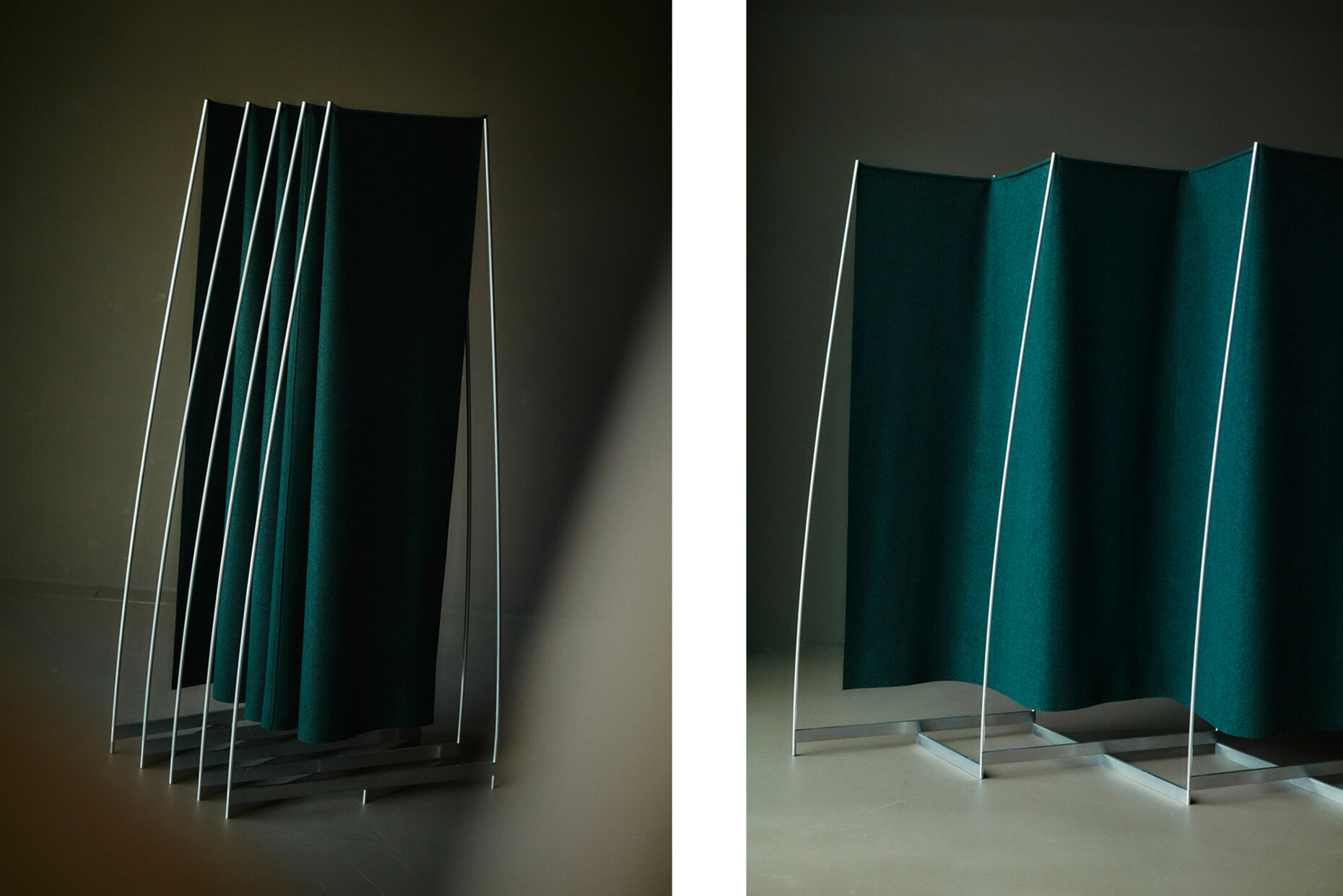 Dr. Marc Brunner: Die Struktur von "foild" besteht aus Aluminium und kann dank der werkzeuglosen Montage und Demontage bei Bedarf leicht repariert werden. Ebenso können die NutzerInnen das textile Element jederzeit selbst austauschen, was ich genial finde. Auch eine Erweiterbarkeit ist gewährleistet, da es nur wenige unterschiedliche Elemente gibt. Ich denke die Summe der Dinge, von der Leichtigkeit des Materials bis zu dem geringen CO2-Fußabdruck, macht das nachhaltige Design im Endeffekt aus. Als ein Grundarchetyp hat "foild" zudem eine gestalterische Qualität, die auf lange Sicht aktuell bleibt: Ein Produkt, das auch morgen noch Sinn macht. Wir versuchen mit möglichst wenig Materialität eine starke Botschaft zu vermitteln: "foild" ist ein Werkzeug für die individuelle Raumgestaltung. Flexibel und leicht kann man den Raumtrenner immer genau dort aufstellen, wo er gerade gebraucht wird. Die Einsatzmöglichkeiten sind sehr vielfältig.