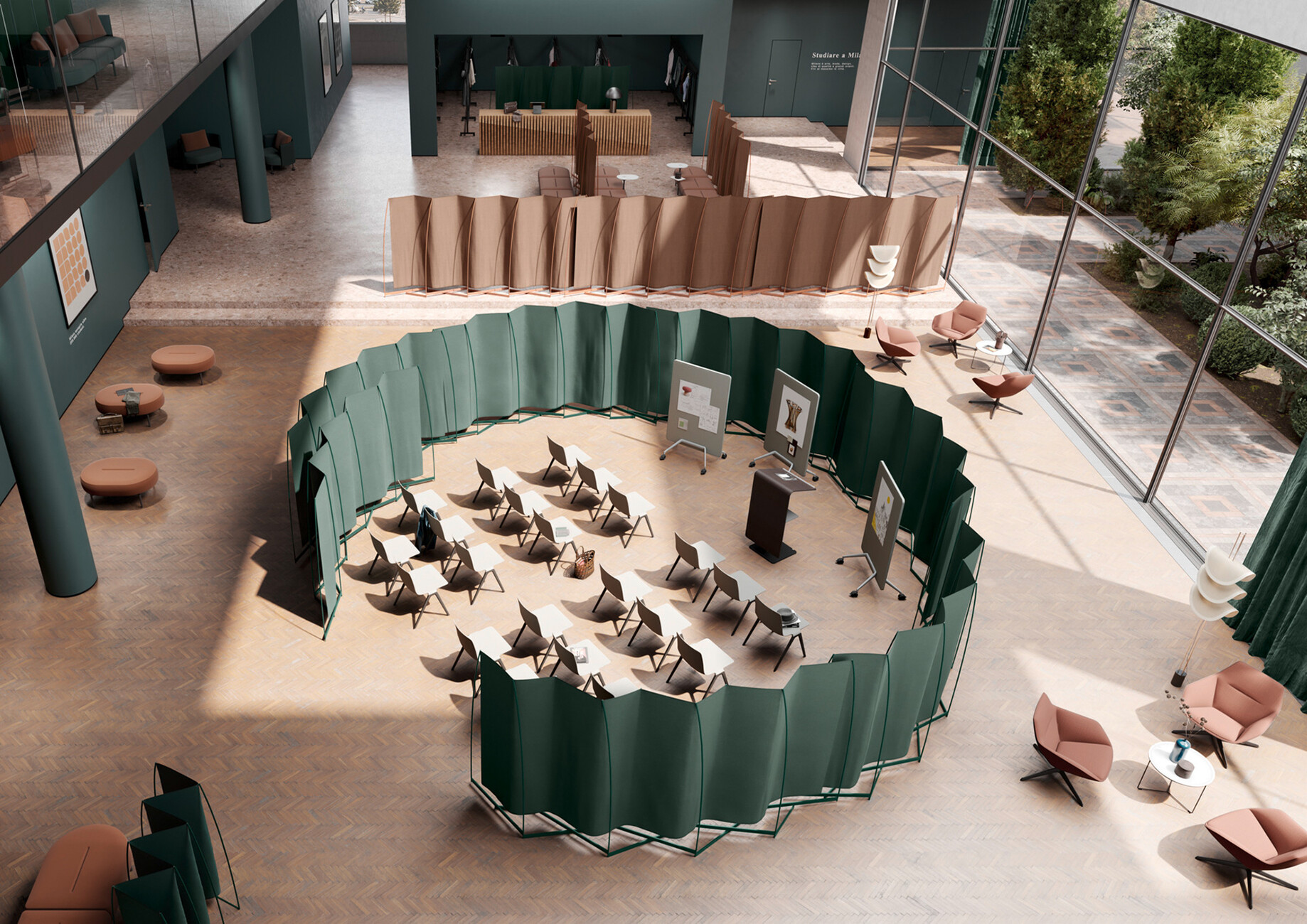 Anlässlich der Milan Design Week 2023 habt ihr mitten im quirligen Stadtteil Brera eine ruhige Oase geschaffen, in der die Funktion von "foild" in einer künstlerischen Installation erlebt werden konnte, ähnlich einer Ballettaufführung – inklusive Bühnenbild und Sounduntermalung. Welche Emotionen wolltet ihr mit dieser Szenografie vermitteln?