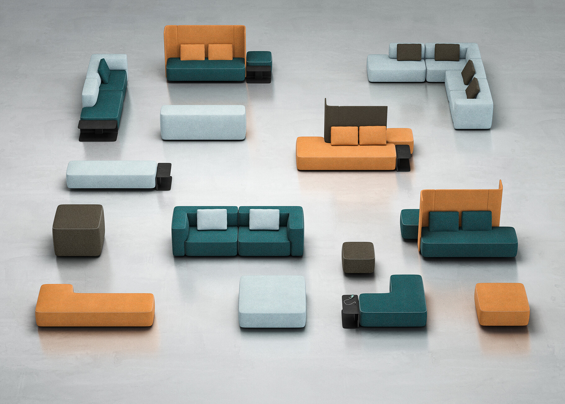 So spielerisch, wie die Elemente kombiniert und genutzt werden können, wurden sie auch entworfen. "Wir benutzen die Polster im Grunde wie Bauklötze", meint Markus Jehs. Insgesamt gibt es neun Elemente, die sich immer wieder anders kombinieren lassen. "In allen drei Dimensionen haben wir die unterschiedlichen Funktionen herausgekitzelt", so die Produktdesigner. Kuben, L-förmige und rechteckige Polstermodule verschiedenster Dimensionen lassen sich darüber hinaus durch Trennwände zu solitären Sitzinseln zusammenstellen.