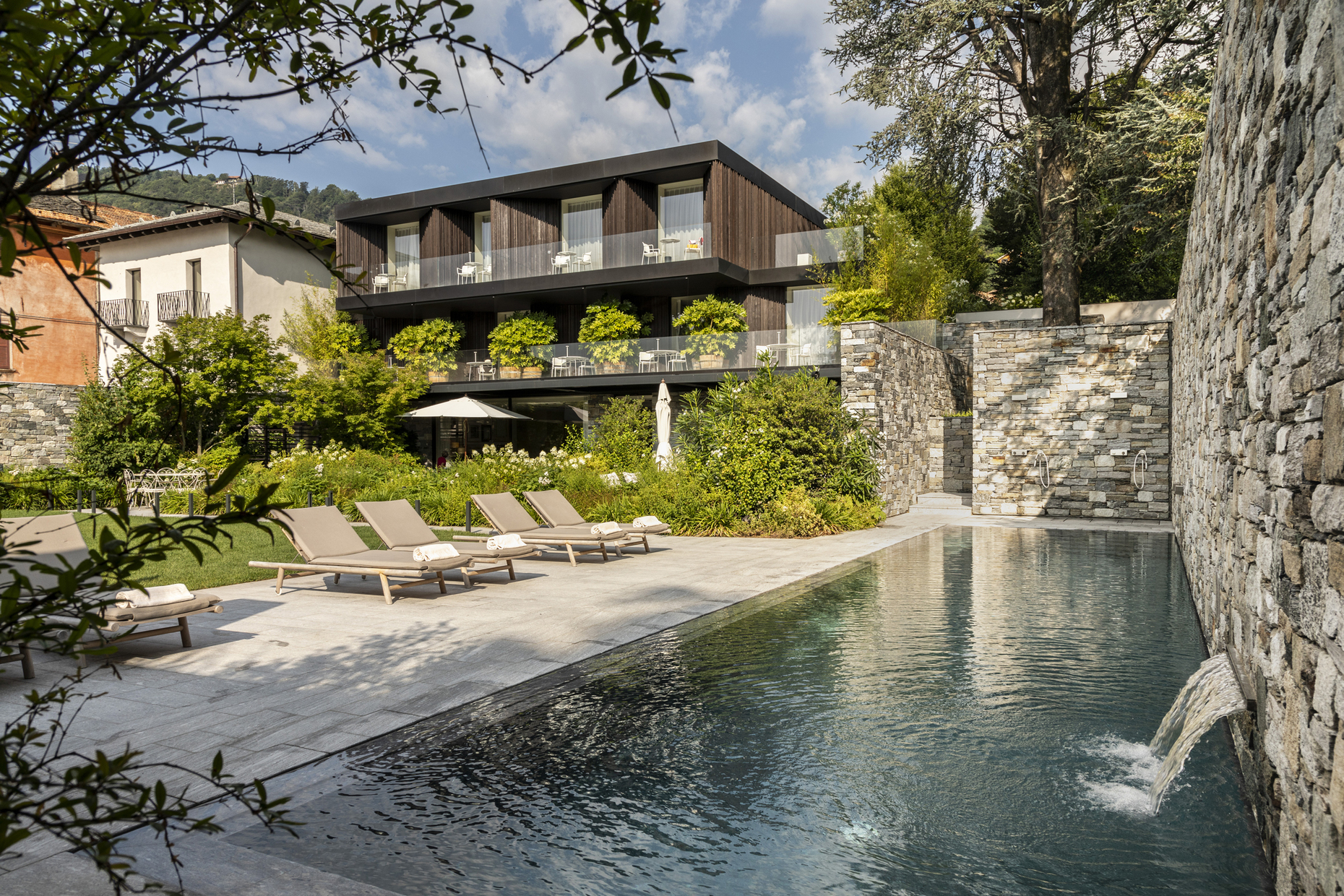 Wer die Casa Fantini verstehen will, sollte Daniela Fantini kennenlernen. Sie leitet in zweiter Generation die italienische Armaturenmanufaktur gleichen Namens, die seit jeher ihren Sitz in Pella direkt am Seeufer hat. Daniela Fantini steht für eine Unternehmerpersönlichkeit mit tiefer Verwurzelung in der Region, Demut und Offenheit. Aus ihrer eigenen Geschichte ist die Geschichte der Casa Fantini zu verstehen, die der Designer und Architekt Piero Lissoni im Jahr 2017 realisierte. Das Hotel grenzt unmittelbar an die Altstadt von Pella und umfasst neben einem historischen Gebäude aus dem 19. Jahrhundert einen zurückhaltenden Neubau aus Holz, Stein und Metallstreben, der im Dialog mit dem Bestandsbau steht. Ein wunderbarer Garten mit Schwimmbad verbindet die Casa Fantini mit der Seepromenade. Bei gerade einmal acht Doppelzimmern und zwei Suiten im Altbau, alle mit einem Balkon zum See ausgestattet, sind die öffentlichen Bereiche wie Lobby, Restaurant und Bar großzügig gestaltet. Unverkennbar ist dabei die ebenso präzise wie elegante Handschrift von Piero Lissoni: Erlesene und qualitativ hochwertige Materialien kombiniert mit Klassikern des italienischen Designs gehen eine lässig-internationale Symbiose ein. Im hauseigenen Restaurant verwöhnt Sternekoch Paolo Bullone den Gaumen der Gäste derweil mit einer ebenso raffinierten wie bodenständigen Küche.