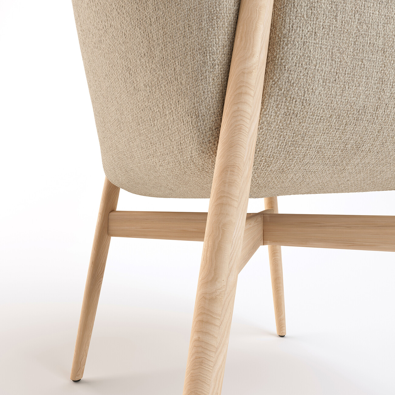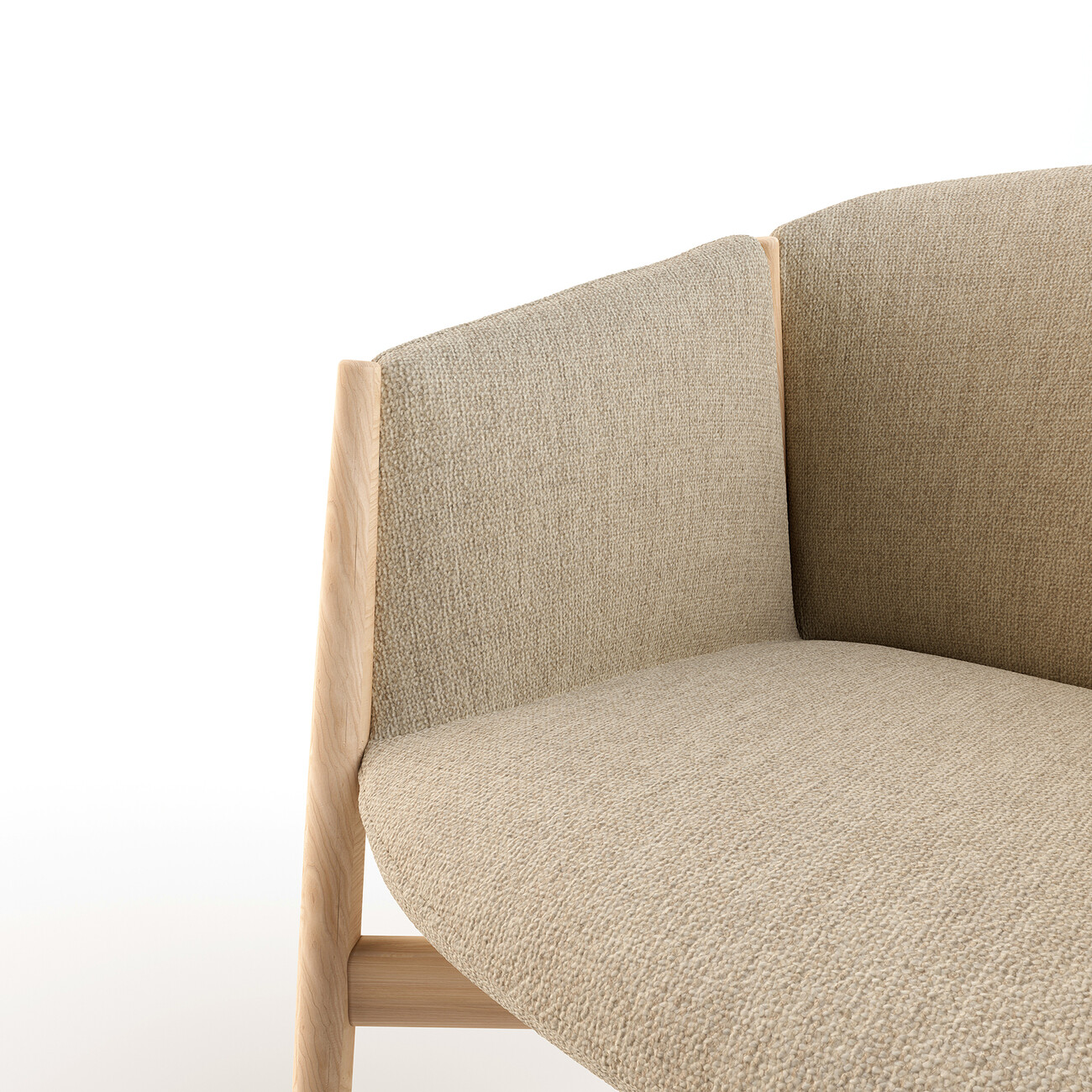 "Kagu" ist ein gestalterisch wie auch technisch komplexer Entwurf. Dabei wirkt der Armlehnstuhl mit seiner reduzierten Formensprache klar und geometrisch präzise, ohne unterkühlt zu sein. Das liegt insbesondere an den verwendeten Materialien, die warm anmuten und auch haptisch interessant sind: Während das Gestell aus naturbelassen geöltem oder offenporig lackiertem Eschen- oder Eichenholz gefertigt wird, sind für die gepolsterte Sitzschale verschiedene Textil- und Lederbezugsstoffe vorgesehen. "Kagu ist eine gelungene Symbiose aus zwei für COR bedeutenden Materialien – Polster und Holz", sagt Leo Lübke, geschäftsführender Gesellschafter des Unternehmens. "Beide stehen symbolisch für die COR Qualitäten."