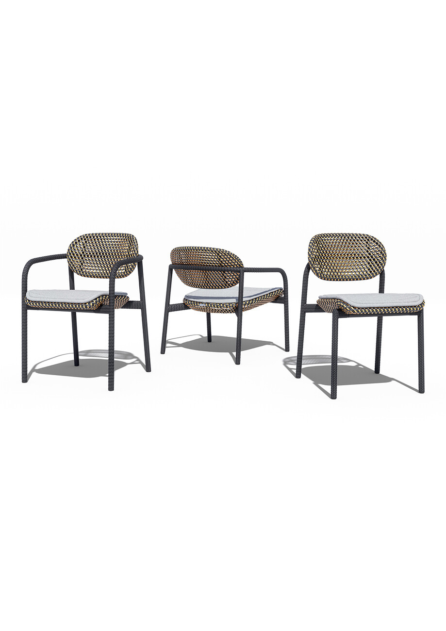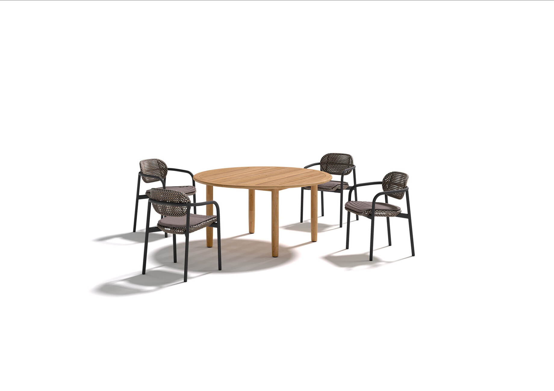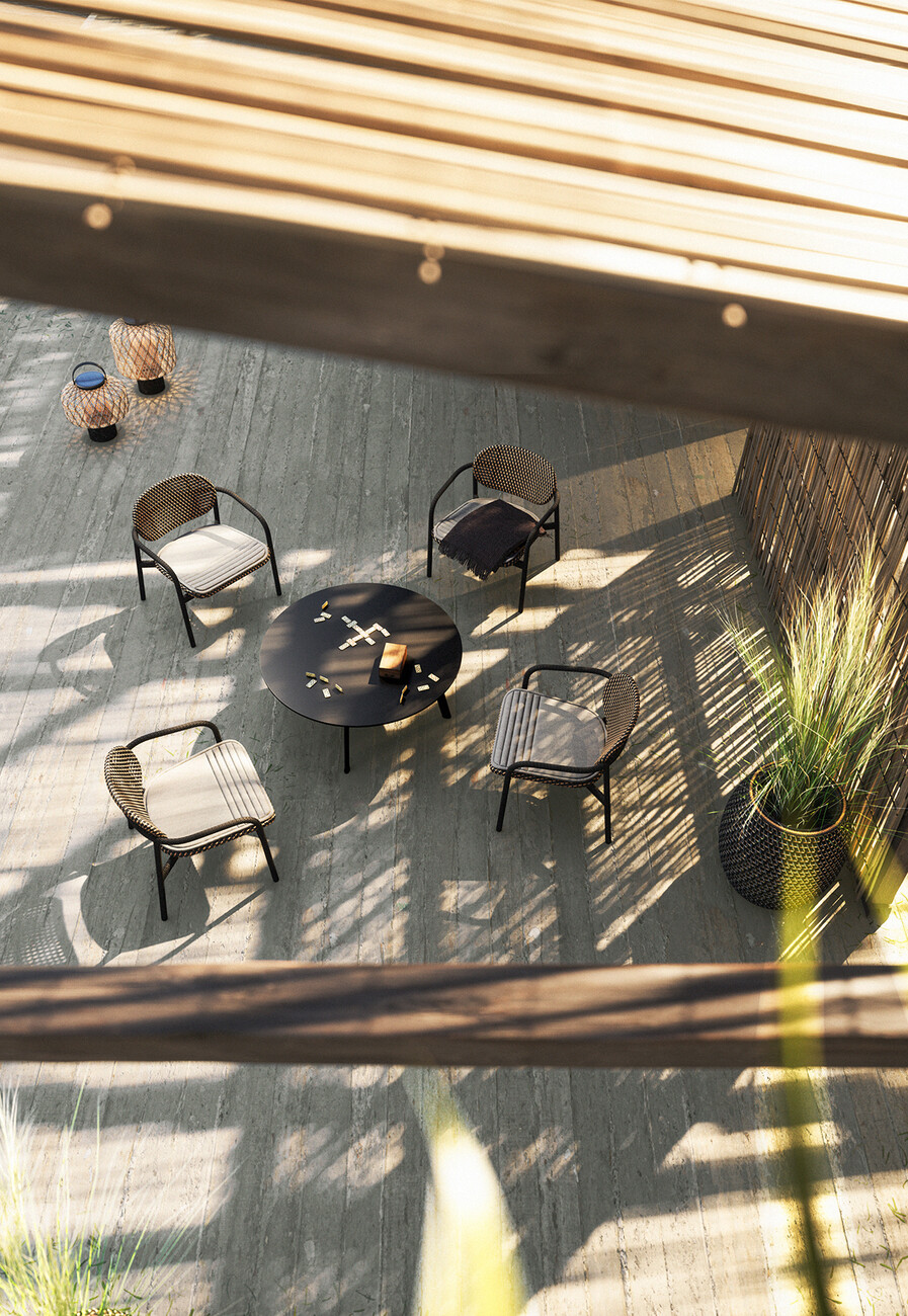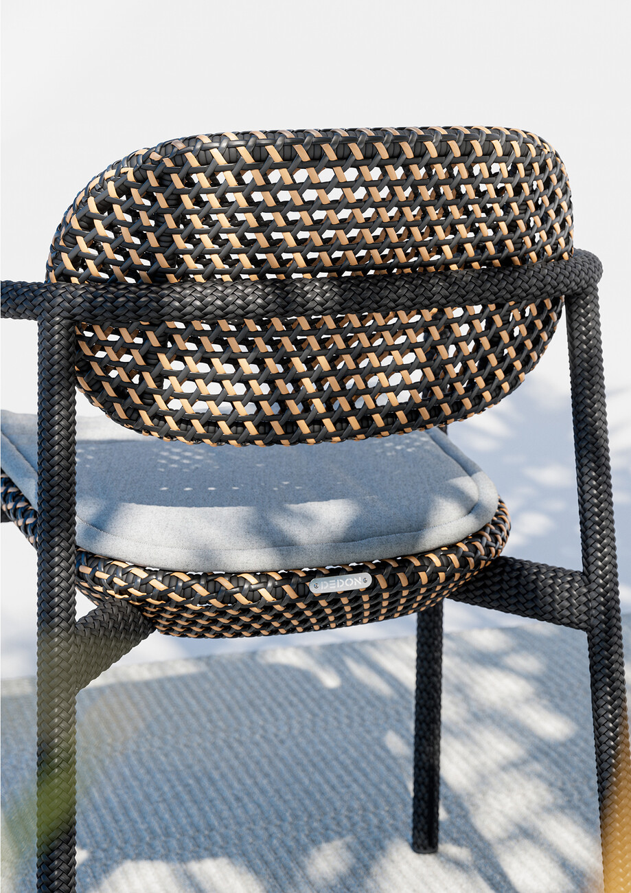 "Grundidee meines Entwurfs war es, die klassischen Flechtmöbel von Dedon neu zu interpretieren", so Benjamin Baum. Für die Kollektion "ROII" setzt der Designer auf das Handwerk und die Kraft des Kontrastes. Die Rahmen der Stühle, Sessel, Barhocker und Sonnenliegen sind mit der Dedon-Faser "Touch" in Fischgrätmuster umflochten und bieten eine Haptik wie geschmeidiges Leder. In dunklem Anthrazit und mit klaren Linien ist das Gestell eine ideale Bühne für den Sitz und die Rückenlehne, denn die sind wahre Hingucker: Die neue Faser "Tobacco" schafft im Wechsel aus hellen und dunklen Fasern eine auffällig lebendige Optik, die die traditionelle Handwerkskunst vollgeflochtener Möbel von Dedon in den Mittelpunkt stellt. Luftdurchlässig und stabil sind diese auch bei hochsommerlichen Temperaturen angenehm komfortabel. Dank des leichten Gewichts lässen sich die Outdoormöbel der Kollektion "ROII" zudem ganz einfach in der Position versetzen. (am)