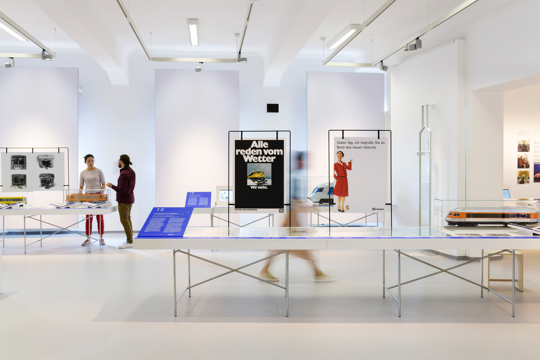 Ab den 1920er-Jahren wirkte sich der Geschwindigkeitsrausch des noch jungen Jahrhunderts auch auf die Gestaltung von Schienenfahrzeugen mit einer stromlinienförmigen Formensprache aus. Nach dem Zweiten Weltkrieg war es dann vor allem die Hochschule für Gestaltung in Ulm, die zum Motor neuer Designentwicklungen wurde. Viele der AbsolventInnen wählten die Bahn als berufliches Betätigungsfeld, wie etwa der Designer Alexander Neumeister, dessen Skizzen und das Wettbewerbsmodell für den ICE T ein zentrales Kapitel in der Ausstellung bilden. Gleichzeitig rief die Bahn ein "Design-Center" ins Leben, das 1971 den ersten internationalen Kongress zum Bahndesign im heutigen DB Museum in Nürnberg veranstaltete.