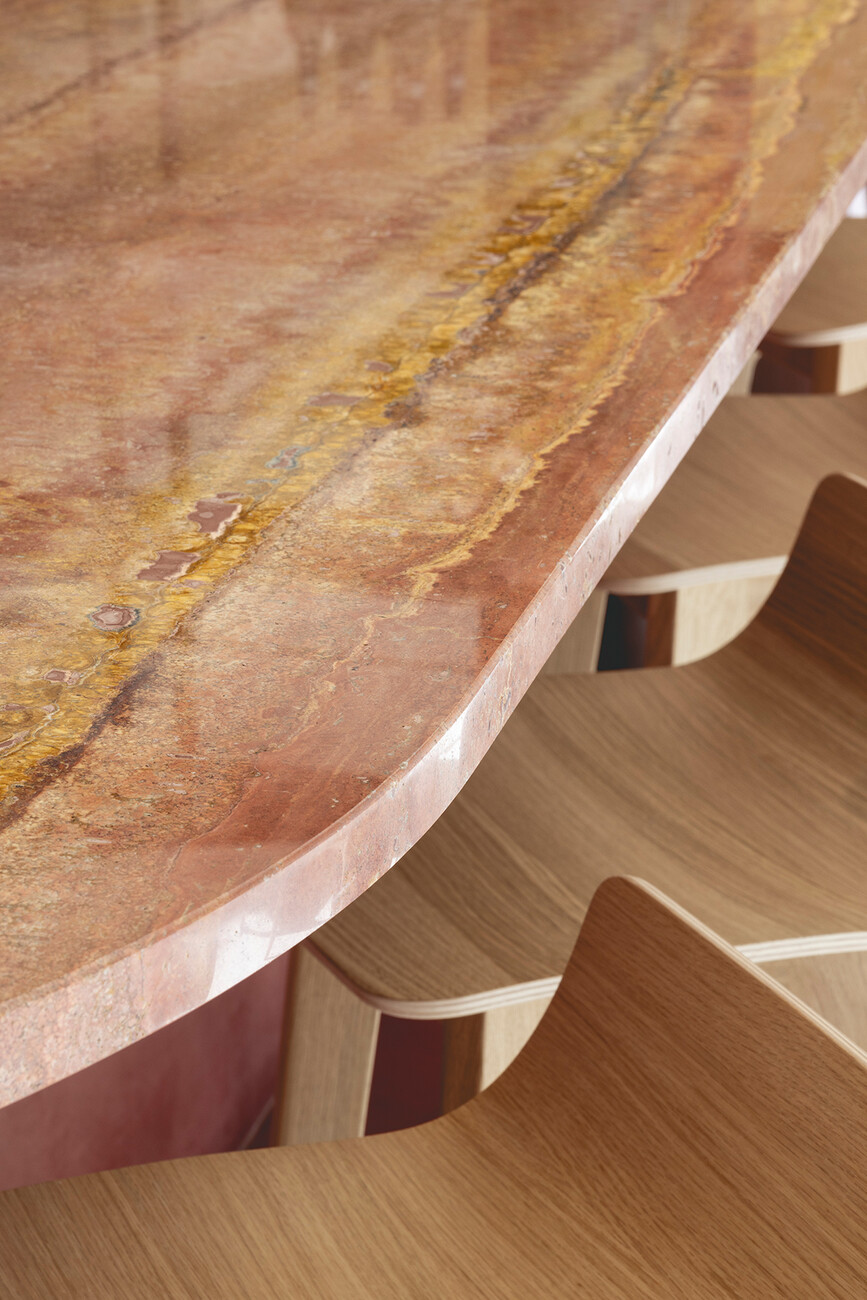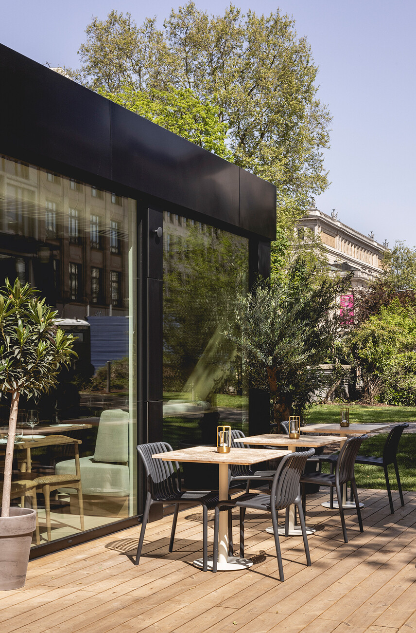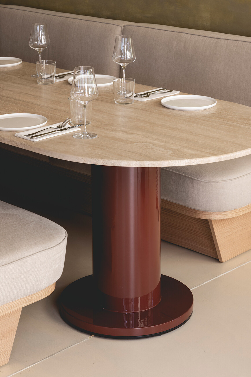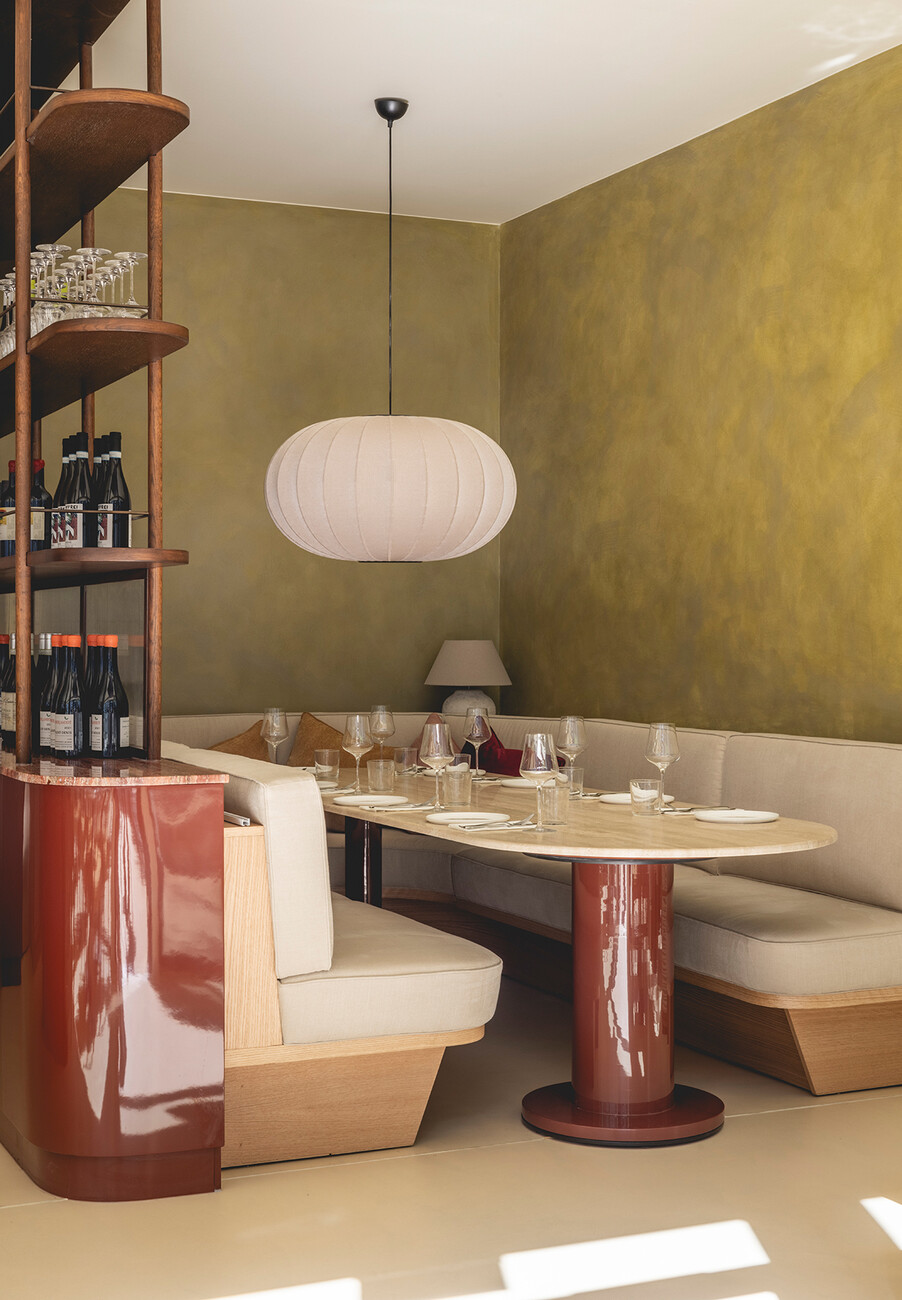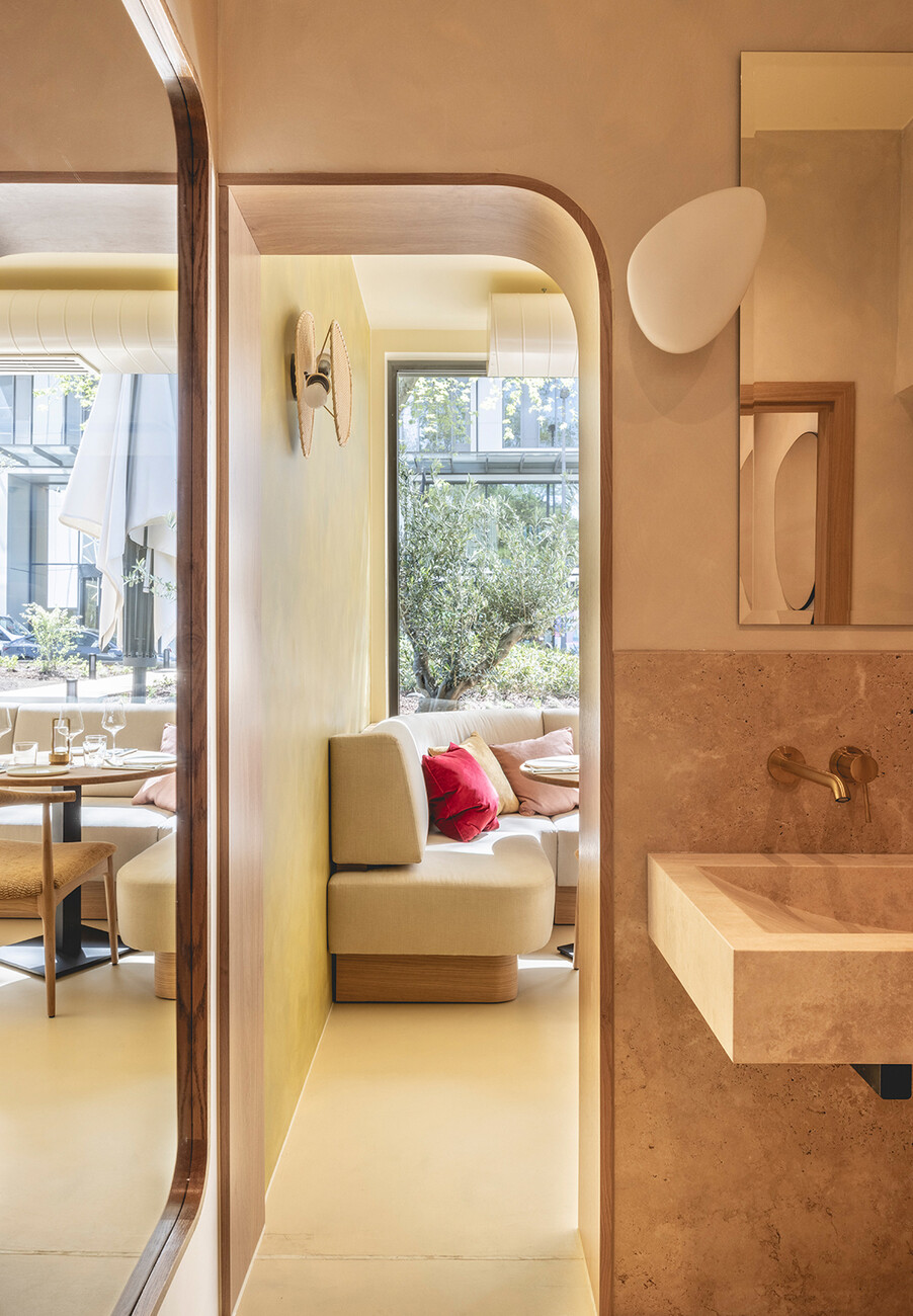 Franky Rousell: Als Studio legen wir bei jedem Projekt den Schwerpunkt auf sensorisch orientiertes Design. In Zusammenarbeit mit Sarah Wakefield, der Kreativdirektorin von Jolie, und Emma Flowers, der leitenden Designerin, waren unsere Entscheidungen für "The Nest" darauf ausgerichtet, eine luftige, entspannte Atmosphäre zu schaffen, die alle Sinne anspricht. Im Mittelpunkt steht eine auffällige Bar aus rotem Glanz und Naturstein, die den Raum prägt und sowohl funktionalen als auch ästhetischen Zwecken dient. Sie zieht nicht nur die Blicke auf sich, sondern unterstreicht auch die Identität des Restaurants als lebendiger sozialer Treffpunkt. Die haptischen Elemente sind so gestaltet, dass sie Komfort und Luxus ausstrahlen. Die Sitzbänke sind weich und einladend und ermöglichen lange, gemütliche Mahlzeiten und gute Unterhaltungen. Oberflächen wie der kühle rosafarbene Marmor an der Bar, Naturholz und weiche Textilien im Lounge-Bereich im Freien regen zum Berühren an und tragen zu einer ruhigen und doch raffinierten Umgebung bei. Der sorgfältig zusammengestellte Klangteppich besteht aus einer Mischung von Ambient-Musik, die die visuelle Ästhetik ergänzt und die Atmosphäre vom morgendlichen Kaffee bis hin zu den entspannten Cocktails am Abend unterstützt. Diese akustische Landschaft trägt dazu bei, dass die gesamte sensorische Reise unterstützt wird, anstatt sie zu übertönen. Der Essbereich und die Bar sind mit einer Mischung aus Sandelholz, Bergamotte und Zitrusfrüchten aromatisiert, die für ihre beruhigende Wirkung bekannt sind.