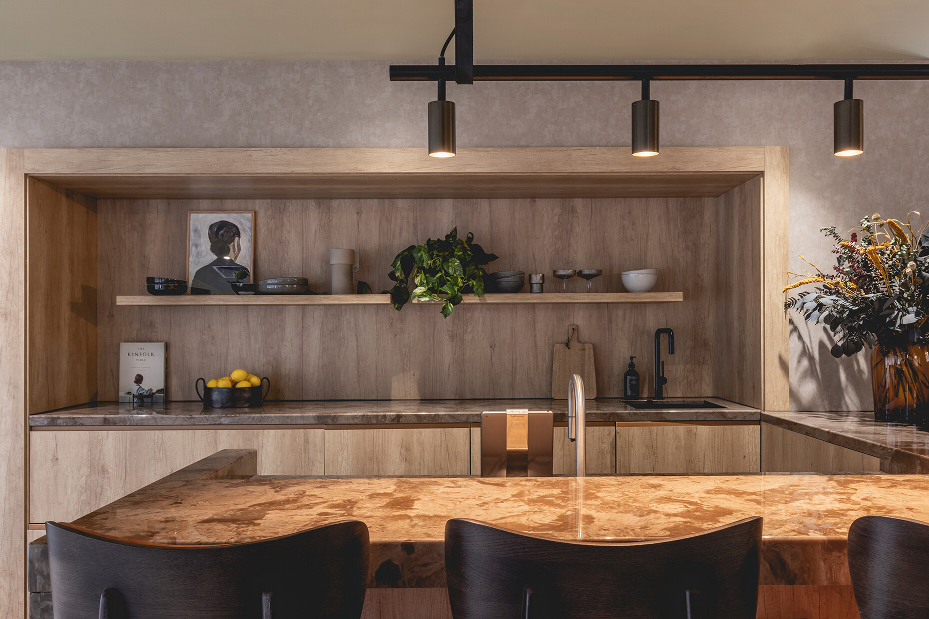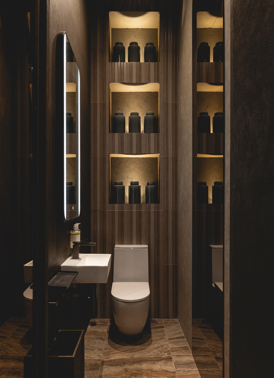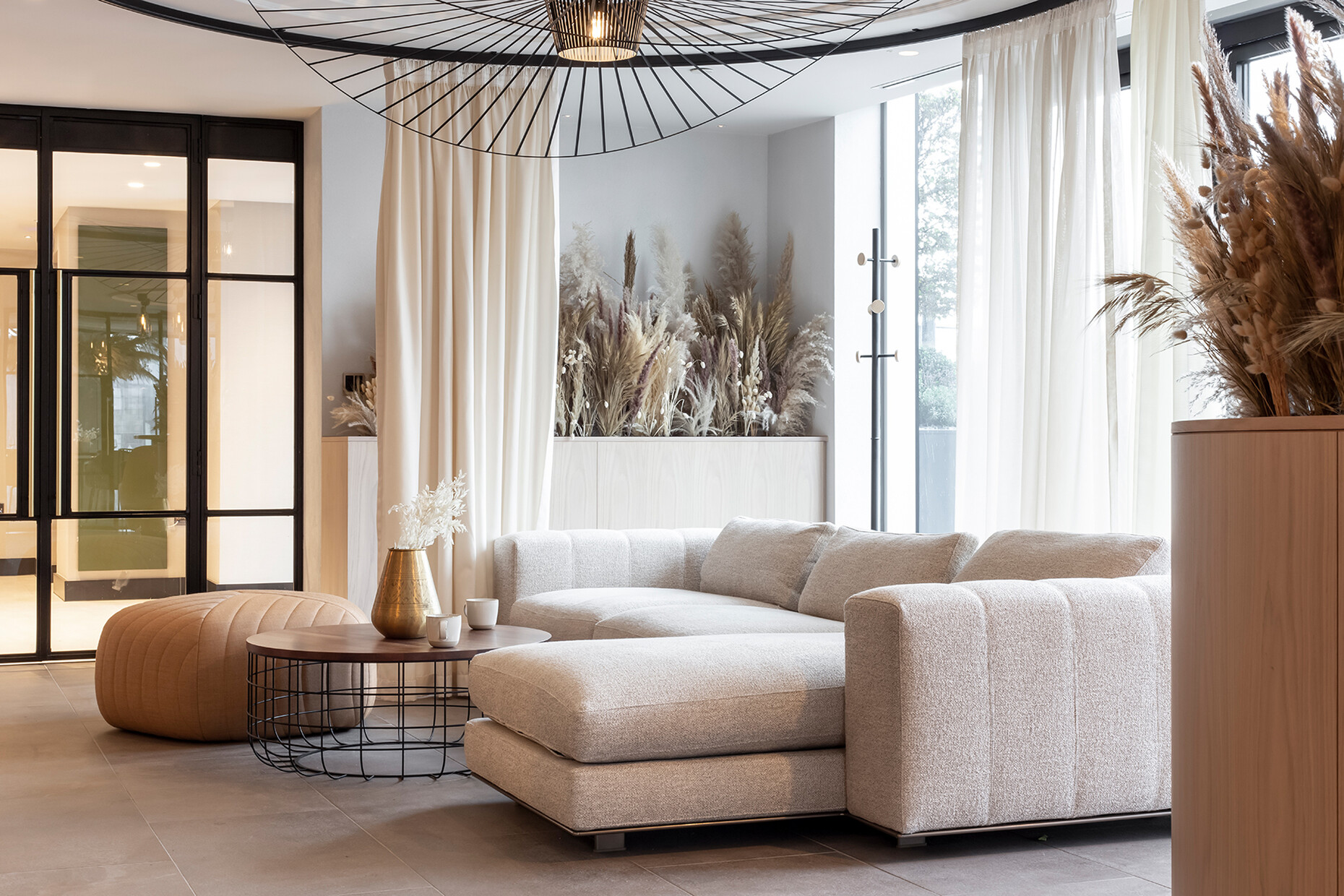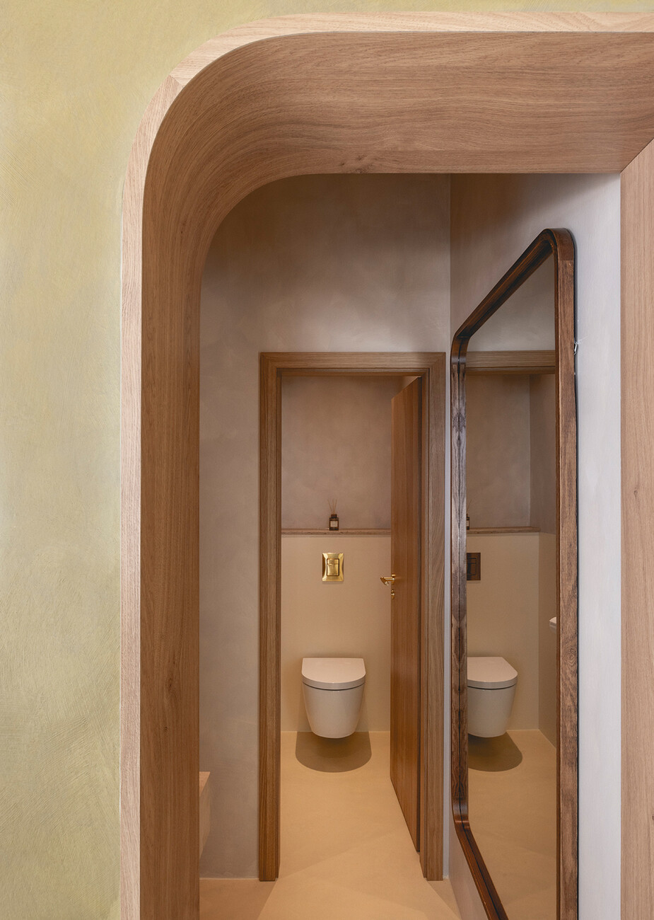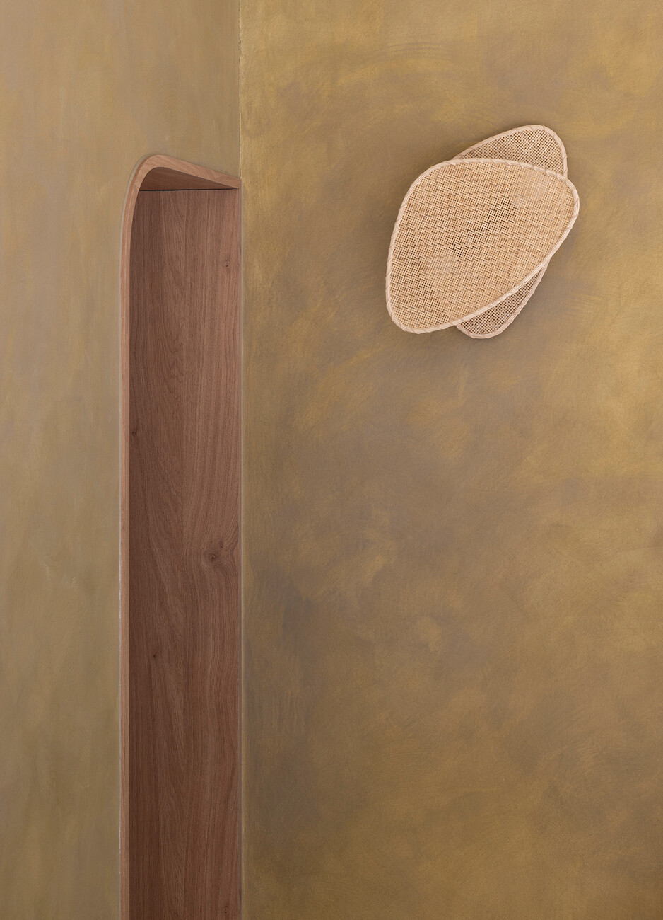 Franky Rousell: Unsere Materialwahl für "The Nest" wurde strategisch ausgewählt, um die Ziele des Projekts – Nachhaltigkeit, sensorische Erfahrung und Anpassungsfähigkeit – angesichts der besonderen Beschränkungen des Standorts und der Designambitionen zu erreichen. (Anmerk. der Redaktion: Der Bau oberhalb einer Tiefgarage stellte strukturelle Herausforderungen aufgrund von Gewichts- und Belastungsbeschränkungen.) Wir haben uns für Kalkfarbe und Tadelakt entschieden, weil sie natürlich sind, wenig VOC enthalten und eine ästhetische Oberfläche haben, die die Textur und Tiefe der Oberflächen hervorhebt. FSC-zertifiziertes Holz wurde verwendet, um Wärme und ein taktiles Element zu schaffen, das den Tastsinn anspricht, was bei einem auf die Sinne ausgerichteten Design unerlässlich ist. Steinelemente verliehen dem Raum einen Hauch von rauer Schönheit, während die Polsterung aus hochwertigem Martindale für Langlebigkeit und Komfort sorgt.