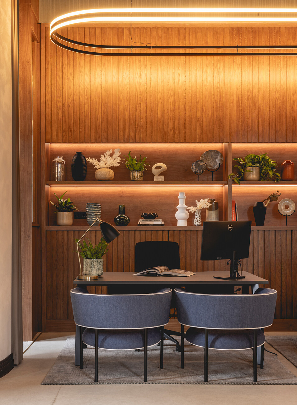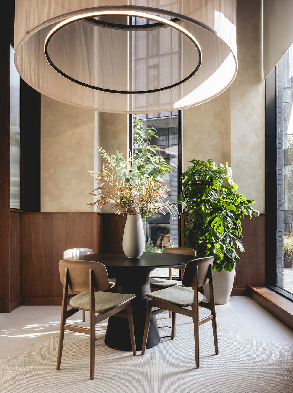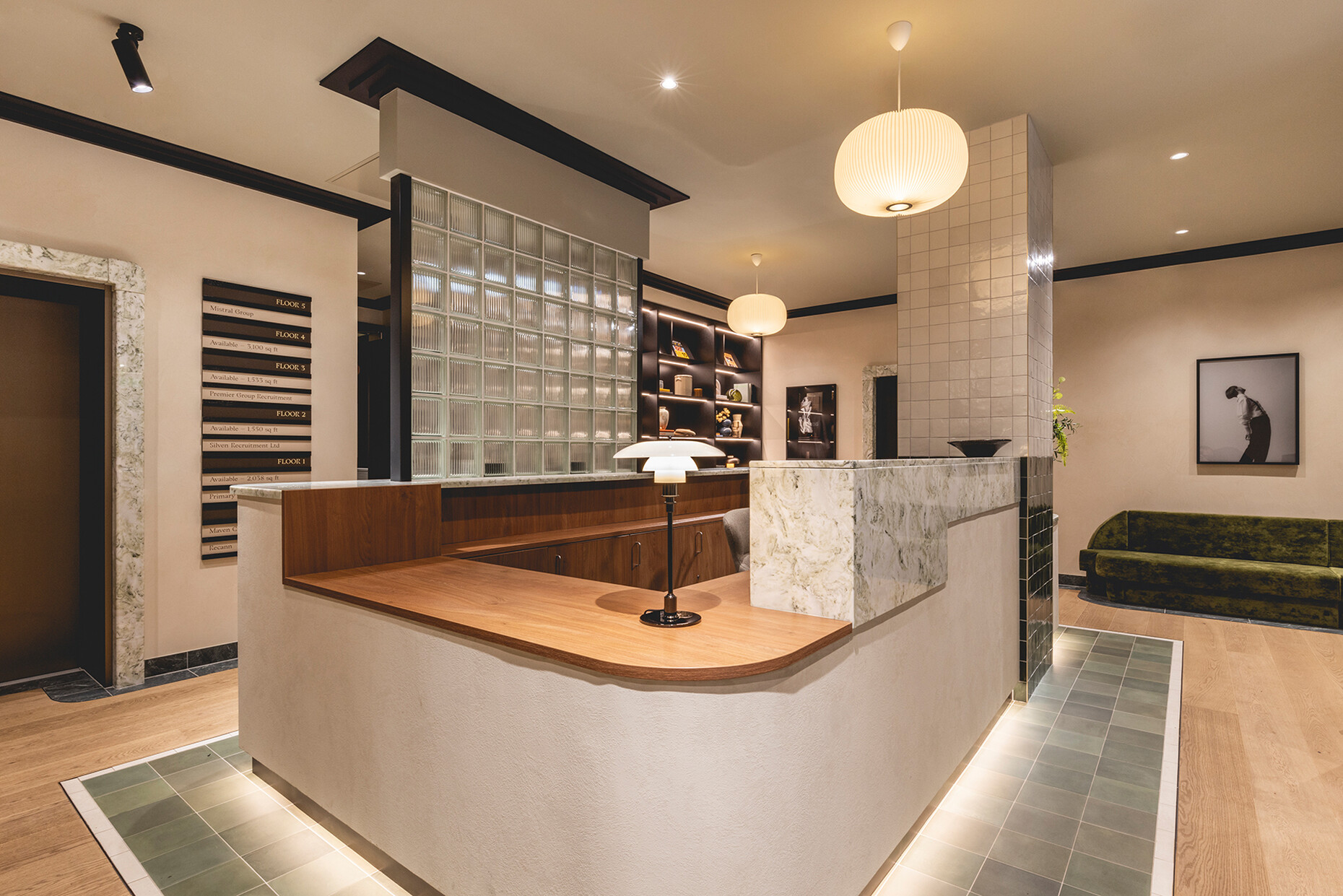 Franky Rousell: Wir sind definitiv der Meinung, dass eine Arbeitsatmosphäre heute wohnlicher und einladender sein sollte! Wir wissen, dass sterile White-Box-Büros nicht dazu geeignet sind um produktiv zu sein, und diese Erkenntnis wurde zunehmend erkannt und in moderne Arbeitsräume integriert. Nach der Pandemie konnten wir beobachten, dass Hotellobbys für die Arbeit an entfernten Standorten umfunktioniert wurden, was den Wunsch nach dem Komfort signalisiert, an den sich viele von uns während der Arbeit im Home Office gewöhnt haben. Dieser Trend hat bei einigen KundInnen zu einer "Hotelisierung" des Arbeitsplatzes geführt, die sich durch eine lockere Kleiderordnung, echte Pflanzen und weiche Möbel auszeichnet, die mit einer klaren, anspruchsvollen Ästhetik kombiniert werden. Durch die Einbeziehung von Elementen des Gastgewerbedesigns können wir einen Hauch von heimischem Luxus und ein Gefühl von Rückzug und Freiheit vermitteln. Dieses "Members Club"-Gefühl vermittelt auch den Eindruck von Bedeutung, Prestige und Exklusivität und entspricht den neuen Erwartungen der jungen Generationen. Die AuftraggeberInnen gehen inzwischen bis weit über die Basis-Anforderungen hinaus, um den Arbeitsplatz in ein Erlebnis zu verwandeln, beispielsweise mit Kaffeebars, Cafés, Clubräumen auf dem Dach, Terrassen, Duschen und Umkleidekabinen.