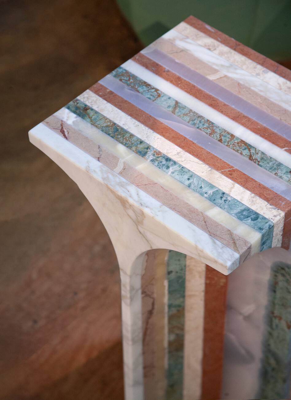 Wie bei einer der jüngsten Arbeiten, der Kollektion "Five x Seven", die exklusiv bei Rossana Orlandi in Mailand präsentiert wird und zusammen mit "SolidNature" entstanden ist, einem weltweit führenden Anbieter von feinstem Naturstein: Fünf verschiedene Tischchen und eine Konsole werden aus Marmor-Reststücken gefertigt, als Komposition aus sieben verschiedenen Sorten. Jedes Produkt zeigt einzigartige Farben, Texturen und Eigenschaften, die die jeweilige Marmorart aufweist. Dabei verfolgt das Designstudio keinen starren oder wiederkehrenden Prozess. Auch der ist sozusagen im Fluss, von Offenheit und Neugierde geprägt, und darf sich projektbezogen entwickeln. Manchmal beginnt die Designphase mit einem konkreten Material. Oft starten Projekte auch mit einer groben Idee, die schnell in digitale 3D-Modelle umgesetzt wird, wodurch sich weitere Richtungen ergeben. "Der Weg ist immer spannend: Oft überarbeite oder verwerfe ich Aspekte der ursprünglichen Designidee, bis ich schließlich beim finalen Entwurf ankomme. Es ist ein ständiges Ausprobieren und Anpassen von Form, Funktion und Material", so Johannes Budde.