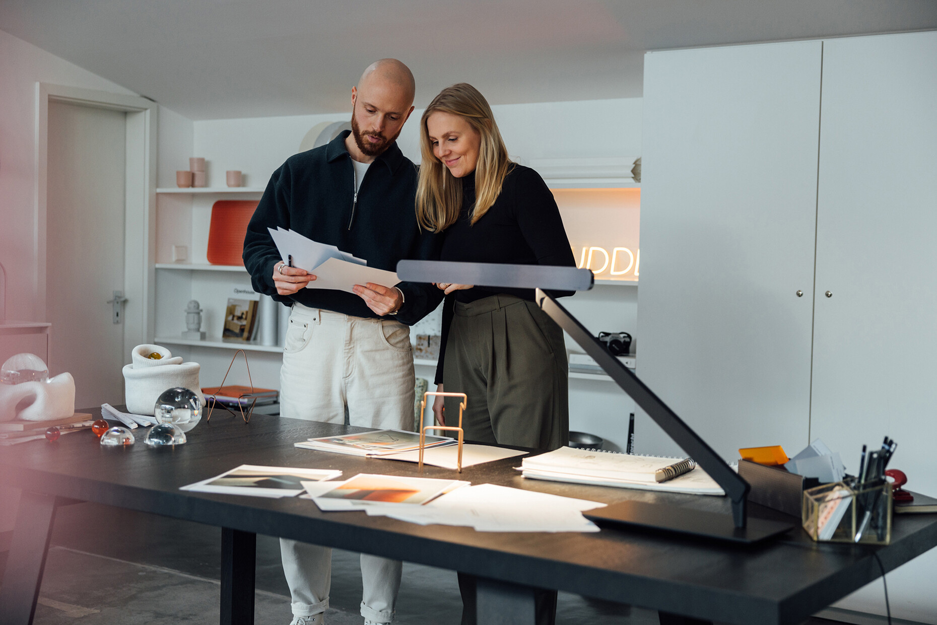 Meike Papenfuß hält einen Bachelor in Designmanagement und einen Master in Business. Nach dem Studium fing sie als Strategin bei der renommierten Agentur Interbrand in Köln an. Dort arbeitete sie in internationalen Projekten, die meist Design und Strategie vereinten. Genau diese Schnittstelle ist ihr Gebiet, um Marken und ihre Kundenrelevanz zu stärken. Bei Interbrand blieb sie knapp fünf Jahre – zuletzt als Senior Consultant in Teilzeit neben Budde, bis sie den Schritt in die vollständige Selbstständigkeit wagte. Ganz anders der Werdegang von Johannes Budde, den es nach seinem Architekturstudium in Stuttgart und Wien zunächst nach Düsseldorf zog, wo er im Architekturbüro Falkenberg tätig war. Irgendwann brauchte er eine Auszeit, um sich Raum zum Experimentieren und Reflektieren zu schaffen. "Das war die wichtigste Entscheidung für meinen Weg. Ich habe wieder angefangen, Kunst zu machen und dann beiläufig die ersten Möbelstücke entworfen."