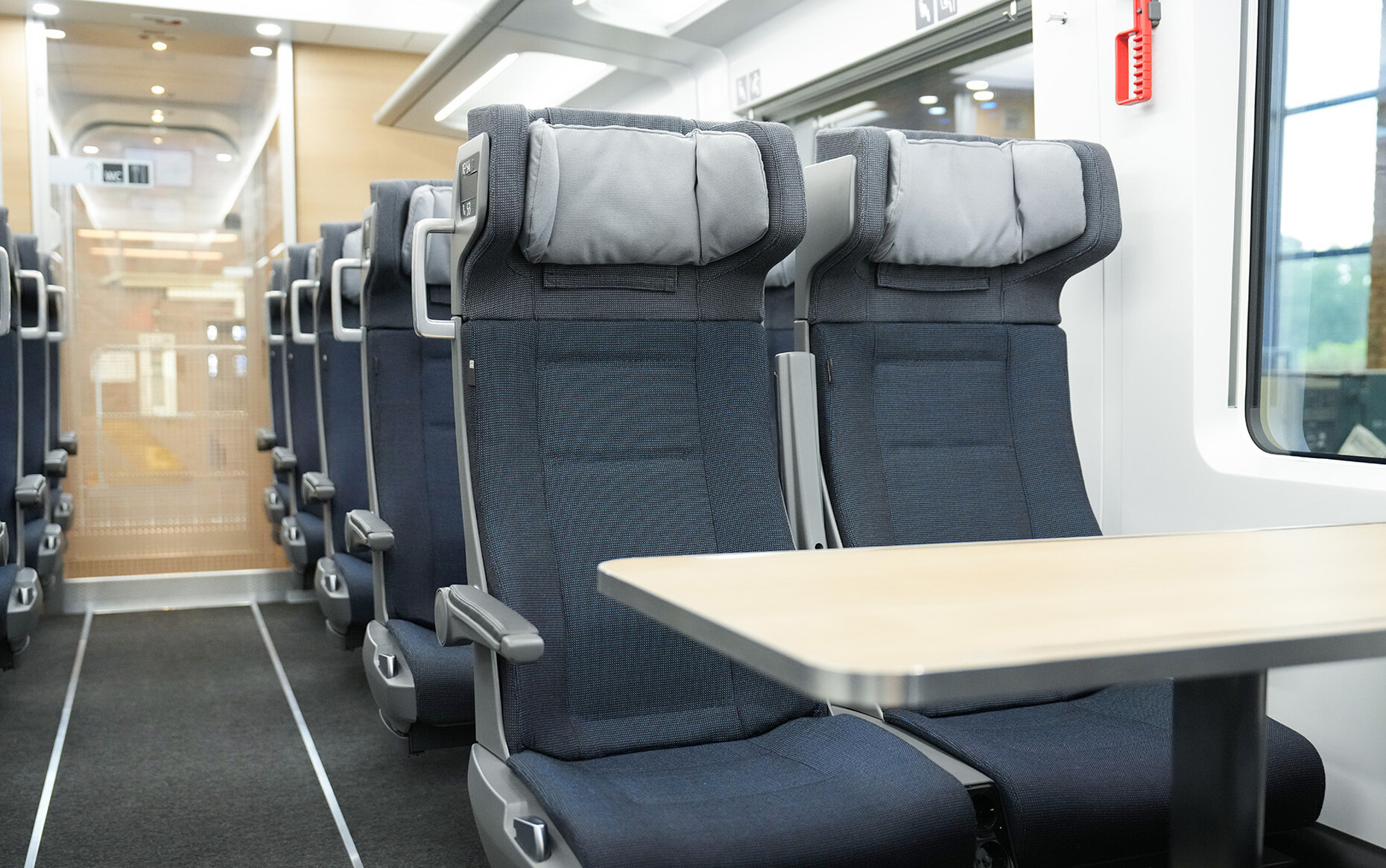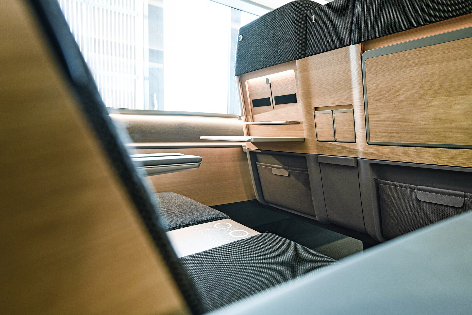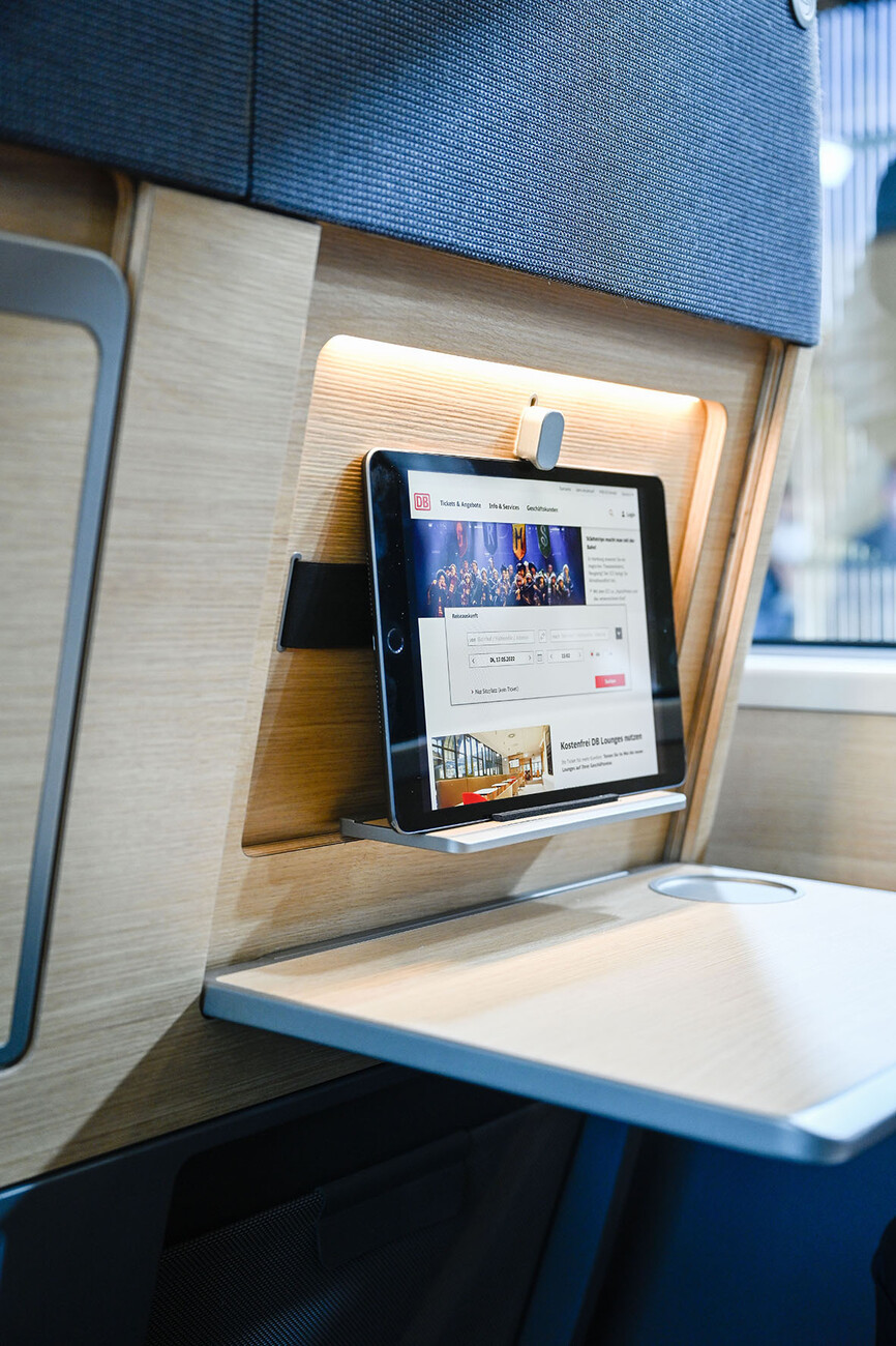 Bei den HPL-Materialien in Holzoptik, die im Innenausbau eine große Rolle spielen, wechselte die DB zuletzt mit dem ICE 4 von rötlicher Buche zu heller Buche. Künftig gibt helle Eiche den Ton an, zum Teil versehen mit einer holzähnlichen Struktur. Den Gästen im Zug (vom Begriff "Fahrgast" hat sich die DB weitgehend verabschiedet) räumt die Bahn künftig mehr Privatsphäre ein. Der Raum um den eigenen Sitz herum wird funktional aufgewertet und ergänzt. Bei Reihenbestuhlung wandelt sich der Rücken des Sitzes vor dem eigenen Platz zum Teil dieser persönlichen Sphäre. Mit dem ICE 3neo kommen Tablet-Halter neu ins Spiel. In späteren Zugmodellen soll sich die Rückseite eines Sitzes zum Klappsekretär für die Reisenden wandeln. In der 1. Klasse gibt es für die Tablet-Halterung zusätzliche Klappelemente in Holzoptik sowie eine Hintergrundbeleuchtung. Ein versenkbarer Kleiderhaken und Flächen für induktives Laden von Smartphones sind ebenfalls vorgesehen. Fragt man Bruno Scheffler danach, wie nah das im Mai als 1:1-Mockup präsentierte neue Design der Bahnzukunft tatsächlich kommt, wie ernst man die gezeigten Details nehmen kann, dann spricht er von einem "sehr konkreten Leitbild". Einige der Neuerungen, wie die Filzverkleidungen an Decken und Wänden, bedürften noch der Entwicklung und Ausarbeitung. Jede Innovation macht Eingriffe ins längst beschlossene Beschaffungsprogramm nötig. Da jede Veränderung Mehrkosten bedeutet und das Risiko weiterer Verzögerungen birgt, kann nicht alles, was der aktuellen Designstrategie entspricht, sofort umgesetzt werden. Erst recht in einer Zeit, da Lieferketten durch viele Einflüsse gestört sind, von chinesischen Corona-Lockdowns bis zum russischen Überfall auf die Ukraine.