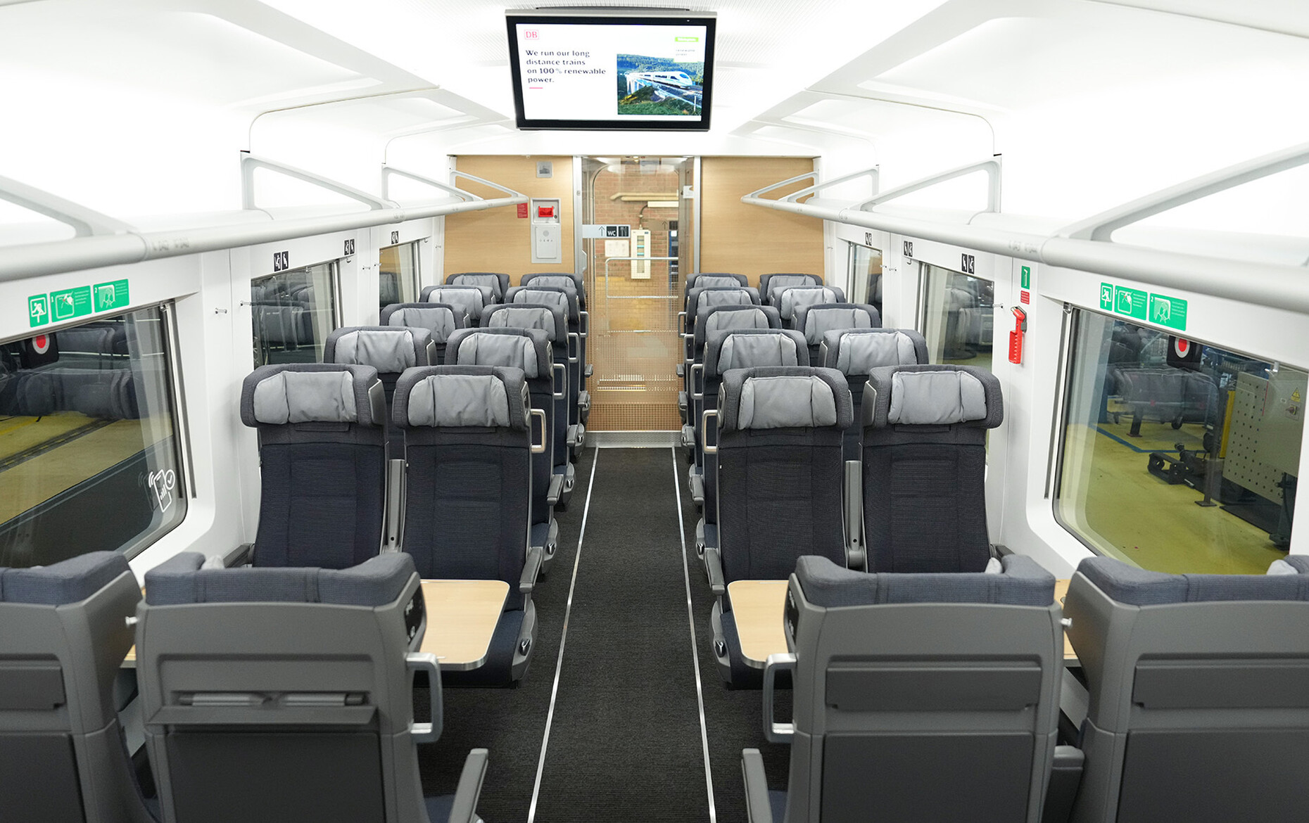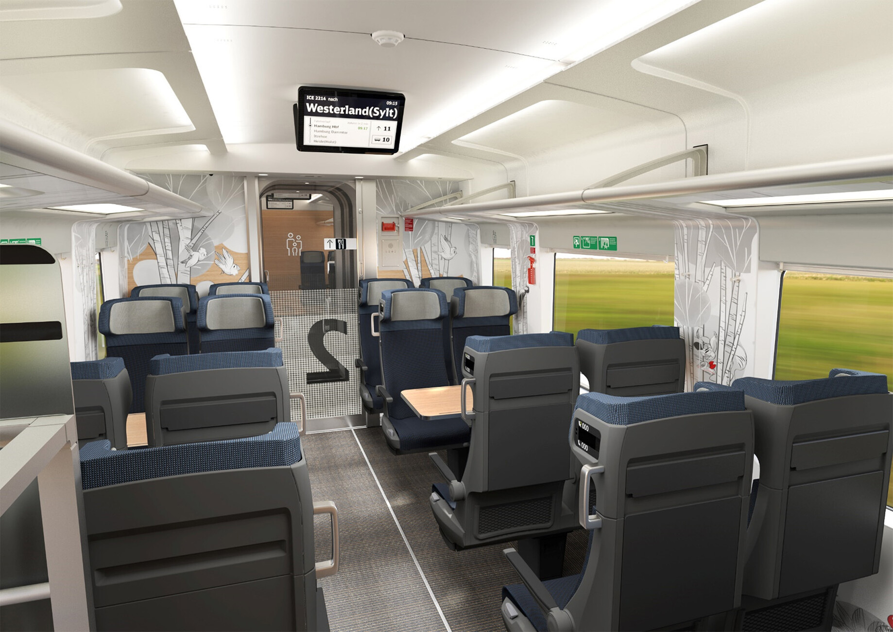 Sich "bei 300 Stundenkilometern wie im eigenen Wohnzimmer zu fühlen", darauf zielt das neue Design der Bahn ab. Deutlich wird dies bei der Abkehr von der bisherigen Materialität. Bislang gab es in der 2. Klasse Sitze, die mit blauem Velours bezogen sind und in der ersten Klasse blaugraue Ledersitze. Nun gibt es in beiden Klassen Textilbezüge aus einem eigens mit dem Schweizer Hersteller Lantal entwickelten Flachgewebe mit 85 Prozent Wollanteil. Lantal ist Spezialist für technische Textilien in der Transportindustrie und gewohnt, gegensätzliche Anforderungen wie Langlebigkeit, geringen Abrieb, Lichtechtheit und ästhetische Wirkung miteinander zu vereinen. Künftig sind es neben den großzügigeren Platzverhältnissen die Farbwelten sowie verfeinerte Details, die den Klassenunterschied markieren. Die Farbtöne "Azur" und "Kronenblau" verschwinden. Blaue Farbtöne gibt es künftig nur noch als Akzent, um eine Brücke zu schlagen – zum Erbe der DB-Marke ICE und den damit überwiegend ausgestatteten Zügen, einschließlich neuester, erst kürzlich ausgelieferter Modelle.