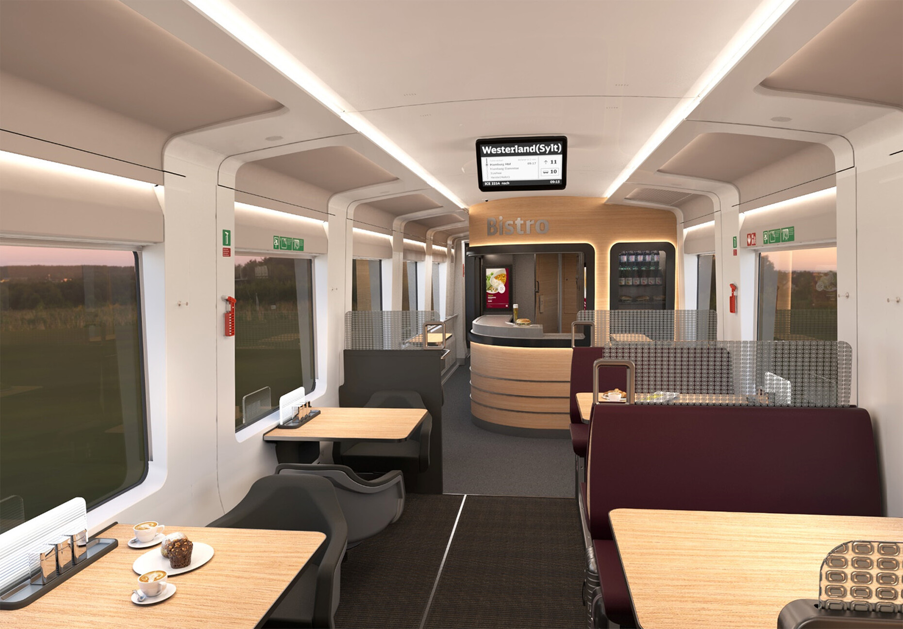 Der Einsatz von Leder wird deutlich reduziert. So gibt es bislang für Oberflächen der Armlehnen oder Sitze im Bordrestaurant kein Material, das sich als Ersatz anbieten würde. Im Restaurant werden die Sitze künftig nicht mehr in leuchtenden "Verkehrsrot" bezogen sein, sondern im ruhigeren "Burgundy", einem dunklen Farbton, den die DB bereits als Servicefarbe bei ihrer Unternehmensbekleidung etabliert hat, die wiederum von Guido Maria Kretschmer entworfen wurde. Ausschlaggebend für den Modemacher war, dass sich die Farbe besser mit anderen kombinieren und flächig einsetzen lässt, als die bisherige rote Warnfarbe. Seit November können die MitarbeiterInnen der Deutschen Bahn zudem unabhängig von ihrem biologischen Geschlecht aus den Kollektionen ihre Dienstkleidung wählen. "ZugbegleiterInnen, KundenbetreuerInnen, LokführerInnen oder Servicekräfte können damit sowohl Artikel aus der Männer- als auch aus der Frauenkollektion bestellen und im Dienst tragen", so Dr. Richard Lutz, Vorstandsvorsitzender der Deutschen Bahn AG.