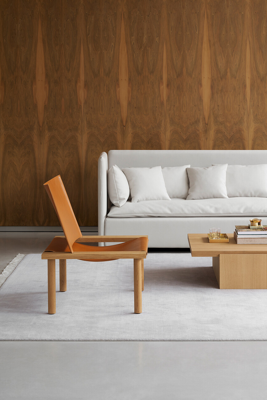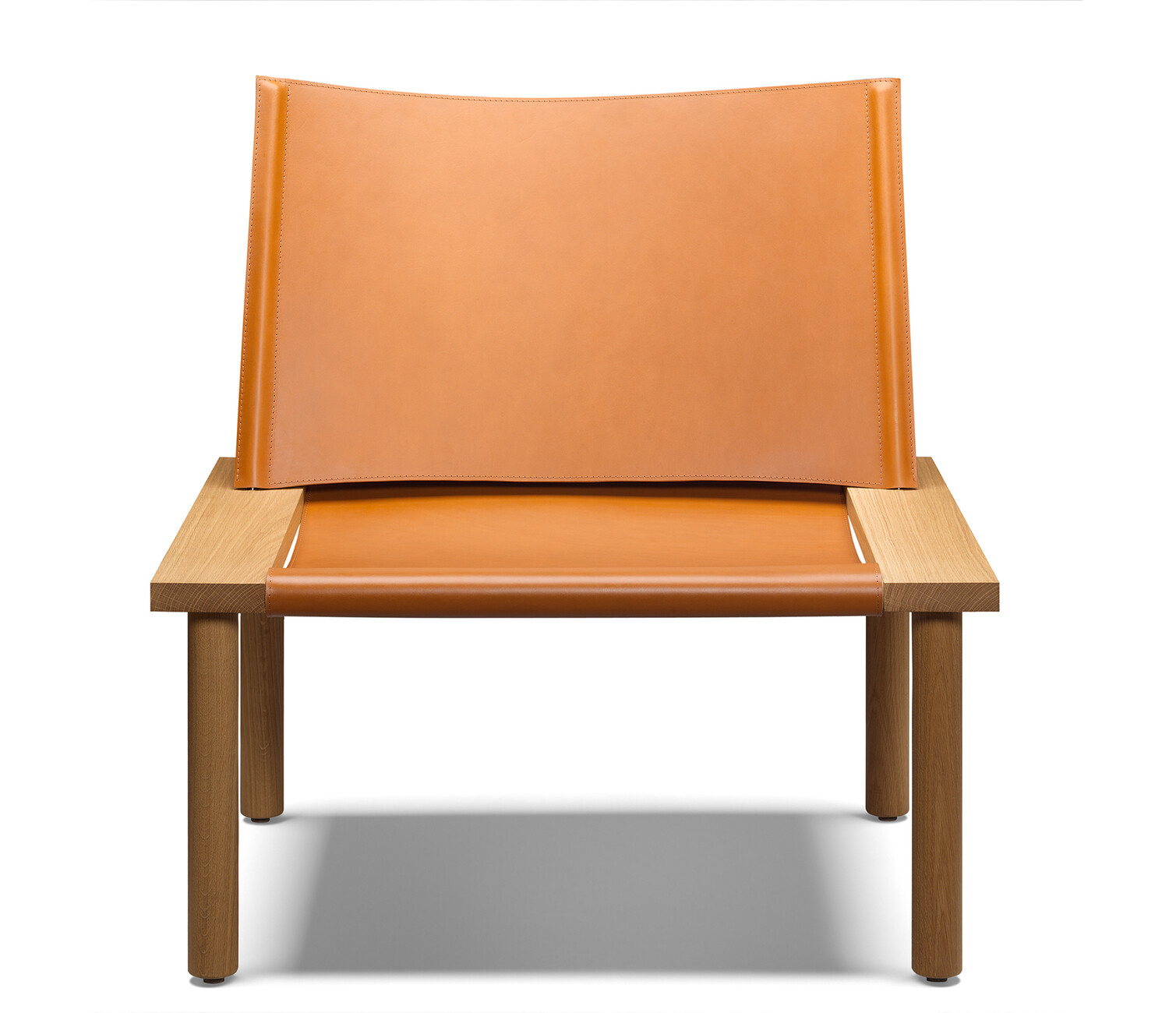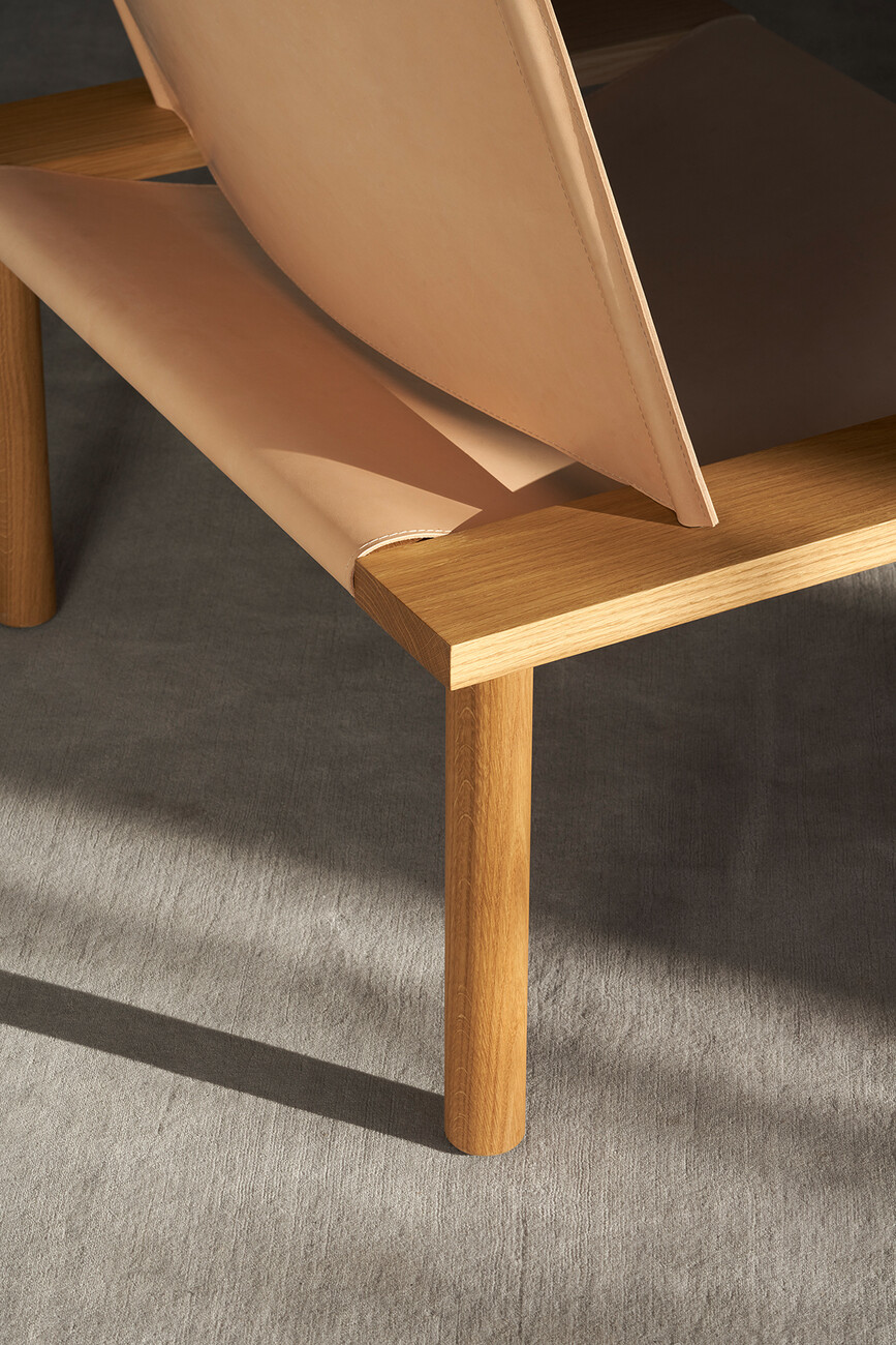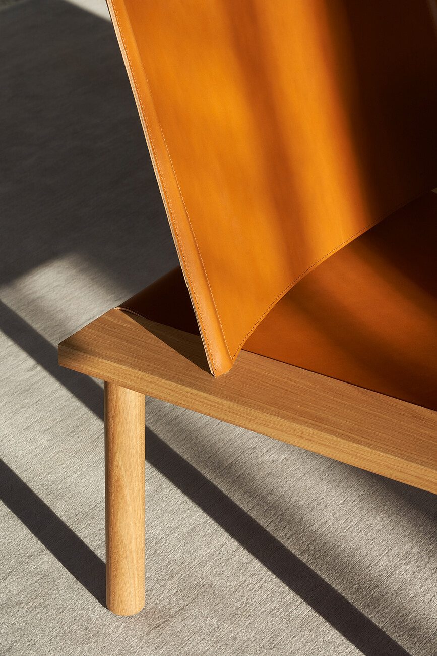 "Ilma" von Jonas Lutz für e15 besteht in der Basis aus einem quadratischen Massivholzrahmen, gefertigt aus europäischer Eiche oder dem in Europa heimischen Nussbaum sowie einer breiten Bahn aus samtweichen Gurtleder, auf der Platz genommen werden darf. In Natur, Brandy und Schwarz bietet diese einen robusten wie komfortablen Sitzplatz. Den Rücken schmiegen darf man indes an die großzügige, leicht gebogene Lehne, die auf dem Rahmen mit zwei Streben befestigt ist, den Körper ideal stützt und ebenso mit Leder bezogen ist. Wird der Stuhl nicht verwendet, bildet das Gurtleder formal eine nahezu gerade Linie. Für den festen Stand von "Ilma" sorgen vier gerundete Stuhlbeine, die aus dem gleichen Holz wie der Rahmen gefertigt sind und so einen harmonischen Abschluss bilden. Jedes Element von "Ilma" hat eine eigene Präsenz, wirkt unabhängig und ergibt im Zusammenspiel eine ungewöhnlich klare Form, für die Jonas Lutz den klassischen Sessel weitergedacht hat. (am)