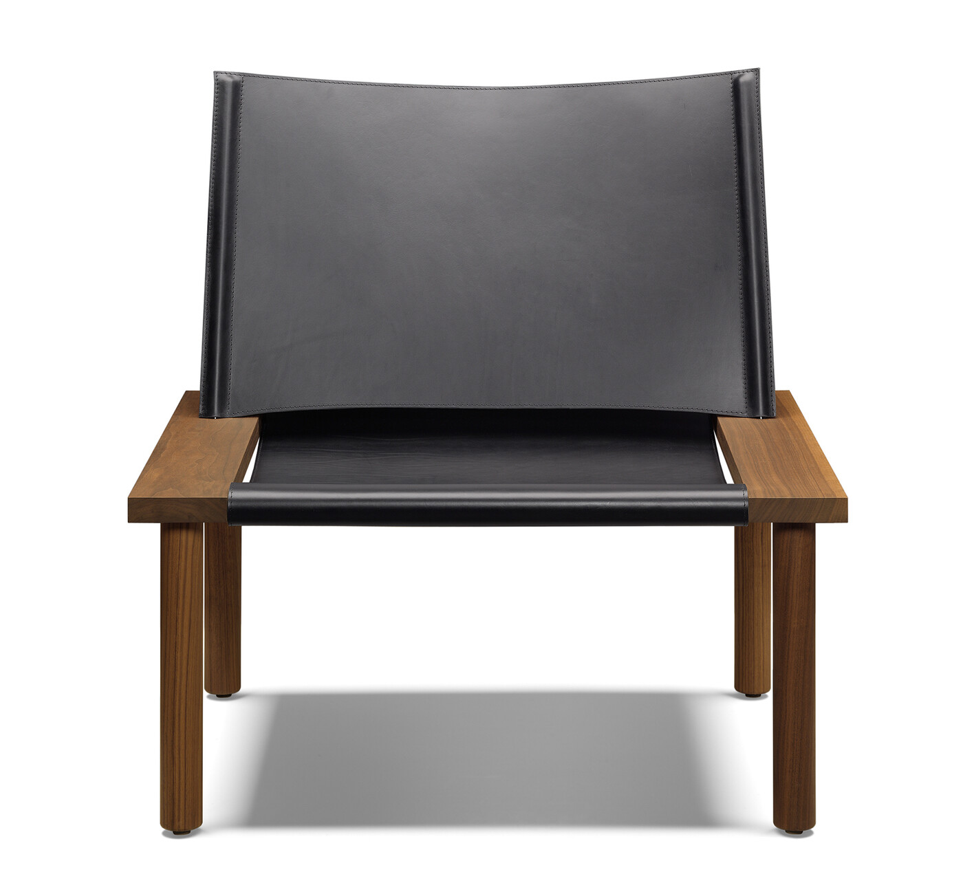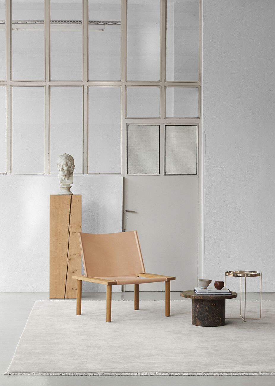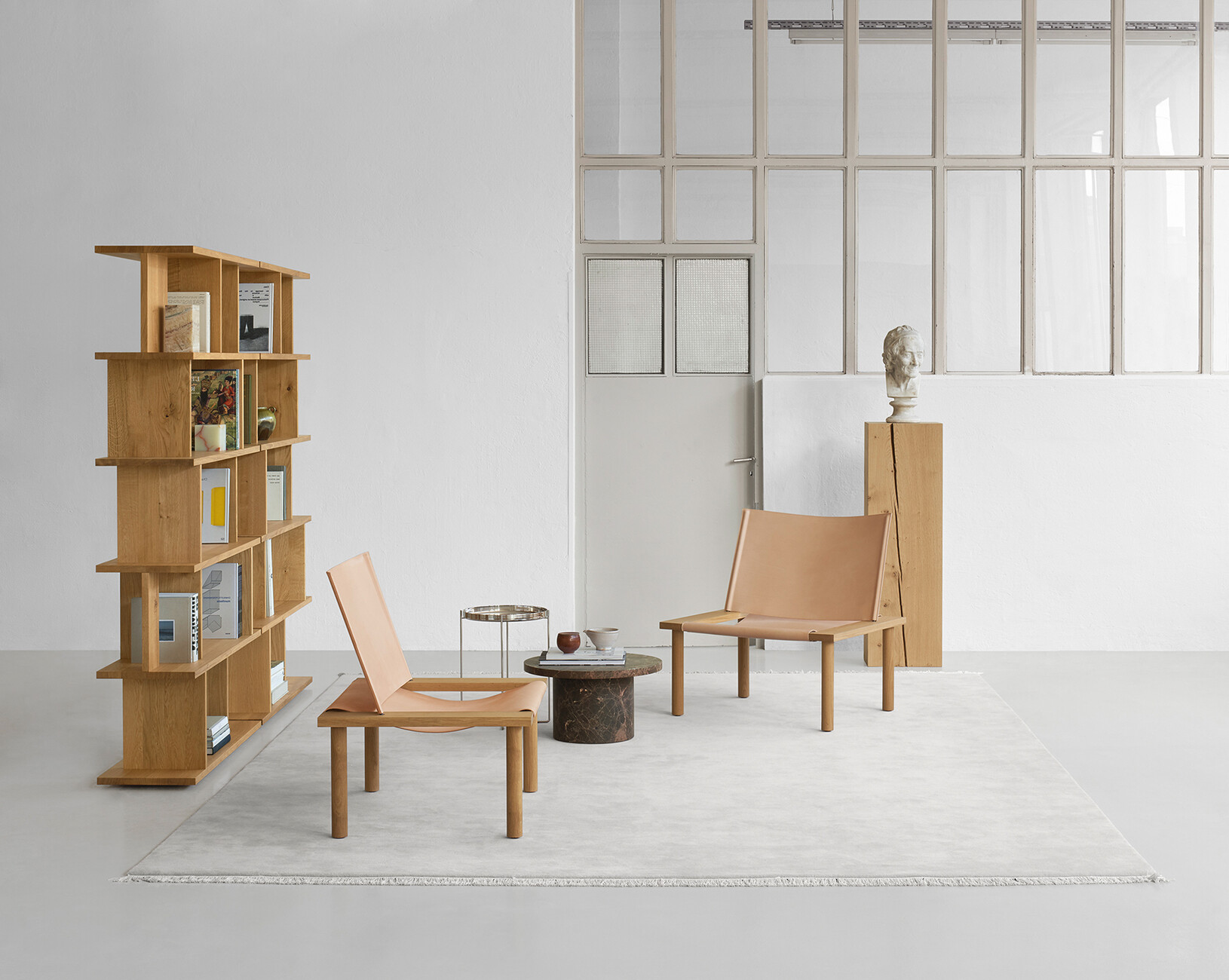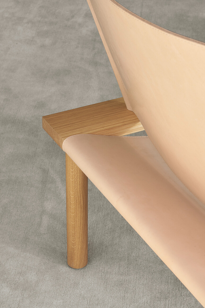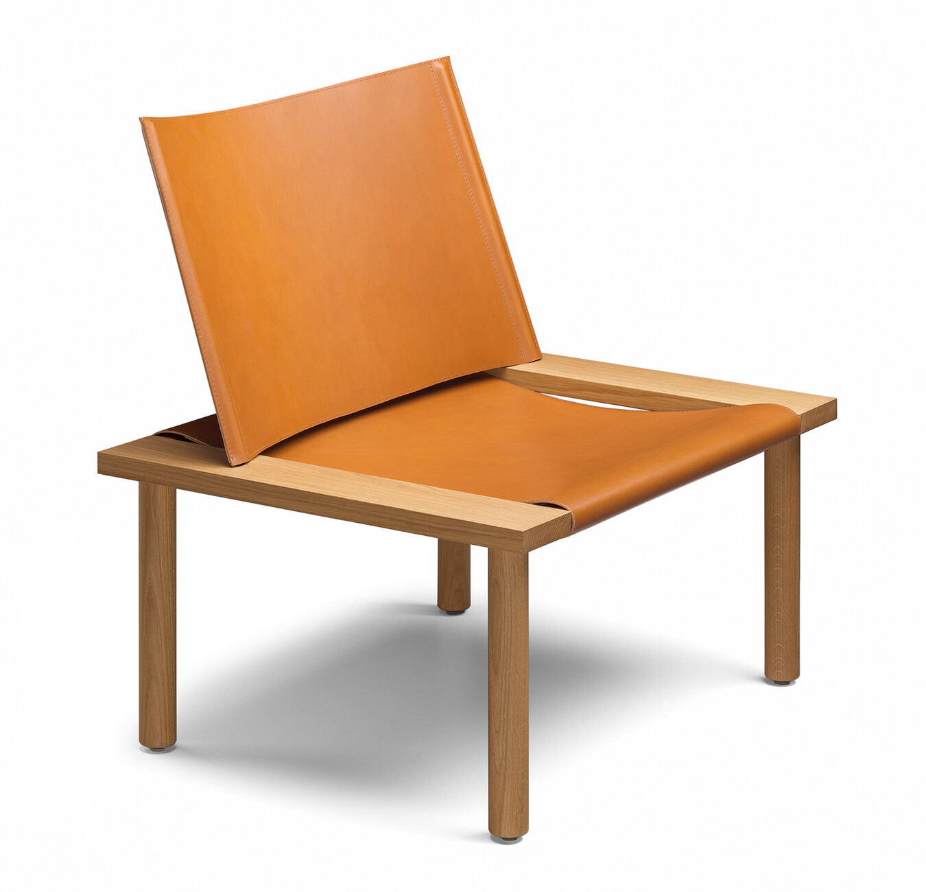 "Ilma" von Jonas Lutz für e15 besteht in der Basis aus einem quadratischen Massivholzrahmen, gefertigt aus europäischer Eiche oder dem in Europa heimischen Nussbaum sowie einer breiten Bahn aus samtweichen Gurtleder, auf der Platz genommen werden darf. In Natur, Brandy und Schwarz bietet diese einen robusten wie komfortablen Sitzplatz. Den Rücken schmiegen darf man indes an die großzügige, leicht gebogene Lehne, die auf dem Rahmen mit zwei Streben befestigt ist, den Körper ideal stützt und ebenso mit Leder bezogen ist. Wird der Stuhl nicht verwendet, bildet das Gurtleder formal eine nahezu gerade Linie. Für den festen Stand von "Ilma" sorgen vier gerundete Stuhlbeine, die aus dem gleichen Holz wie der Rahmen gefertigt sind und so einen harmonischen Abschluss bilden. Jedes Element von "Ilma" hat eine eigene Präsenz, wirkt unabhängig und ergibt im Zusammenspiel eine ungewöhnlich klare Form, für die Jonas Lutz den klassischen Sessel weitergedacht hat. (am)