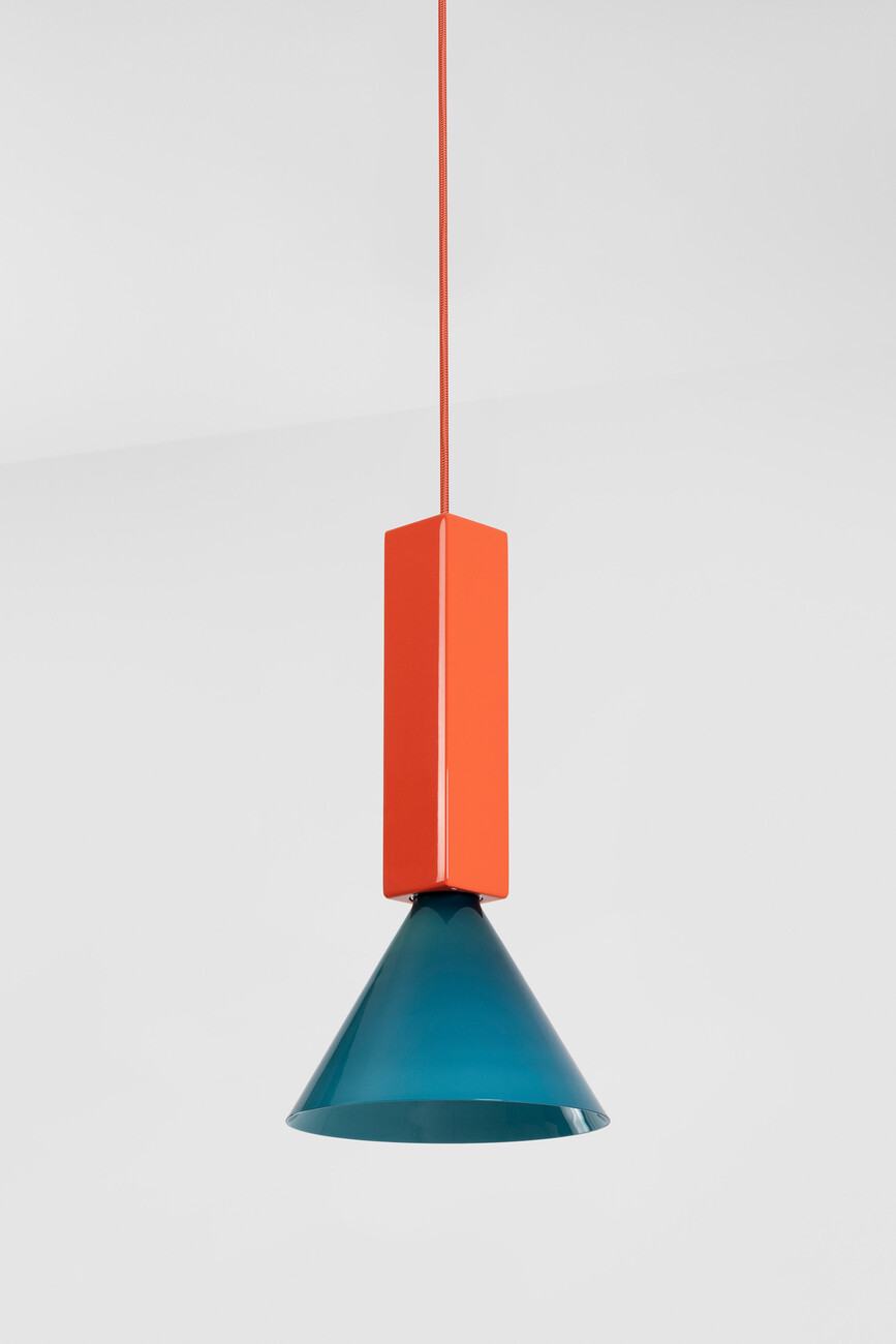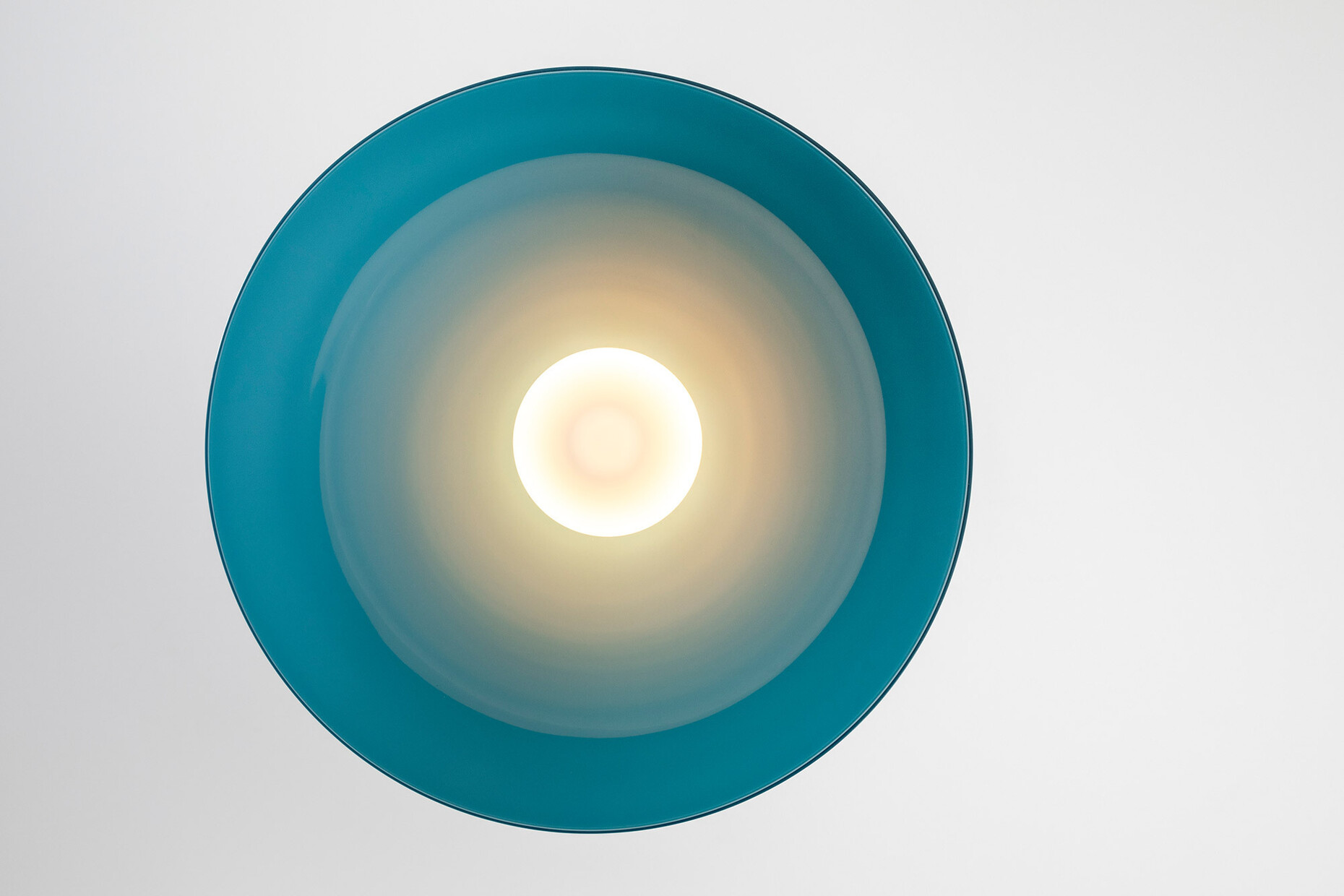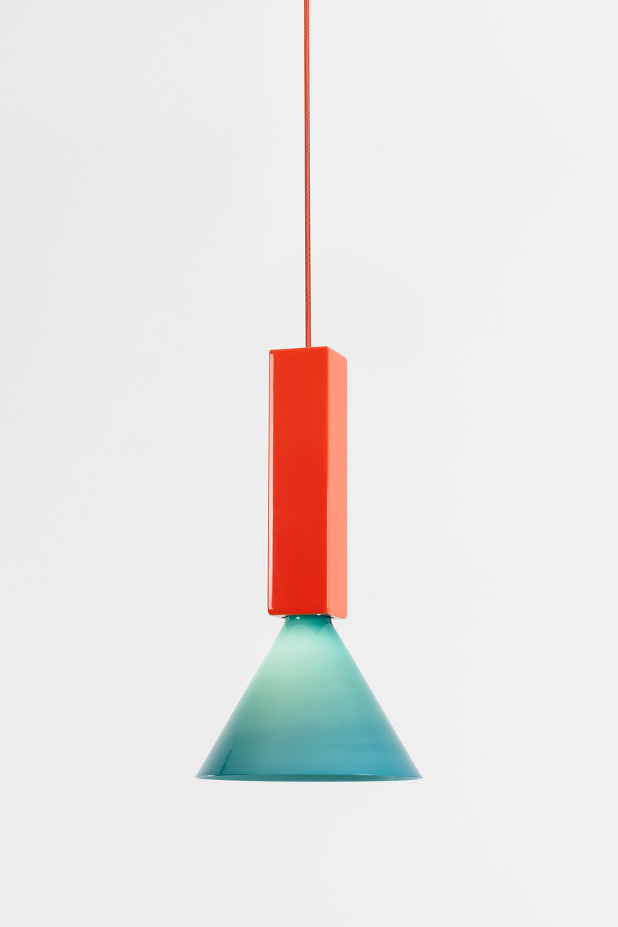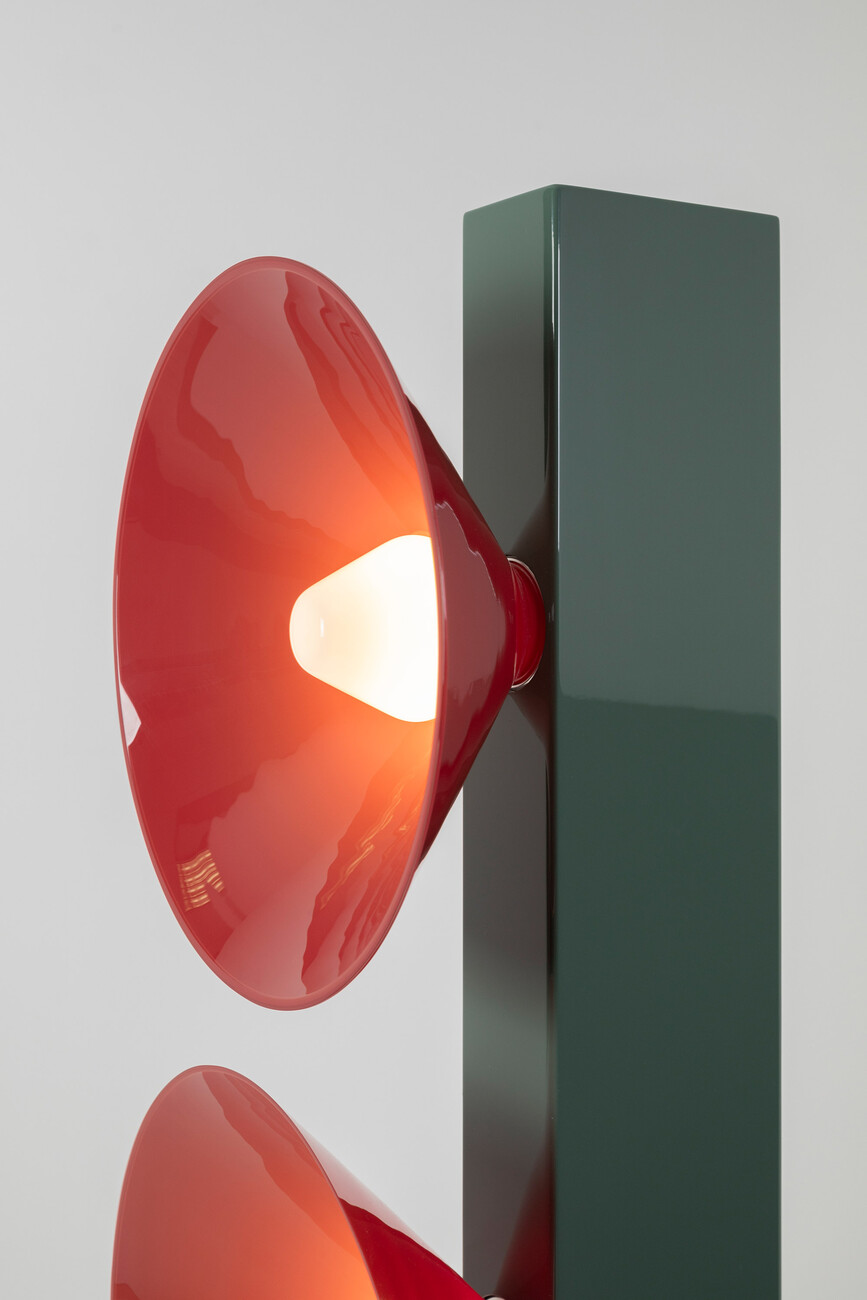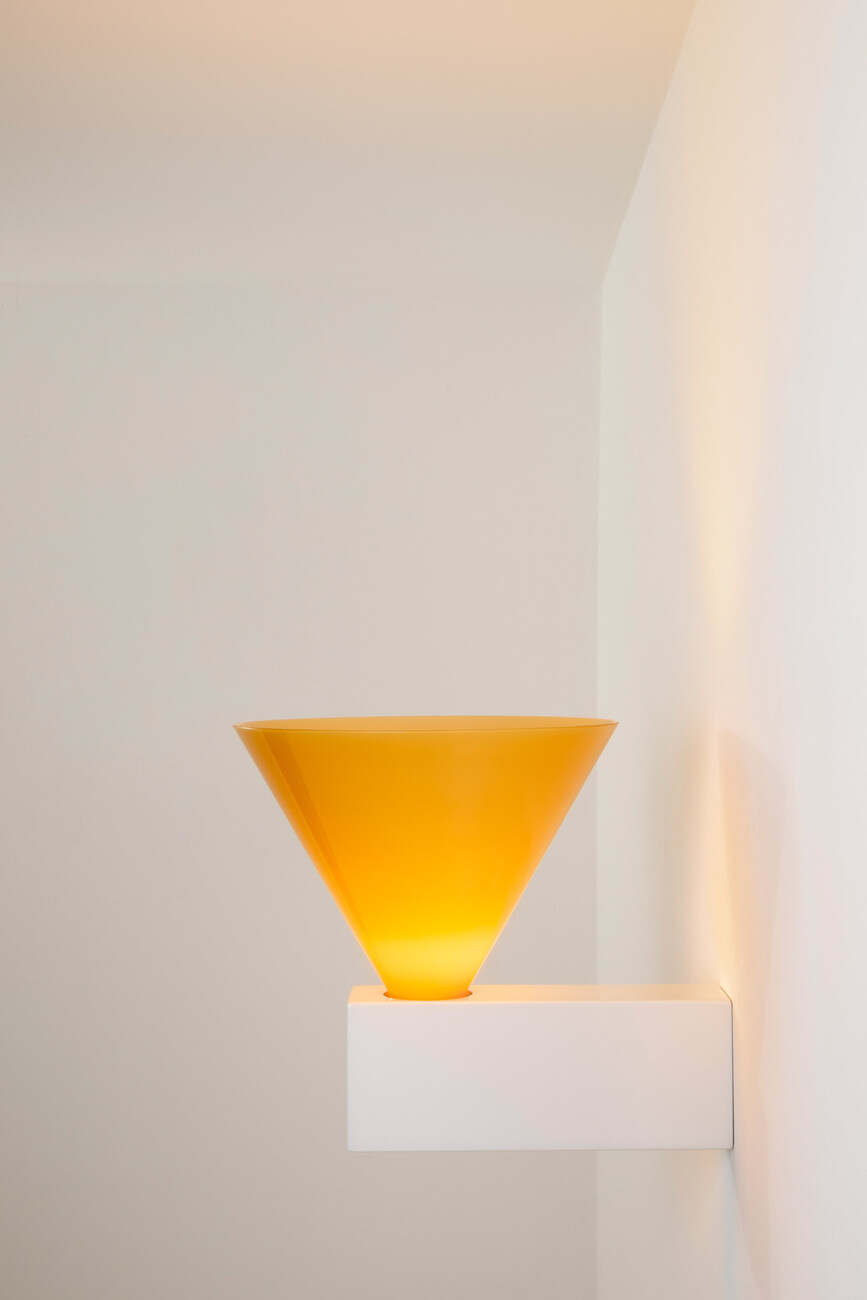 Gefertigt werden die kunstvollen Kegel in den traditionsreichen Werkstätten von Venini auf der Insel Murano. "Es gibt eine Spannung zwischen den industriellen und den handwerklichen Elementen der Leuchten, die wir 'engineered craft' nennen. Wir versuchen immer, in einem Raum zwischen Skizze und Herstellung zu arbeiten", so Osgerby. Im farblichen wie auch materiellen Kontrast zu den zarten Glasschirmen stehen die monolithischen Kästen aus Aluminium, die die Basis für die Leuchten bilden. Jedes Modell verbindet dabei zwei Hauptmaterialien, zwei geometrische Formen und zwei Herstellungsarten. Besonders eindrucksvoll ist die Signalwirkung des Designs bei den totemgleichen Stehleuchten der Kollektion: Mit Leuchtenschirmen, die jeweils schräg versetzt oder übereinander angeordnet sind, muten diese wie Ampelmasten oder Lautsprecherständer an.