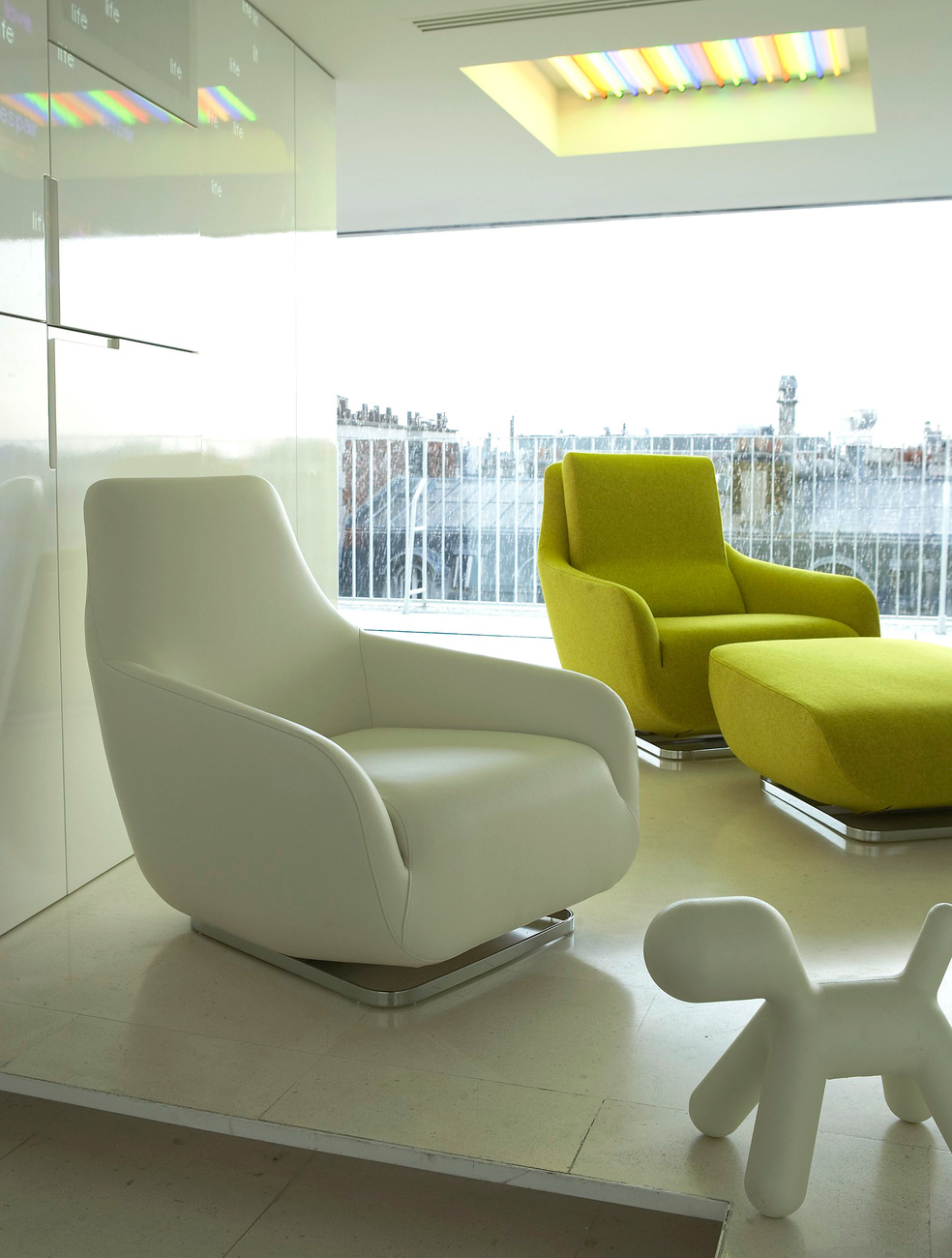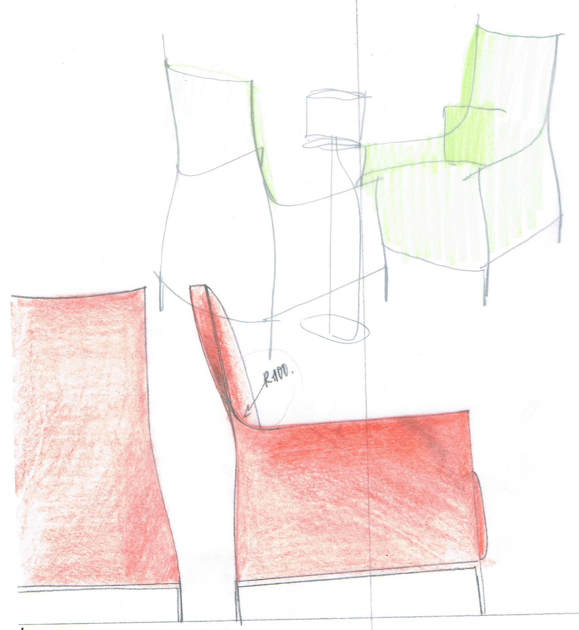 Eric Jourdan: Sessel, in denen man auch den Kopf anlehnen kann, sind in der Tat derzeit sehr gefragt. Und es ist gar nicht so einfach, einen solchen zu gestalten, der elegant und gleichzeitig komfortabel ist. Zu Beginn meiner Karriere habe ich mich für Komfort gar nicht interessiert. „Riga“ zeichnete ich so, dass man in dem Sessel so gemütlich sitzen kann, wie in den Sesseln für ältere Menschen. In Frankreich heißen diese Ohrensessel mit hohem Rücken „Voltaire“.