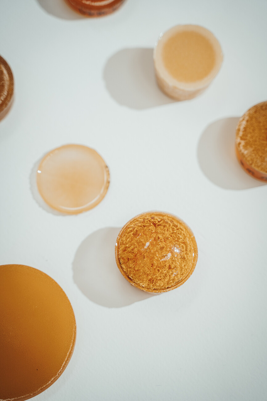 Eine eurer Arbeiten ist die Leuchtenkollektion Rícino aus pflanzlichem Rizinusölharz. Wie entwickelt ihr diese Materialalternative aktuell weiter?