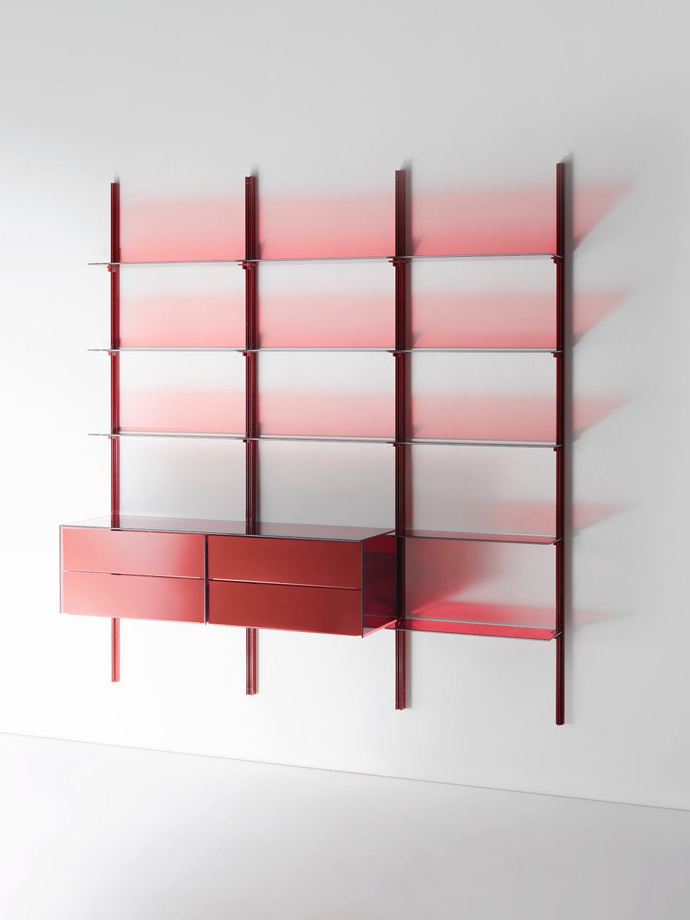 Das Baukastensystem ist der erste Teil einer von Burgbad geplanten Capsule Collection. Flexibilität steht im Fokus bei "RGB". Jede Scheibe lässt sich kinderleicht mit einer Drehbewegung in den Aluminiumschienen befestigen und wieder lösen. Der modulare Aufbau des Systems bietet viel Spielraum die farbigen Glasflächen ganz individuell miteinander zu kombinieren. Sind alle Bauteile an ihrem gewünschten Platz, fehlt nur noch Licht, um "RGB" zum Leben zu erwecken: Dann strahlt der Schattenwurf der farbigen Flächen weit über das Objekt hinaus und wandert mit der Position der Lichtquelle über die Wand.