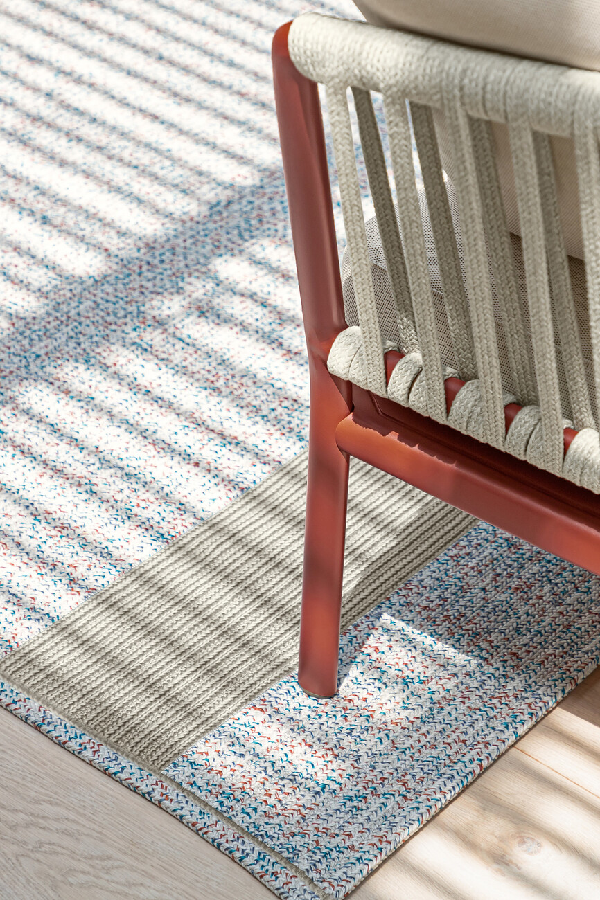 Architektur im mediterranen Raum zeichnet sich oft durch weiche Übergänge aus. Anstatt einer hermetisch abgetrennten Gebäudehülle gibt es fein gestaltete Bereiche wie Patios, Laubengänge, Veranden oder Terrassen, die zwischen den Temperaturdifferenzen der Innen- und Außenräume vermitteln. Einen ähnlichen Ansatz verfolgt die italienische Firma FAST, die seit über 20 Jahren auf Outdoormöbel aus Aluminium spezialisiert ist. Mit der Sitzmöbelserie "Ria", der Tischkollektion "Mosaiko" – beide aus der Feder von Alberto Lievore – und der Outdoorteppichkollektion "Onda" hat sie seit Herbst 2020 drei leichte, wetterbeständige Produktlinien im Programm, deren Ziel es ist, Natur und gebaute Umwelt in Einklang zu bringen.