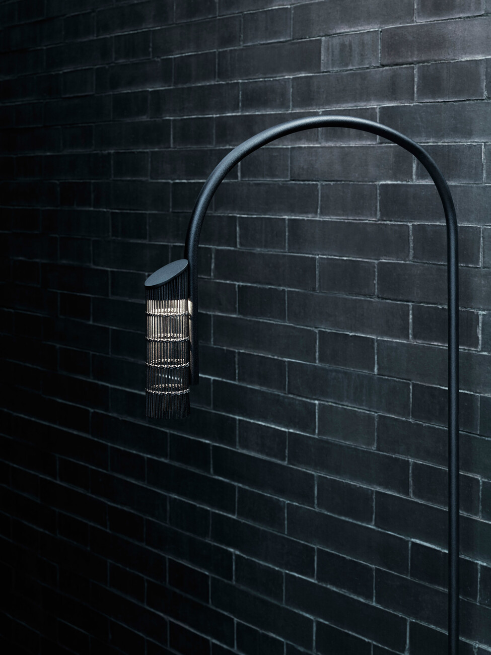 Die Formen ihrer neuen Outdoorleuchtenserie "Caule" für FLOS hat Patricia Urquiola der Natur entlehnt. Den bogenförmigen Träger und den zylindrischen Leuchtenkopf gestaltete sie als Abstraktion einer Blume. "Caule" ist als Wand- und Standleuchte sowie mit diversen Oberflächen erhältlich. In der Variante "Nest" besitzt der Leuchtenkopf eine zarte Gitterstruktur, die bei eingeschaltetem Licht ein faszinierendes Schattenspiel auf dem Boden erzeugt. (fap)