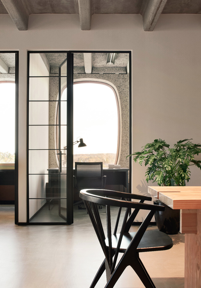 "Wir wollen den Bedürfnissen der aktuellen Generation gerecht werden," erklärt Maarten Van Gool. Und fügt an: "Mitarbeiter und Freiberufler von heute wünschen sich keine graue Büroumgebung. Bei uns finden sie einen professionellen Arbeitsplatz und dazu sinnvolle Dienstleistungen, spannende Vorträge, professionelle Beratung, Aktivitäten. Zum Angebot gehören eine Bibliothek, gesundes Essen, Sportstunden und vieles mehr." Co-Workingspaces sprießen allerorts wie Pilze aus dem Boden, das Arbeiten wird mobiler und flexibler und die Ansprüche an den Arbeitsplatz steigen. Wesentlich dabei sind ästhetische, stilvoll gestaltete Räume. Die jüngst in Brüssel eröffnete Präsenz "Boitsfort" ist in einem ikonischen, von Constantin Brodzki entworfenen Gebäude eingerichtet. Der ehemalige Hauptsitz des Zementunternehmens CBR ist ein markanter, brutalistischer Bau. 756 konvexe Fenster in ovalen Betonmodulen und die parallelen Linien der Fassade verleihen dem neunstöckigen Gebäude eine monolithische Atmosphäre. "Der Charakter des Gebäudes, seine Geschichte, seine außergewöhnliche Architektur, der Zeitgeist, in dem es gebaut wurde – das passte einfach. Zudem ist es auch super funktional", so Stijn Geeraets.
