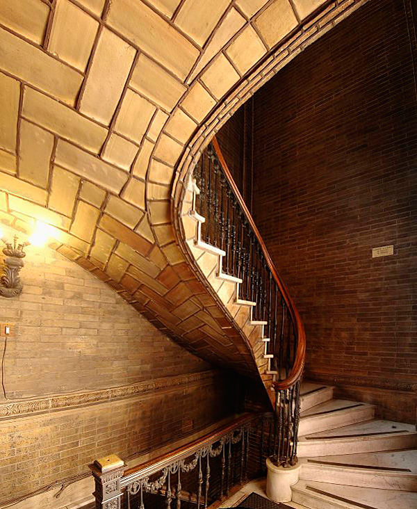 Die Konstruktionsweise des sogenannten Ziegelleichtgewölbes, wie das katalanische Gewölbe auch heißt, wirkt in ihrer Materialgerechtigkeit ungemein modern, wie eine perfekte Umsetzung von Sullivans „Form follows function“.