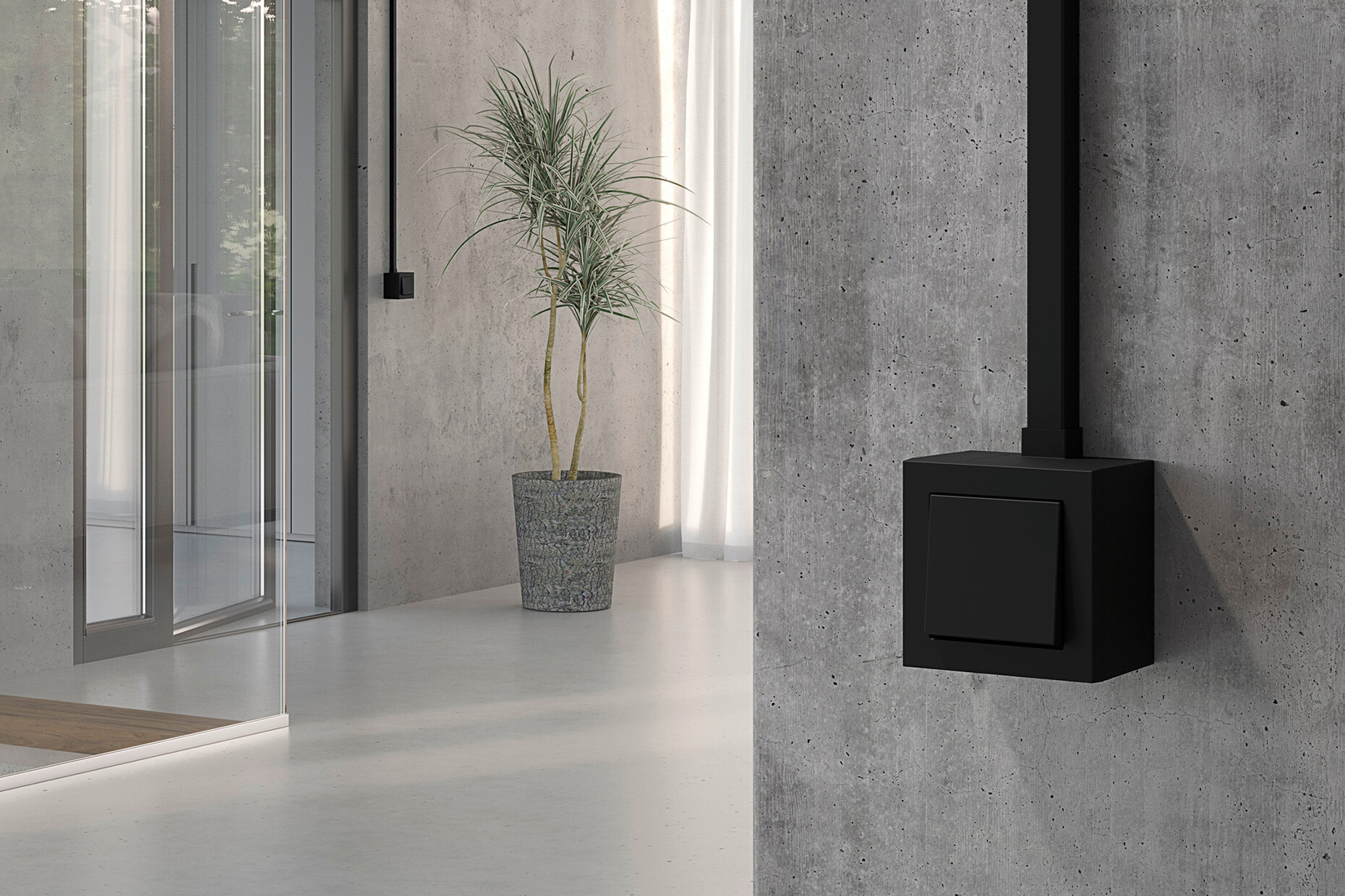 Das Schalterprogramm "Gira E2" ist mit seiner reduzierten Formensprache fast so etwas wie ein Designklassiker. Es wurde nun um eine Aufputz-Lösung erweitert, die auch in Schwarz matt lieferbar ist und zusätzlich ein Beleuchtungselement für das Aufputz-Gehäuse beinhaltet. Das Beleuchtungselement kann dabei anstelle eines Adapters zur Leitungseinführung einfach in das Aufputz-Gehäuse eingeschoben werden und sorgt für eine dezente Beleuchtung bei geringem Stromverbrauch. Die Aufputz-Variante von "Gira E2" eignet sich dabei nicht nur für die Nachrüstung, sondern auch für Räume, wo keine Leitungen und Unterputzdosen in der Wand verlegt werden sollen. Ein Beispiel sind Lofts, deren industrieller Charme bewahrt werden soll. Aber auch für Funktionsräume eignet sich die neue Aufputz-Variante: Dort erhöht es zum Beispiel die Sicherheit, indem das Beleuchtungselement dabei hilft, sich in schwach oder gar nicht beleuchteten Räumen zurechtzufinden.