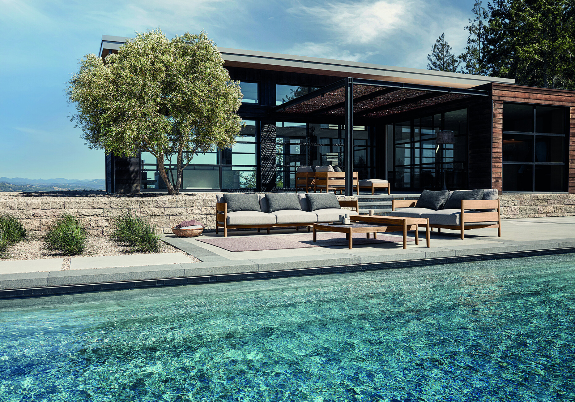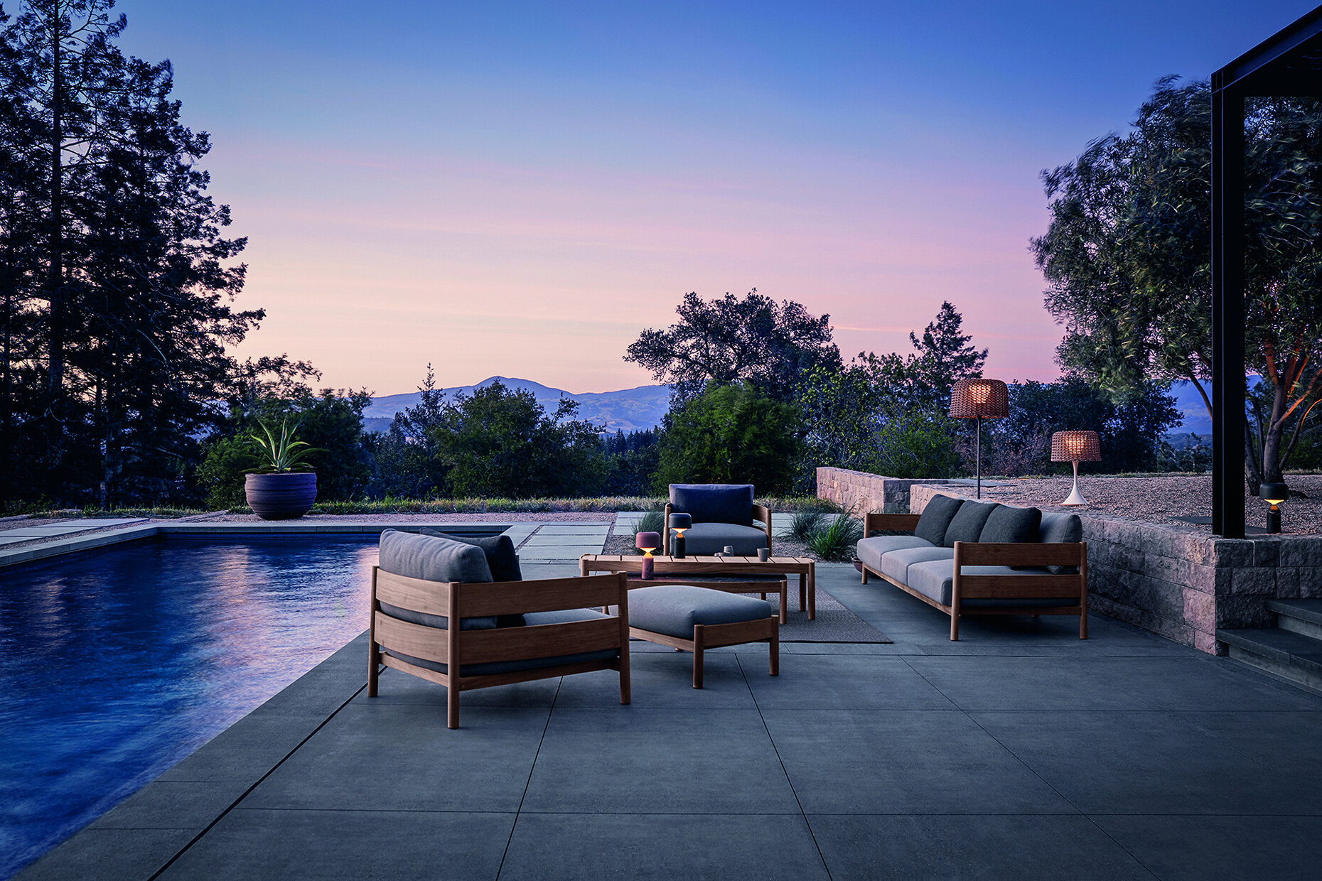 Luxuriös gepolstert: Der Lounge Chair, das Zwei- und Dreisitzersofa sowie der großzügige Ottoman der Kollektion "Haven" von Sebastian Herkner für Gloster bieten größtmöglichen Komfort, der von Teakholz eingerahmt wird. Die Rücken- und Seitenwände sind dabei sanft abgerundet und wirken schützend für die Sitzenden. "Mit breitseitiger Symmetrie und dem anmutigen Hauch einer yachtähnlichen Krümmung vermittelt Haven ein Gefühl von einwandfreier Handwerkskunst und Gelassenheit. Während das Profil allein schon zu maritimen Überlegungen einlädt, erfährt man bei der näheren Betrachtung, dass die Anspielung auf diesen Stil keineswegs zufällig ist", so der Designer. Dank der robusten Stoffe sind dem Traum vom sicheren Hafen keine Schranken gesetzt – wie genau dieser aussehen soll kann zudem mit Hilfe der zahlreichen Ausführungen individuell gestaltet werden. Eine perfekte Begleitung der Sitzmöbel sind zudem die Couchtische in zwei Größen. Nach den Wellen des Tages lässt es sich herrlich in dem Hafen von Gloster entspannen. (am)