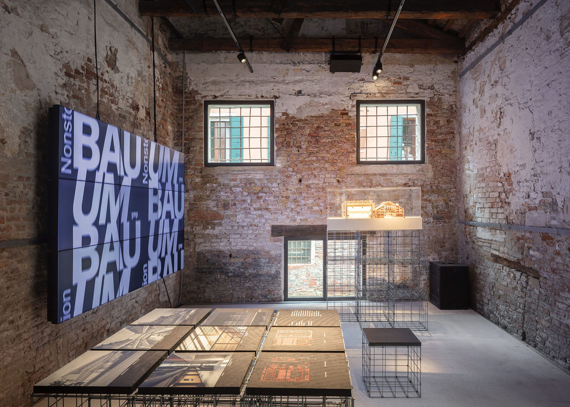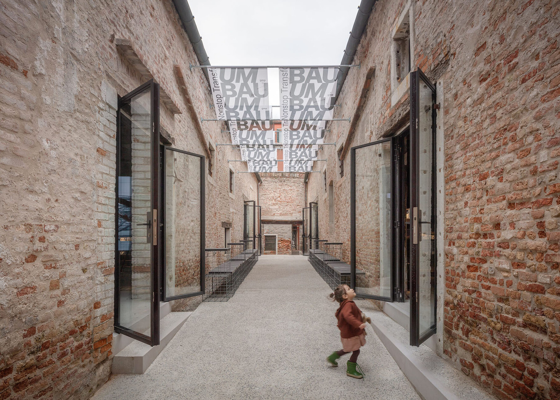 Die eindrucksvolle Ausstellung "Umbau" hat das Architekturbüro von Gerkan Marg und Partner gmp beigesteuert. Es ist eine der Kollateralausstellungen, von denen es in der Stadt über 70 außerhalb der Biennalegelände Giardini und Arsenale gibt. Salone Verde nennt sich der etwas versteckt gelegene "art & social club" im Sestiere Santa Croce auf halbem Weg zwischen Rialto und Bahnhof, der schon für sich ein Exponat zum Thema "Umbau" ist. Der Ort gehörte ursprünglich zu einem Palazzo aus dem 13. Jahrhundert und besteht aus zwei langgestreckten, eingeschossigen Gebäuden mit einem Hof dazwischen. Seit der behutsamen Sanierung im vergangenen Jahr dient er als exquisiter Ausstellungs- und Veranstaltungsort.