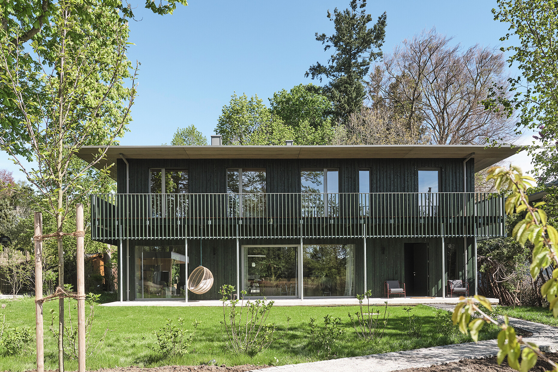 Tatsächlich plante Sascha Arnold sein Haus AZ am Ammersee nicht nur als Lebensmittelpunkt für sich und seine Familie: "Wir wollten hier baulich das Maximum an Nachhaltigkeit rausholen, nicht nur für uns, sondern auch für unsere KundInnen, denen wir am Beispiel unseres Hauses zeigen wollten, was heute alles geht", sagt er. Architektonisch ist das rund 200 Quadratmeter große Wohnhaus inspiriert von Kenzō Tanges Bauten der Fünfziger Jahre. Eine Photovoltaikanlage auf dem Gästehaus liefert Strom und hat etwa im April diesen Jahres 45 Prozent des Energiebedarfs decken können. Dafür, dass die Solarenergie effizient verteilt und eingesetzt wird, sorgt im Haus AZ das Energiemanagement System "flow" von Hager: Die Komplettlösung erleichtert die Planung und den Betrieb möglichst klimaschonender Immobilien enorm. Als All-in-one-System bringt "flow" Energiemanagement, Energiespeicher und Ladestation in einer technologischen Lösung zusammen. "Wir sparen so gleich zwei Mal Energie: einmal im späteren Betrieb – und heute beim Aufwand für Planung und Installation", resümiert Arnold.
