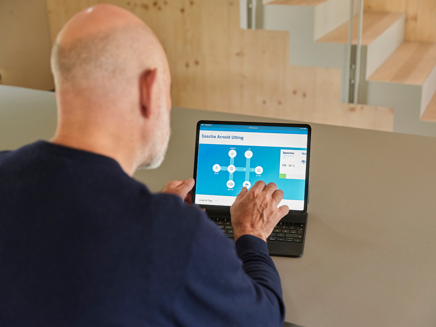 Die "flow"-App verrät dem Bauherrn, dass die Anlage sogar an einem verregneten Morgen 2,1 kWh Leistung zur Verfügung stellt. Eingesetzt wird die selbsterzeugte Solarenergie unter anderem für das Laden von E-Fahrzeugen über die Ladestation "witty solar". Eine automatische Phasenumschaltung orientiert sich automatisch an der Leistung der Photovoltaikanlage. Solarstrom, der aktuell nicht benötigt wird, wir in einem 9,75-kWh-Batteriespeicher für die spätere Nutzung gesichert.