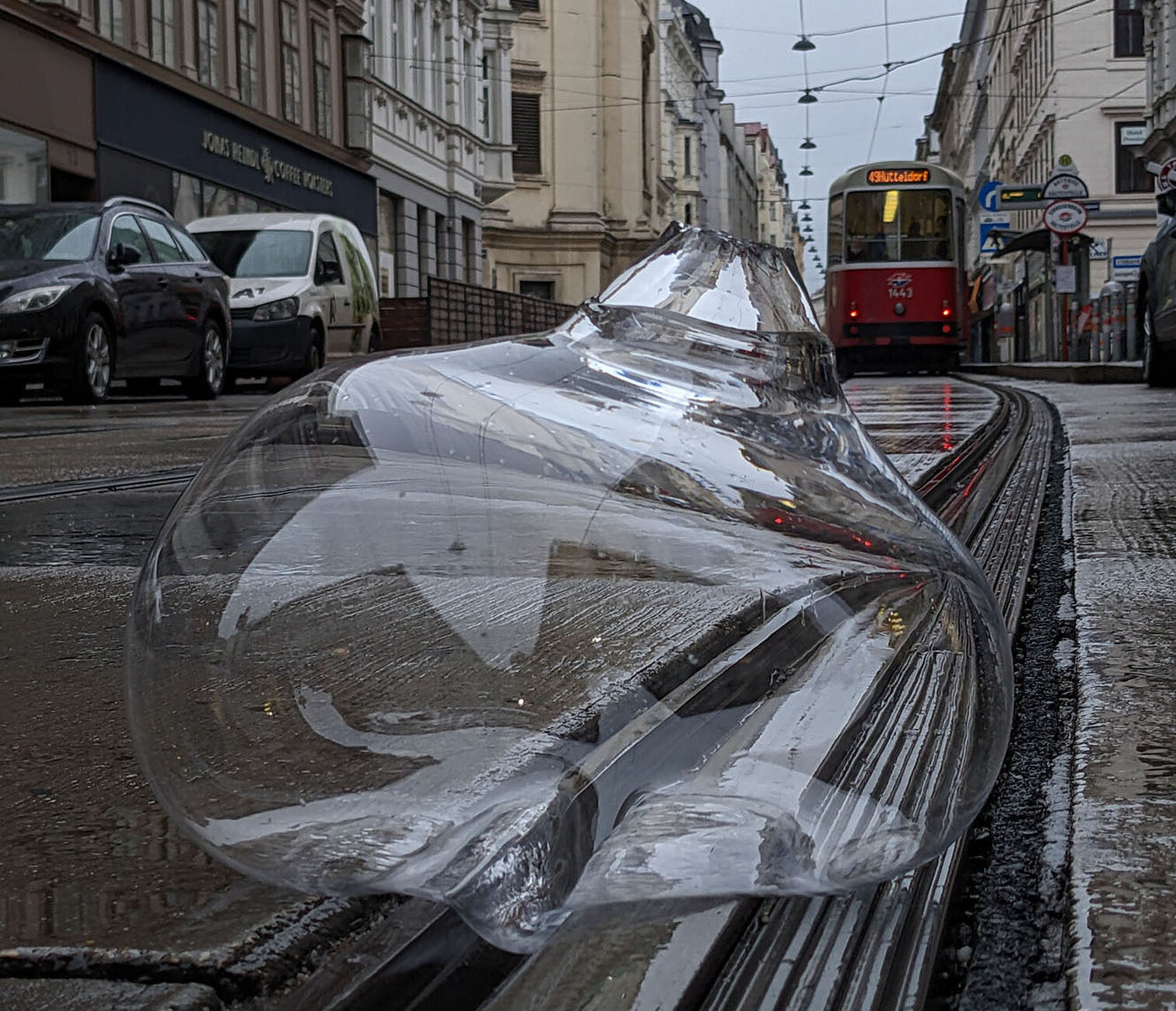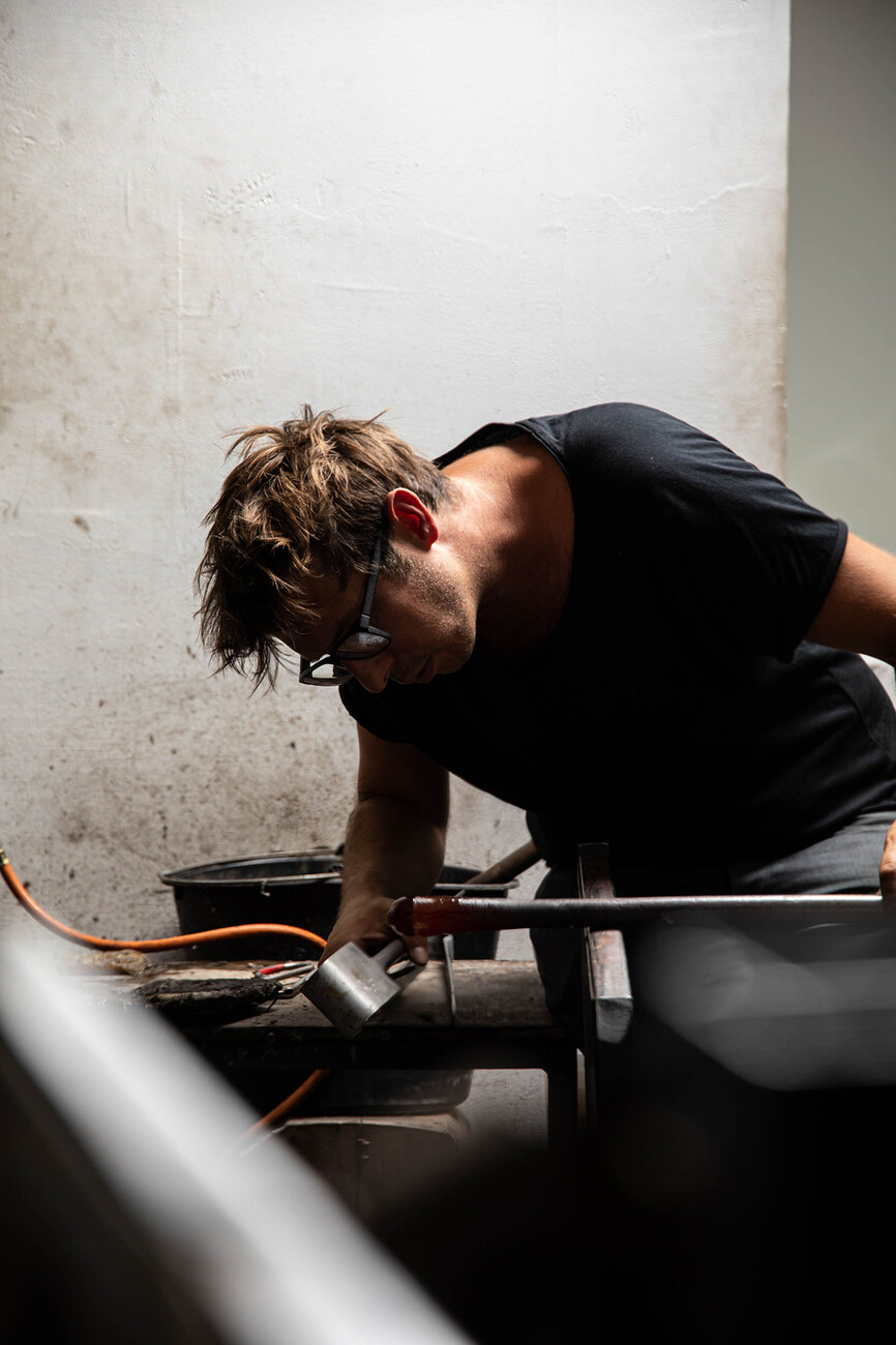 “Die Ausbildung der Glasbläserei dauert viele Jahre, eigentlich Jahrzehnte, man lernt nie aus”, sagt Comploj. Für diese ist der gebürtige Tiroler bereits viel gereist, von New York City, wo er seine ersten praktischen Erfahrungen in den Studios sammelte, über London, wo er als Glasbläser für Unternehmen arbeitete, bis nach Dänemark, Australien und Deutschland. Das er parallel gelernter Tischler ist, kam ihm dabei oft zugute. Sein aktueller Standort ist Wien. Hier setzt er sich auch mit Kursen und Workshops an Universitäten für die Förderung des Verständnisses für die Arbeit mit dem Material Glas ein: “Dieses Kunsthandwerk wird in Österreich leider nicht gefördert, dabei fragen oft junge DesignerInnen bei mir an, die sich für die Arbeit mit Glas interessieren.” So bleibt es InteressentInnen – wie auch Comploj seinerzeit – meist selbst überlassen, Initiative zu ergreifen, Engagement zu zeigen und das Wagnis einer langen Reise einzugehen. Complojs KundInnen wissen vor allem den Innovationsgeist zu schätzen, der hinter seinen Kreationen steckt. Im Moment lässt sich das Team des Studios von den Ecken und Kanten inspirieren, die das urbane Umfeld Wiens vor der Haustüre bietet. So ersetzen Gehsteige, Kanaldeckel, Hydranten oder Straßenbahnschienen die sonst üblichen Formen, gegen die das Glas geblasen wird. In kurzen Videos lässt sich auf Instagram die Entstehung der ungewöhnlichen Objekte miterleben – Glaskunst, die über das reine Produkt hinausgeht und Geschichten zu erzählen weiß.