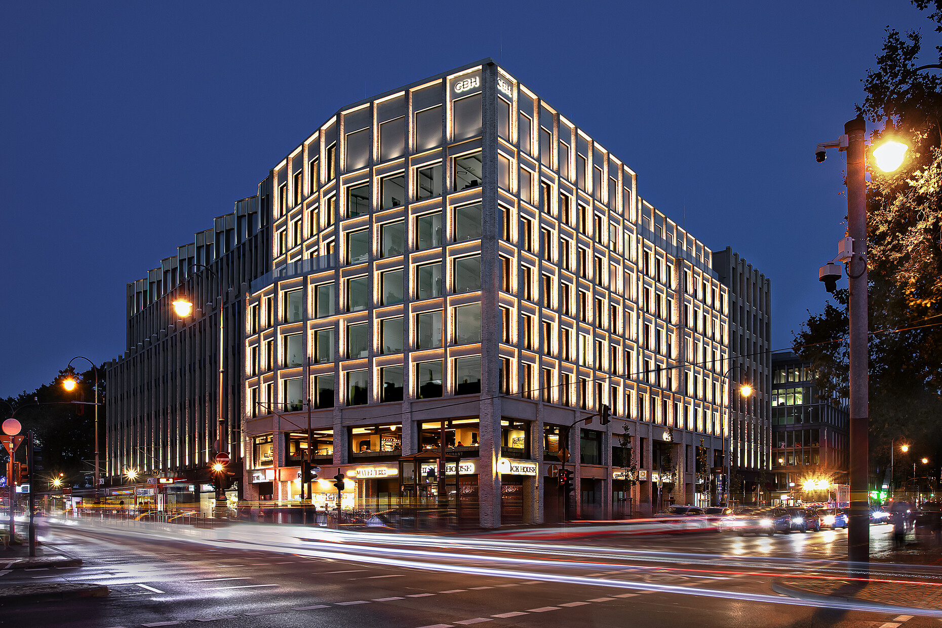 Dieses individuelle Beleuchtungskonzept entwickelte ADO Lights, eine Marke des nordrhein-westfälischen Herstellers TTC Timmler Technology GmbH, in enger Zusammenarbeit mit den Lichtplanern von ag Licht und setzte damit gediegene Akzente, die die Architektursprache unterstreichen. Für das Projekt im städtischen Kontext war neben der Effizienz die Vermeidung von Blendwirkung ihre oberste Maxime: Auf expliziten Wunsch konnte ADO Lights den Abstrahlwinkel der HL-AL-05 von ursprünglich zehn Grad mit einem Passepartoutdruck auf der VSG-Glasabdeckung auf sieben Grad verringern. Damit stört das Licht weder nach innen noch nach außen, ganz im Sinne der Reduktion von Lichtverschmutzung. Alle installierten LED-Lichtkörper sind dimmbar, was den hocheffizienten Wirkungsgrad weiter unterstützt. Das aus ökologisch wie ökonomischer Sicht wertsteigernde Konzept wurde mit einer DGNB Gold Zertifizierung ausgezeichnet. ADO Lights Bodenleuchten an den Freiflächen und im Interieur an den Aufzugsportalen wie in Form von Pendelleuchten in den Büros komplettieren das maßgefertigte Lichtkonzept. Es betont die konzeptionelle Architektur von Max Dudler und hebt den Bau im urbanen Setting unaufdringlich hervor.
