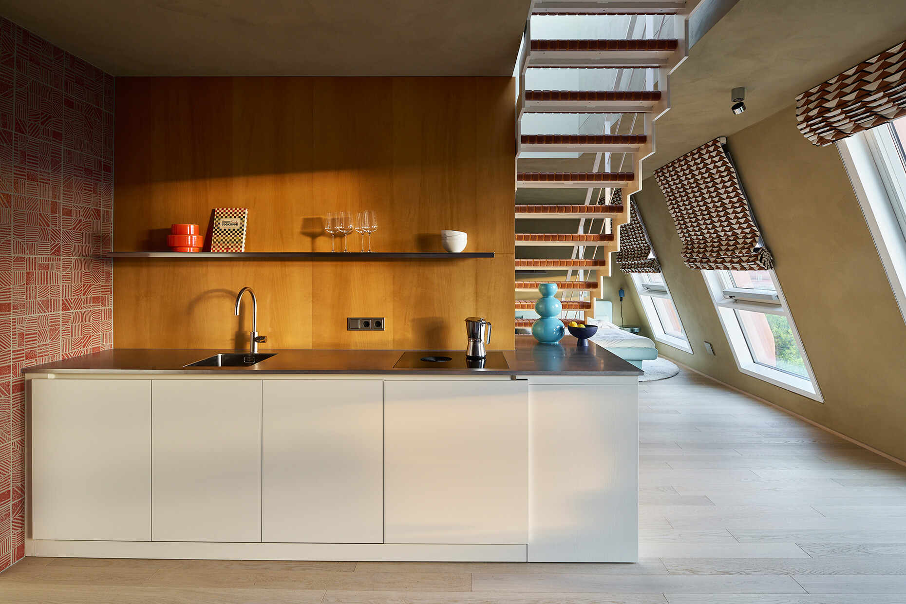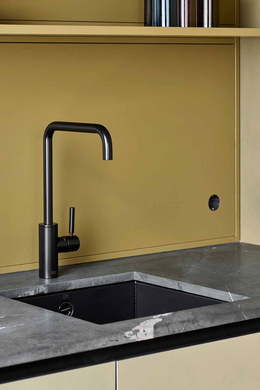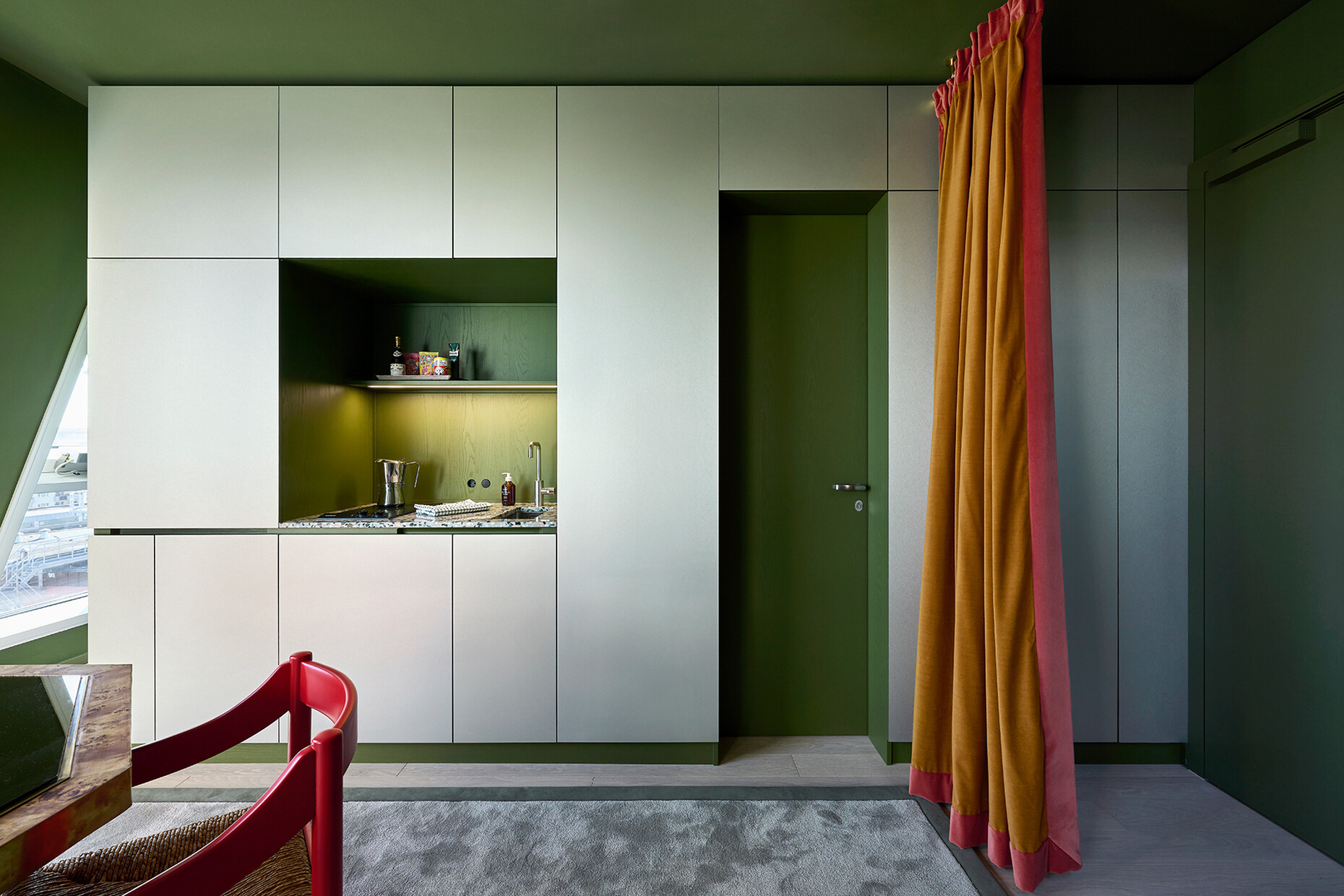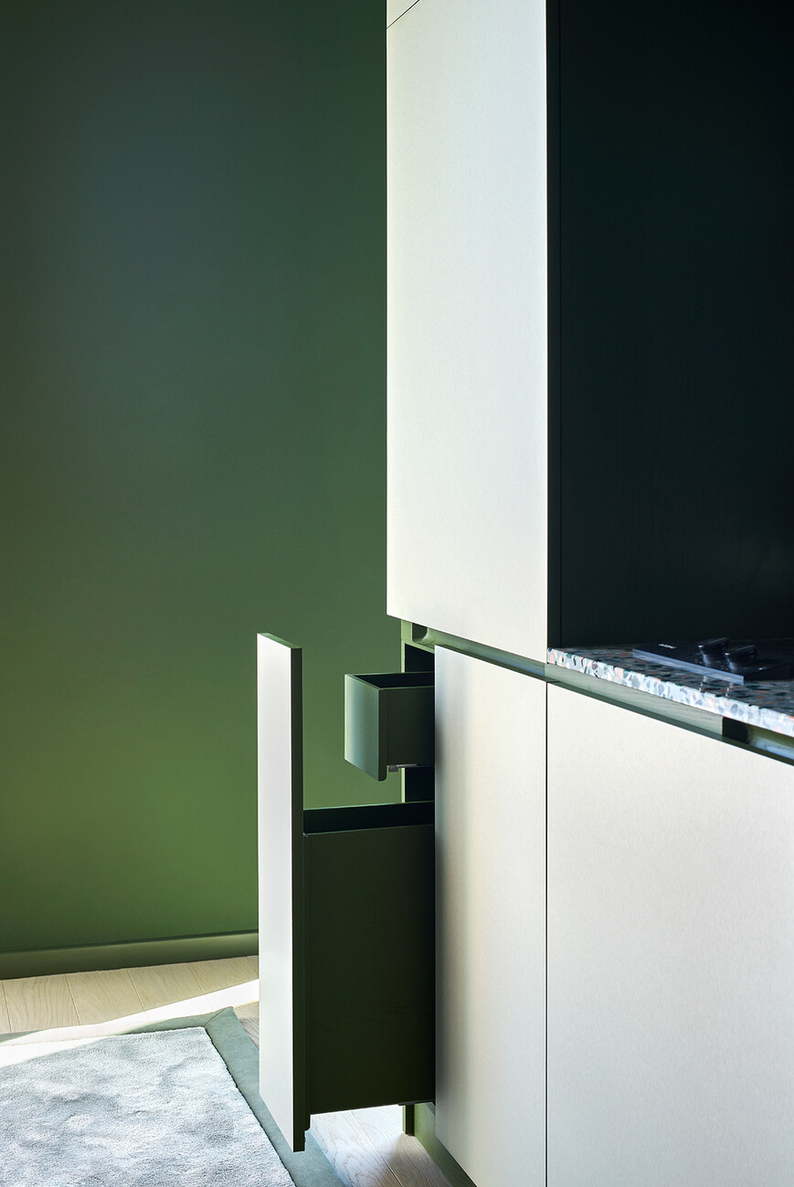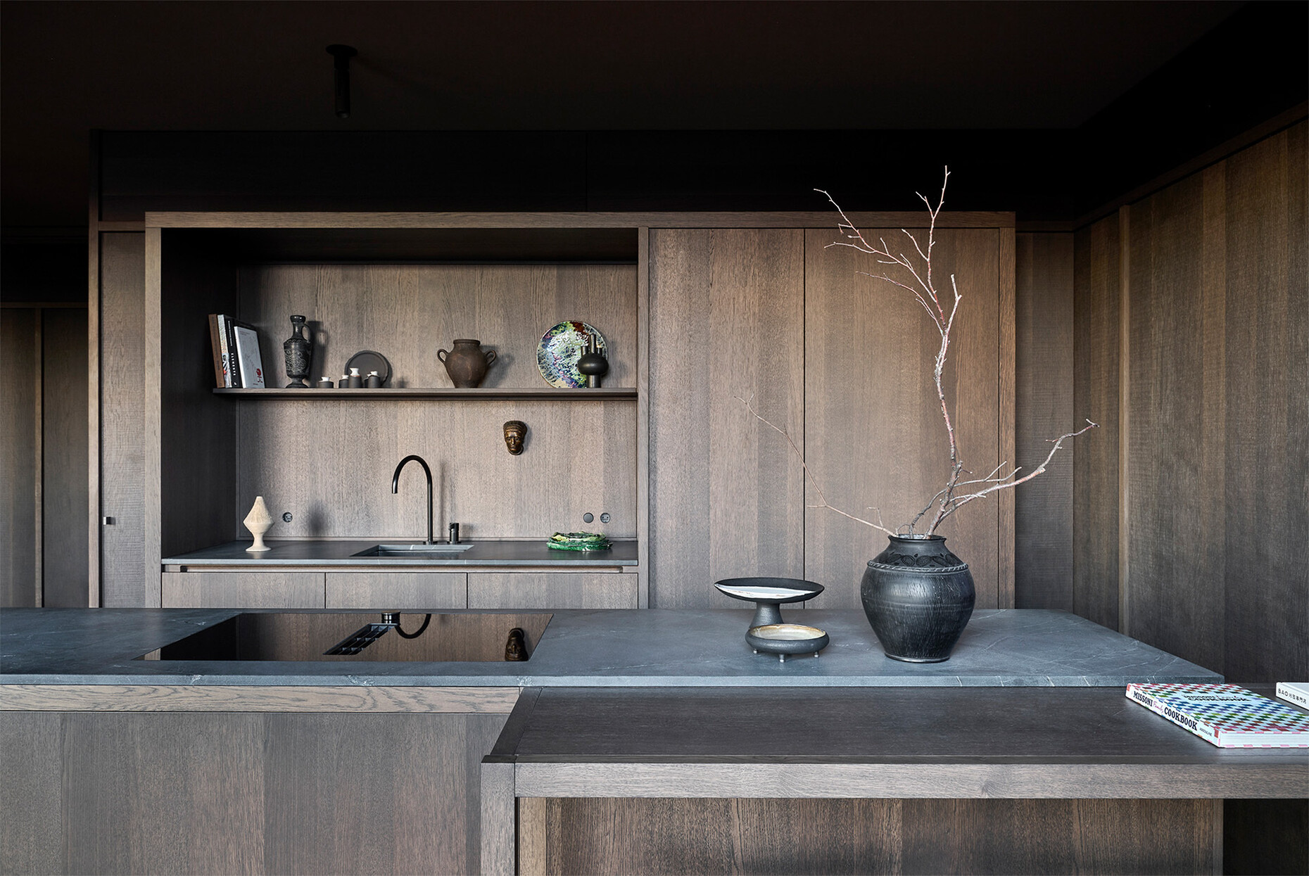 So individuell die Gestaltung der zehn Penthouse-Apartments im "Van B" nach den Vorstellungen der zehn verschiedenen Designstudios auch sein mag, sie alle haben ein Element gemein: "J*Gast". Dabei handelt es sich um ein patentiertes Rahmensystem, in dem durch Einklinken von Bauteilkomponenten ein enorm individualisierbares Küchenmöbel entsteht. Zur Wahl stehen Massivholzschubläden und echtholzfurnierte Elemente. Die robusten Arbeitsplatten werden vorwiegend aus heimischen Natursteinen oder Terrazzo gefertigt. "J*Gast gleicht einem Möbelstück", sagt Tobias Petri, "und damit passt es gut in offene Grundrisse." Die ideale Ergänzung also für die zehn vollmöblierten Statement-Pieces nach den Designs der beteiligten Interiorstudios im "Van B".