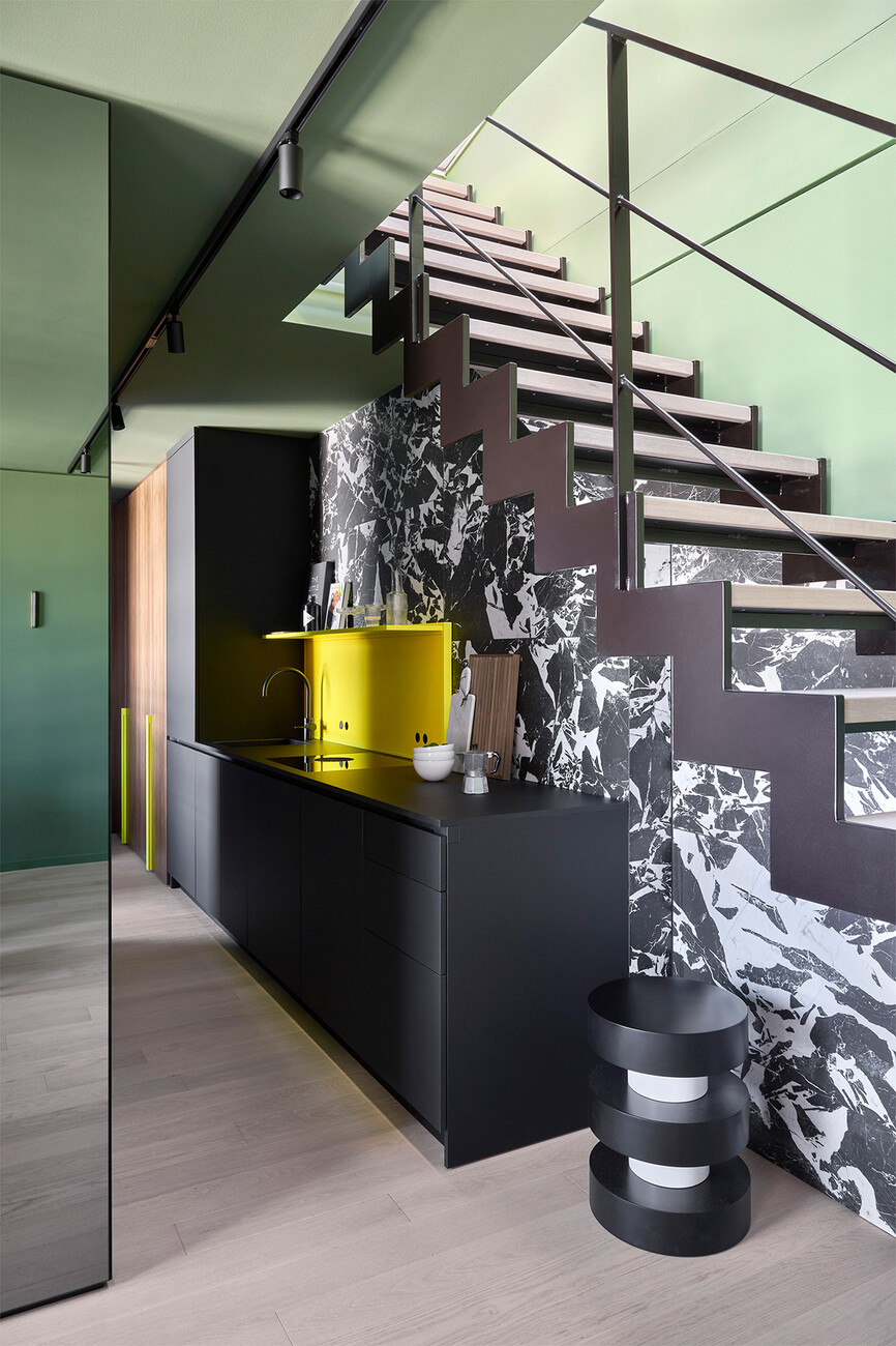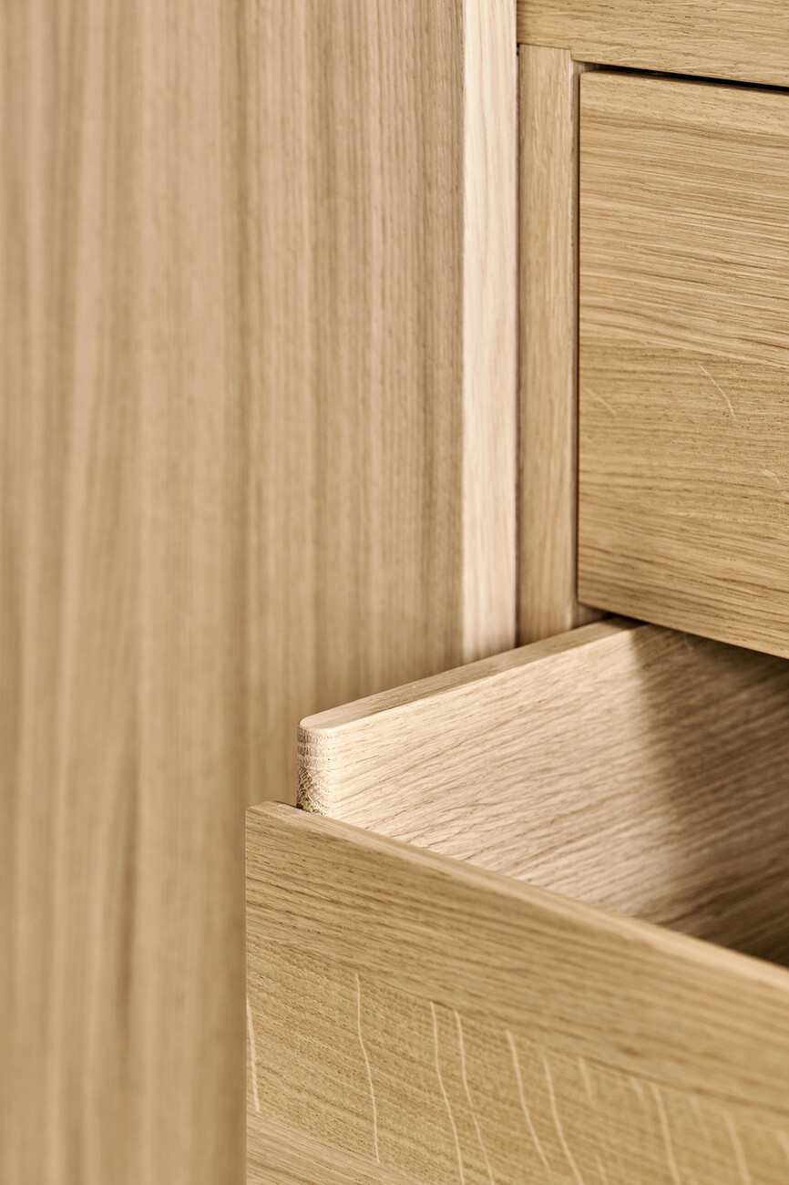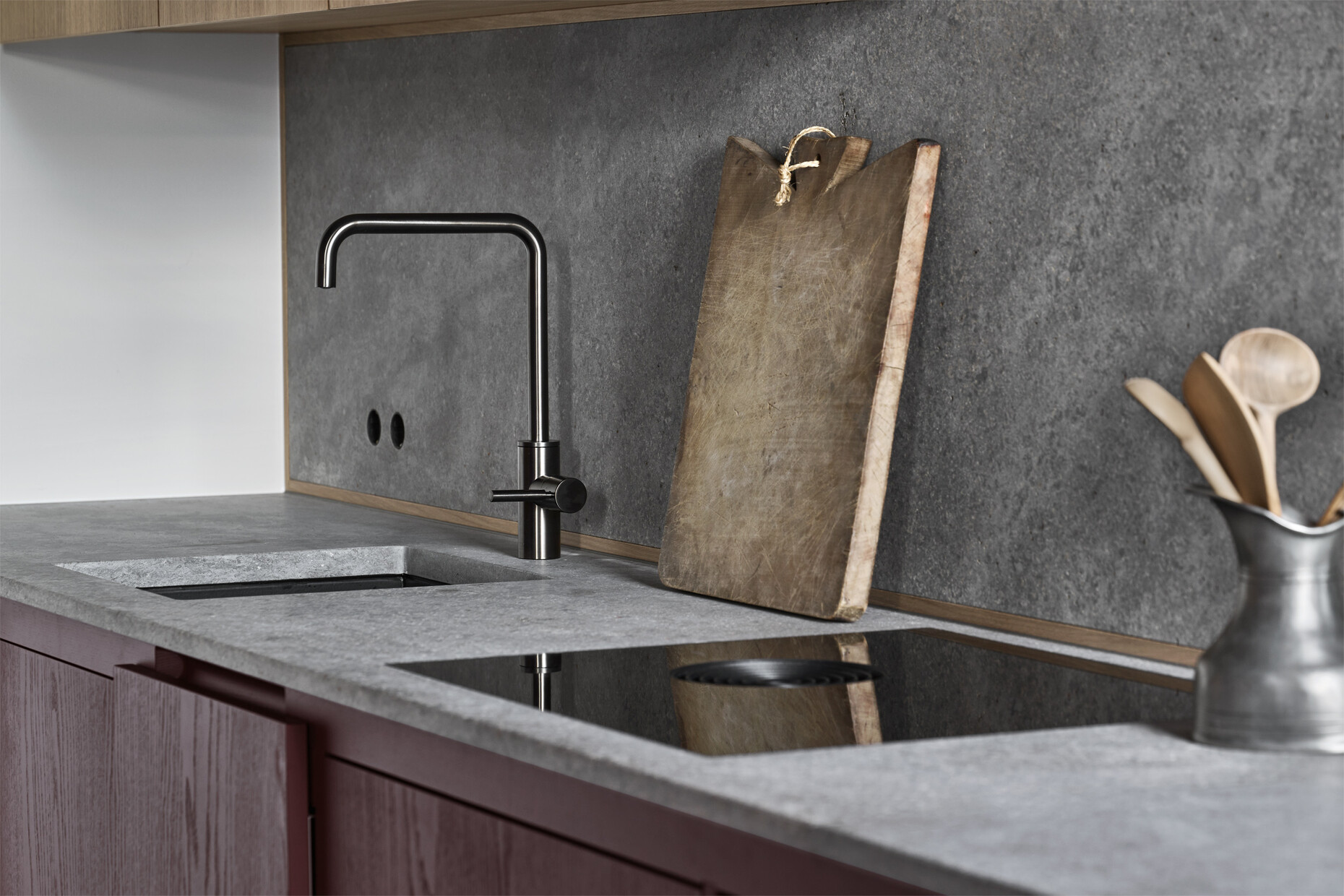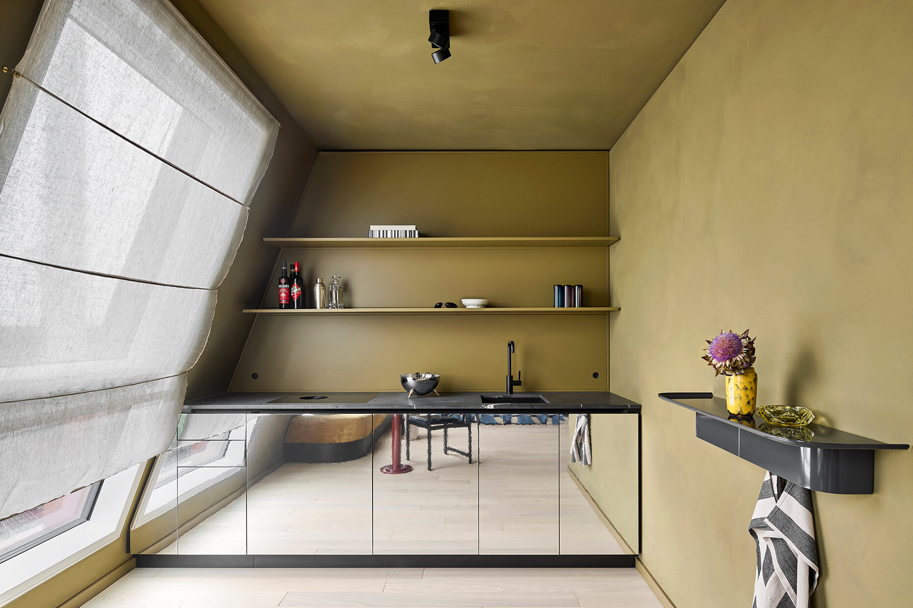 So individuell die Gestaltung der zehn Penthouse-Apartments im "Van B" nach den Vorstellungen der zehn verschiedenen Designstudios auch sein mag, sie alle haben ein Element gemein: "J*Gast". Dabei handelt es sich um ein patentiertes Rahmensystem, in dem durch Einklinken von Bauteilkomponenten ein enorm individualisierbares Küchenmöbel entsteht. Zur Wahl stehen Massivholzschubläden und echtholzfurnierte Elemente. Die robusten Arbeitsplatten werden vorwiegend aus heimischen Natursteinen oder Terrazzo gefertigt. "J*Gast gleicht einem Möbelstück", sagt Tobias Petri, "und damit passt es gut in offene Grundrisse." Die ideale Ergänzung also für die zehn vollmöblierten Statement-Pieces nach den Designs der beteiligten Interiorstudios im "Van B".