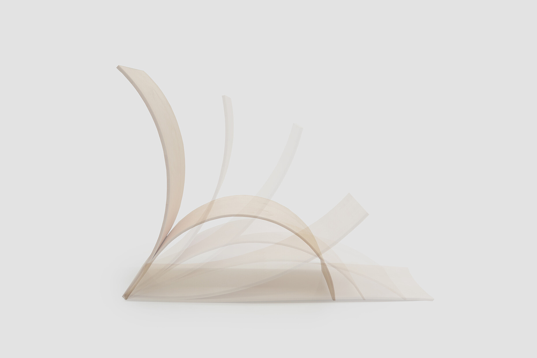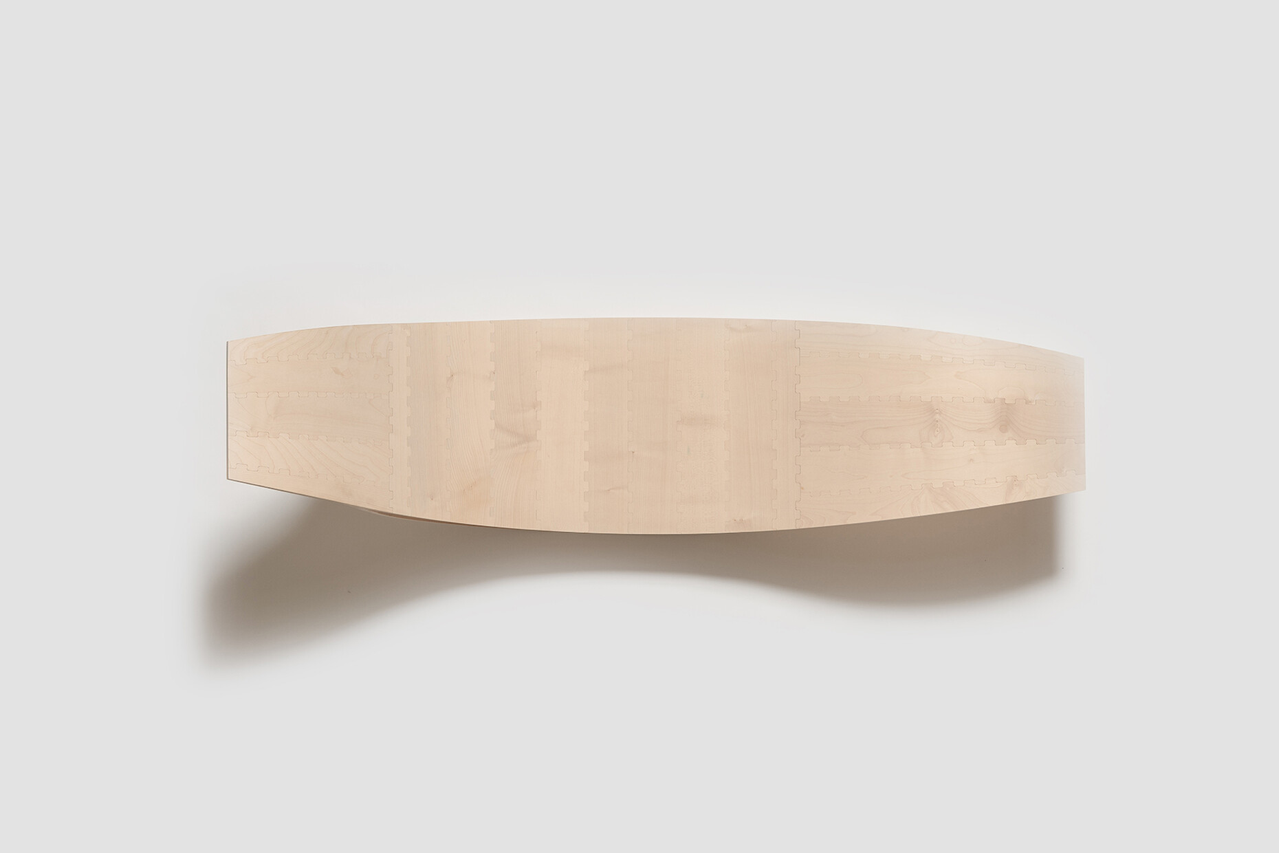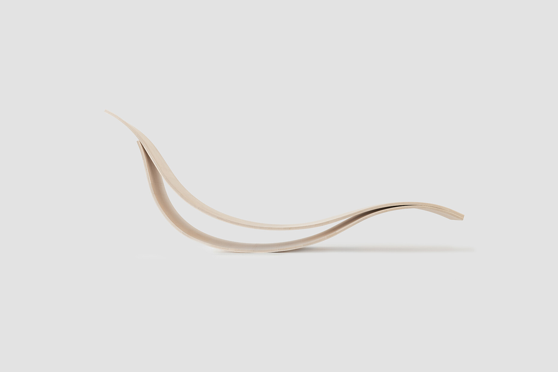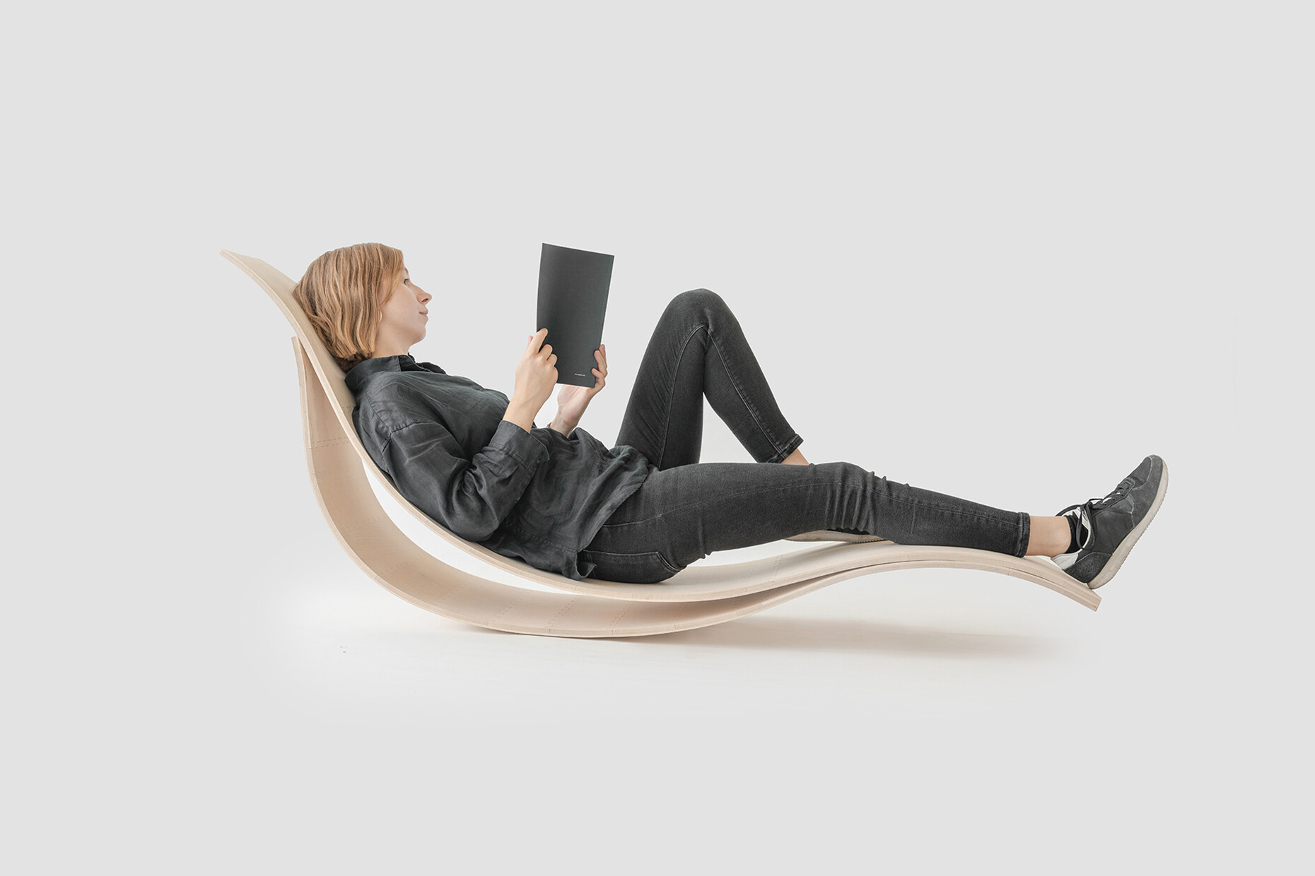 Die ersten Möbel sind "H1" und "H2", ein Loungesessel und eine Chaiselounge aus FSC-zertifiziertem Ahornholz, das in dünnen Doppellagen angeordnet ist. Sorge haben, dass sich die Formen bei einer leichten Veränderung der Innenraumtemperatur verändern, muss man indes nicht. Auch die Materialstärke gewährt eine gewisse Pufferwirkung. Um die schlanken Flächen und eleganten Kurven wieder in einen flachen Zustand zu bringen, wäre eine anhaltende Durchfeuchtung notwendig. Für den Sprung zur Marktreife und einer Weiterentwicklung der Technologie, auch mit Blick auf leichte, tragfähige Bauelemente, haben Laura Kiesewetter und Dr.-Ing. Dylan Wood nun "hylo tech" gegründet. Alle Produkte des Spin-off Unternehmens sind biobasiert, biologisch geformt und könnten somit zu mehr Ressourcen- und Fertigungseffizienz beitragen.