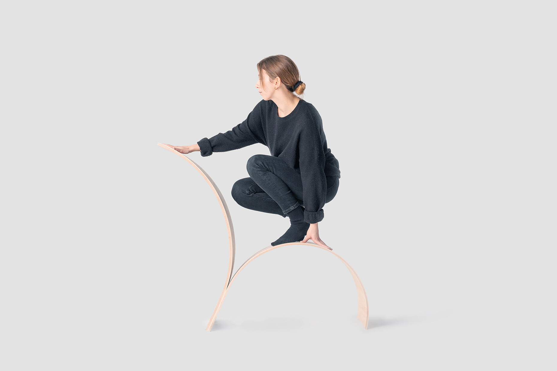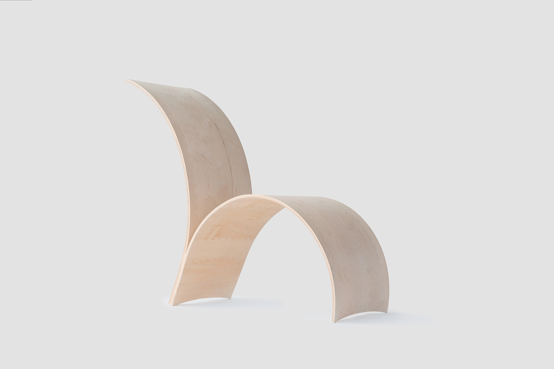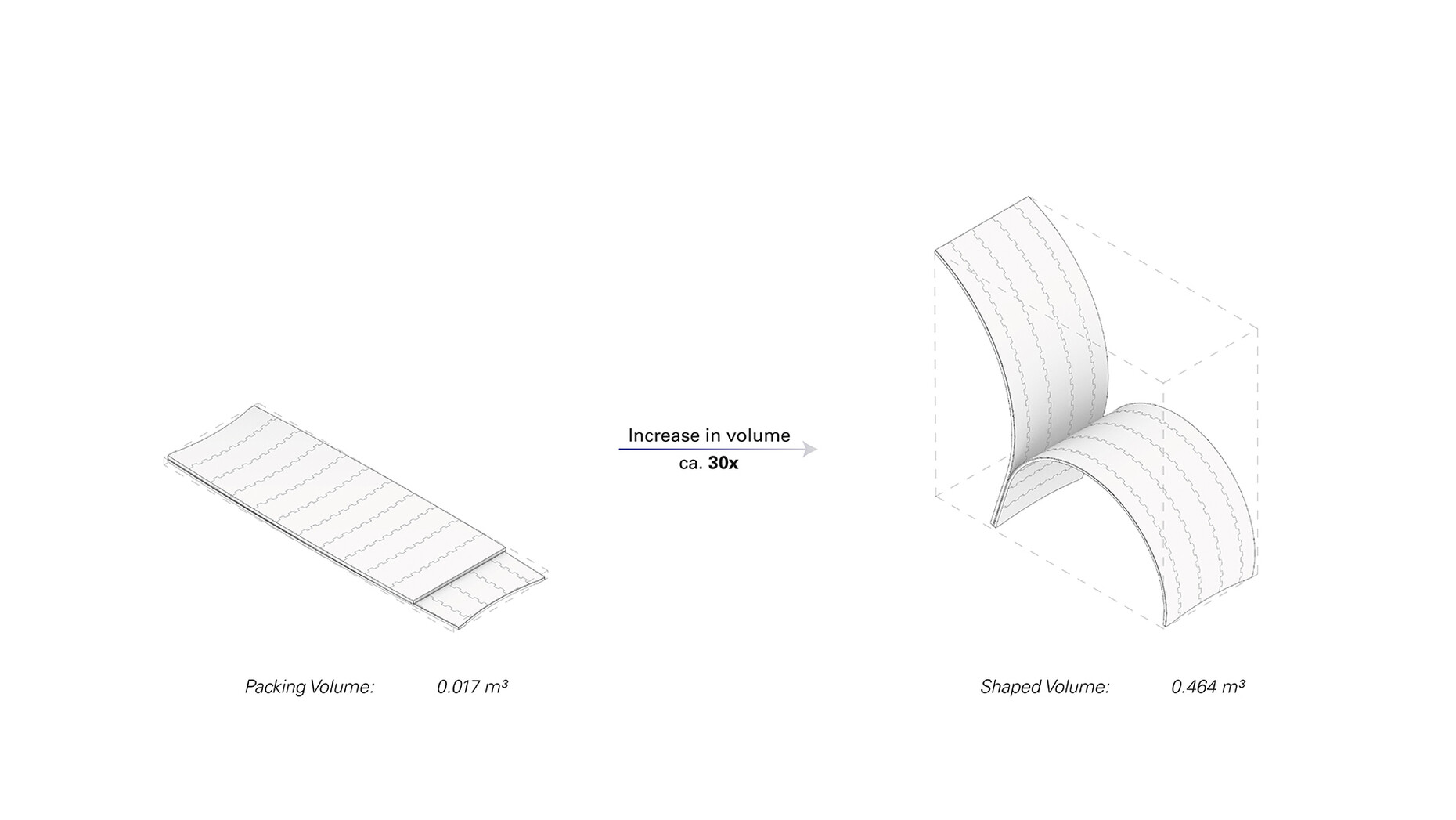 Ein Stuhl aus Holz, der flach verpackt geliefert wird, aber für die Erreichung seiner endgültigen Form nicht montiert werden muss – wie soll das gehen? Ein Team des ICD Institut für Computerbasiertes Entwerfen und Baufertigung der Universität Stuttgart hat hierzu in Zusammenarbeit mit der Technischen Universität Dresden und der ETH Zürich ein Verfahren der Natur erforscht: Die Verformung von Holz durch hygroskopisches Schwinden. Trocknen die Zellwände des Materials nach der Ernte, ziehen sich diese zusammen und die gleichmäßige Krümmung des Holzes entsteht. "HygroShape" ist somit das erste Konzept für selbstformende Möbel. Das Projekt baut auf den Erkenntnissen auf, die WissenschaftlerInnen der Stuttgarter Universitäten und der ETH Zürich im Zuge der Errichtung des "Urbach Turms" gewonnen haben, dem weltweit ersten gebauten Objekt aus selbstformendem Holz. 2019 entstand das 14 Meter hohe Versuchsgebäude, das heute der Stadt Urbach in Baden-Württemberg als Wahrzeichen und Aussichtspunkt dient. "Aus diesem Projekt ist die Idee für selbstformende Möbel entstanden", so Laura Kiesewetter vom ICD der Universität Stuttgart. Je nach Schichtdicke und mit Berücksichtigung der Faserorientierung im Material ließe sich die Bogenform dabei sehr gut steuern, so Kiesewetter weiter. Dem dynamischen Design zugrunde liegt eine Berechnung des Schwindverfahrens und eine Bestimmung des Feuchtigkeitsgehaltes der mehrschichtigen Holzbauteile. Über die Veränderungen der Parameter wäre auch ein personalisiertes Design möglich. Generell ist die Technologie nicht auf eine bestimmte Holzsorte angewiesen, für ihre Forschung verwendete das Team bisher Ahorn-, Buchen-, Eschen-, Fichten- und Kirschholz.
