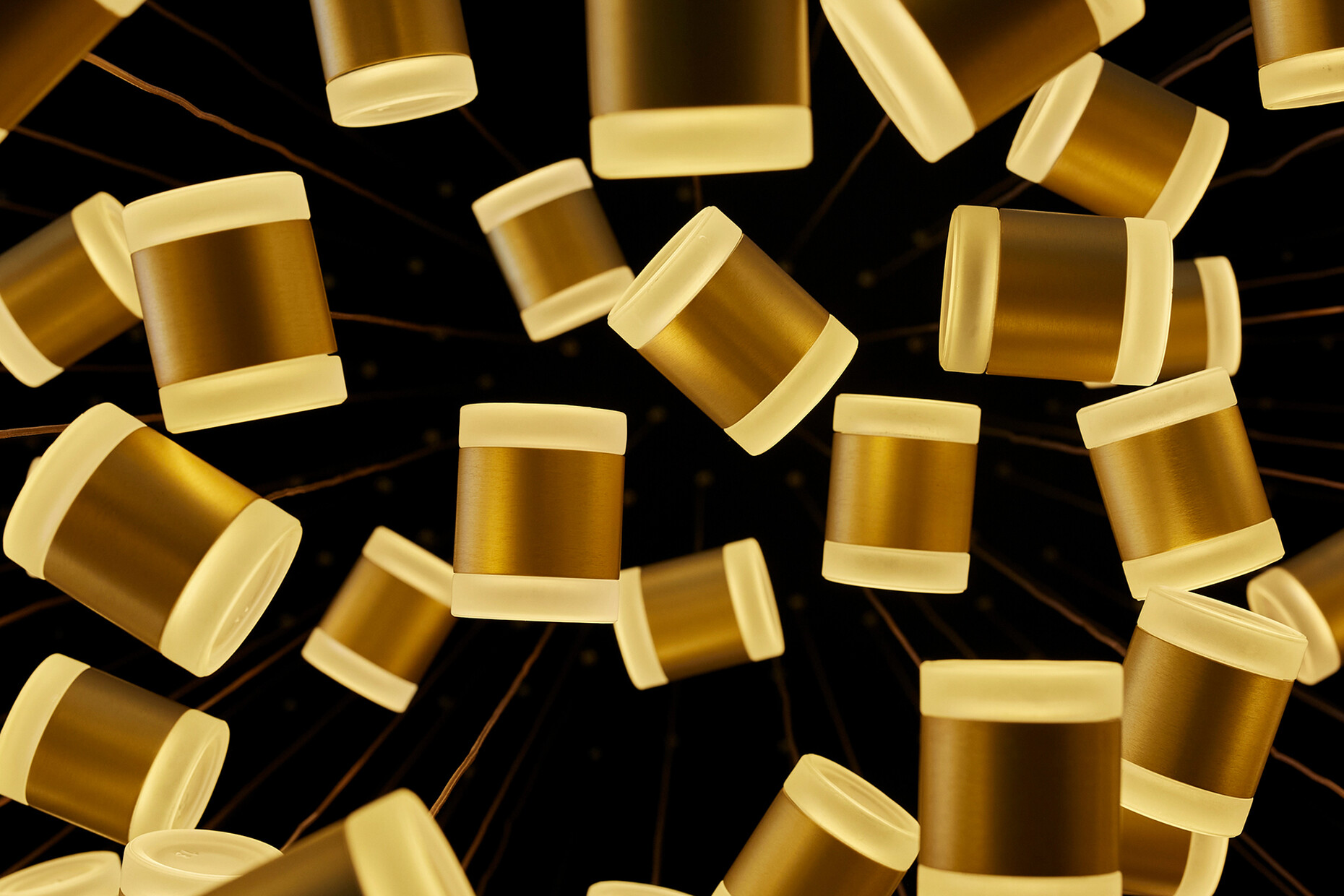 Schick sehen sie aus, die Mini-Leuchten, die dutzendfach zur Lichtwolke geballt in einem Schaufenster in Berlin hängen. Lauter kleine Glaszylinder mit mattgoldenem Ring, an einem filigranen Metallkabel baumelnd. Jacob Brinck lächelt, als er eine der Leuchten auseinandernimmt, denn er ahnt den Aha-Effekt voraus. Die matten Glaselemente sind nämlich – Abfall! Unbenutzte Cremetiegel aus Überproduktion, die nicht mehr gebraucht wurden. Statt sie wegzuwerfen und damit Ressourcen zu verschwenden, hat die Kosmetikmarke cosnova beauty Jacob Brincks Designstudio llot llov beauftragt, ein neues Produkt daraus zu entwickeln. Der Entwurf "Cream Light" ist eine so einfache wie effektvolle Lösung: Das Gewinde der Glasgefäße verschwindet in einem Mittelstück aus Aluminium. Darin sitzen als Lichtquelle zwei ringförmige LEDs. Ein perfekt wirkendes, zeitgemäßes Produkt, weit entfernt von der selbstgebastelten, fehlerverliebten Ästhetik, die Upcycling-Projekte sonst oft haben. Nur wer genau hinschaut, entdeckt an jedem Tiegel eine im Boden eingeprägte Nummer, ein diskreter Hinweis auf die ursprüngliche Bestimmung.