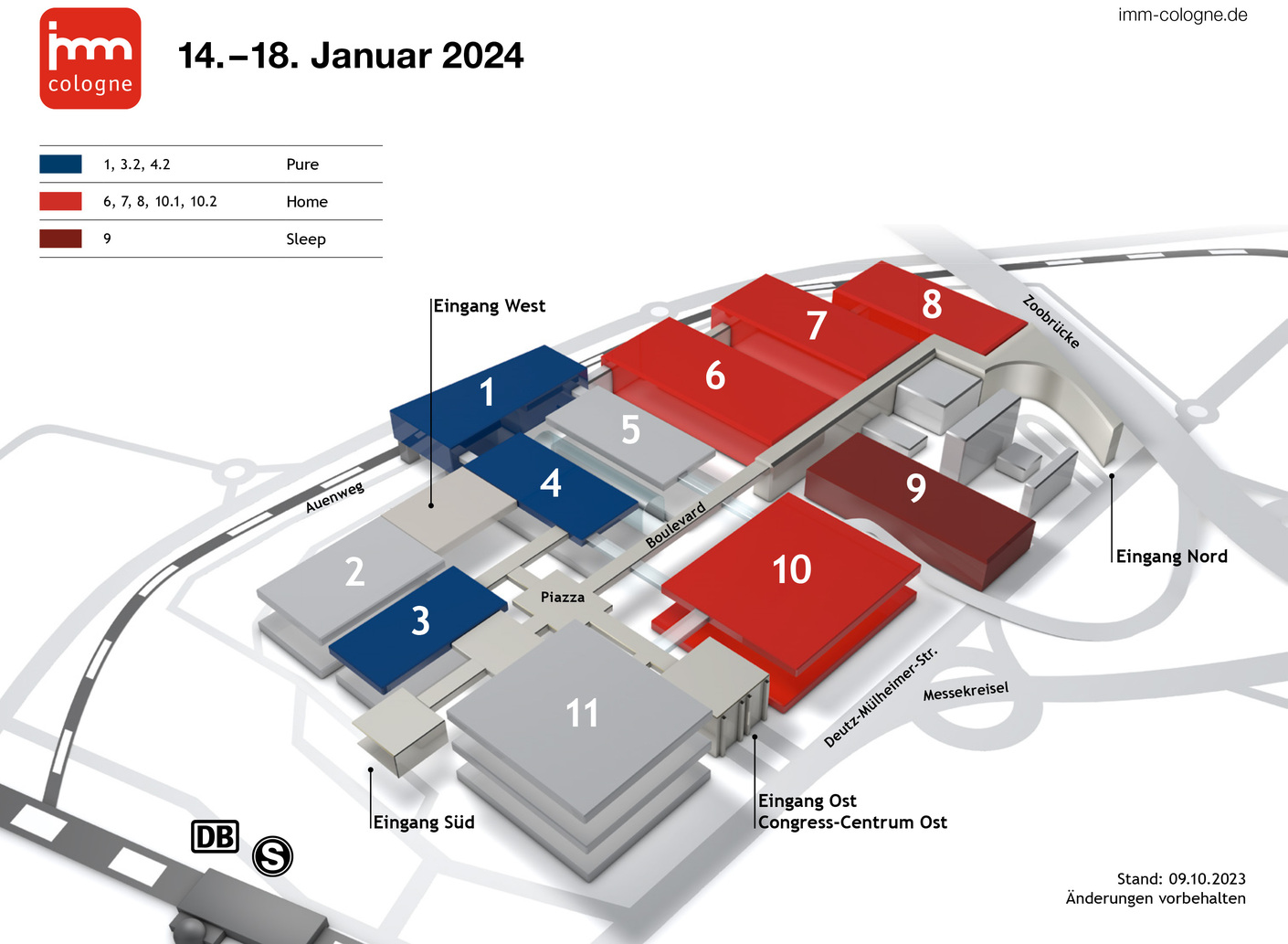 "The Circles" heißt so passenderweise das neue Ausstellungs- und Eventkonzept für die geplante Bespielung von neun Hallen der Koelnmesse, das Wissenstransfer, Inspiration, Erlebnis und Gastronomie bieten soll. Diese schließt auch eine gemeinschaftliche Präsentationsfläche für die Highlights der AusstellerInnen ein: Infrastrukturflächen sollen geteilt werden, eine Präsentation wie im Handel möglich sein. Die geplanten Schauen bündeln sich in den Messeschwerpunkten "Pure" (Plattform für Premiummarken), "Home" (Lifestyleorientierte Wohnwelten) und "Sleep" (Konzepte für Schlafkomfort). Zu den bereits angemeldeten AusstellerInnen gehören neben einigen großen Namen wie Rolf Benz, COR, Freifrau, Topstar oder müller möbelwerkstätten auch viele kleine Unternehmen. Aufstrebende Talente darf man ebenso in den "Installation Circles" und während des Designwettbewerbs "Pure Talents Contest 2024" entdecken, der zum 20. Mal veranstaltet wird, und laut Matthias Pollmann bereits über 1000 Einreichungen verzeichnet. Die Perspektiven für die Einrichtungsbranche sowie aktuelle Lösungsansätze für die Möbelindustrie und den Möbelhandel sollen zudem im Summit der imm cologne diskutiert werden, der gemeinsam mit VDM und BVDM organisiert wird. "Es ist eine große Leistung des Teams, wir hatten nur ein halbes Jahr Zeit die Veranstaltung an den Start zu bringen und wir sehen jetzt schon, dass es eine sehr gute imm cologne werden wird, aber auch eine Veranstaltung, die sich weiterentwickelt, weil diese Veränderungen notwendig sind", so Oliver Frese, Geschäftsführer der Koelnmesse GmbH.