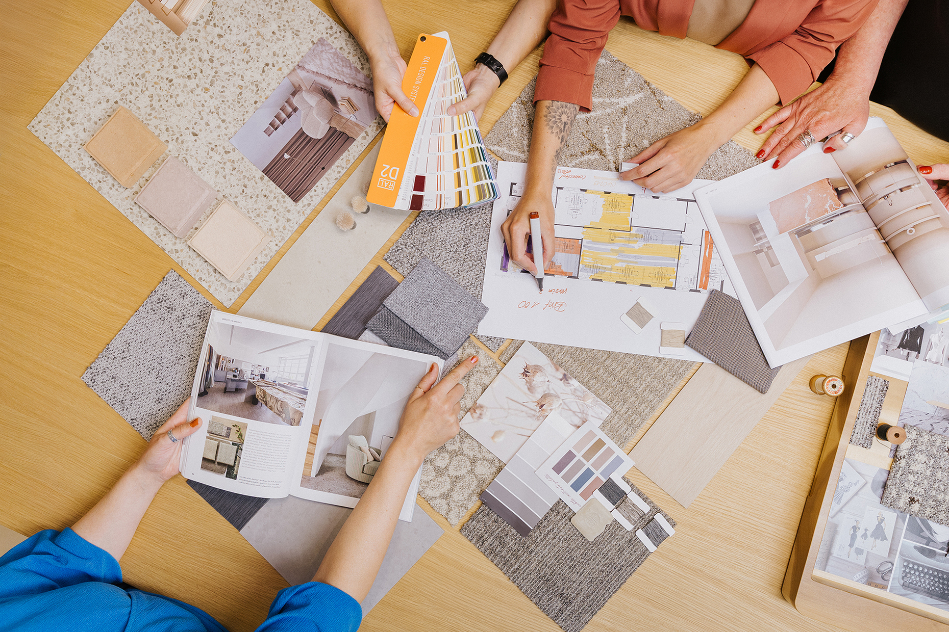 Welcher Bodenbelag ist der Richtige? Bei der Ausstattung von Räumen stehen GestalterInnen und Gestalter einem umfassenden Angebot gegenüber. Neben Farben und Texturen sind für die Wahl auch die Nachhaltigkeitswerte entscheidend. Interface, globaler Hersteller von Bodenbelagslösungen mit Sitz in Krefeld, löst diese Aufgabe mit dem Service des Interface Design Studio (IDS), das die Kollaborateure ohne zusätzlichen Kosten anfragen können. Das Know-How des vierköpfigen Teams ist ganzheitlich: Von der Inspiration mit Moodboards und Farbpaletten über die Beratung bis zur Visualisierung wie Ausarbeitung der Konzepte mit Mengenermittlungen und Verlegeplänen.