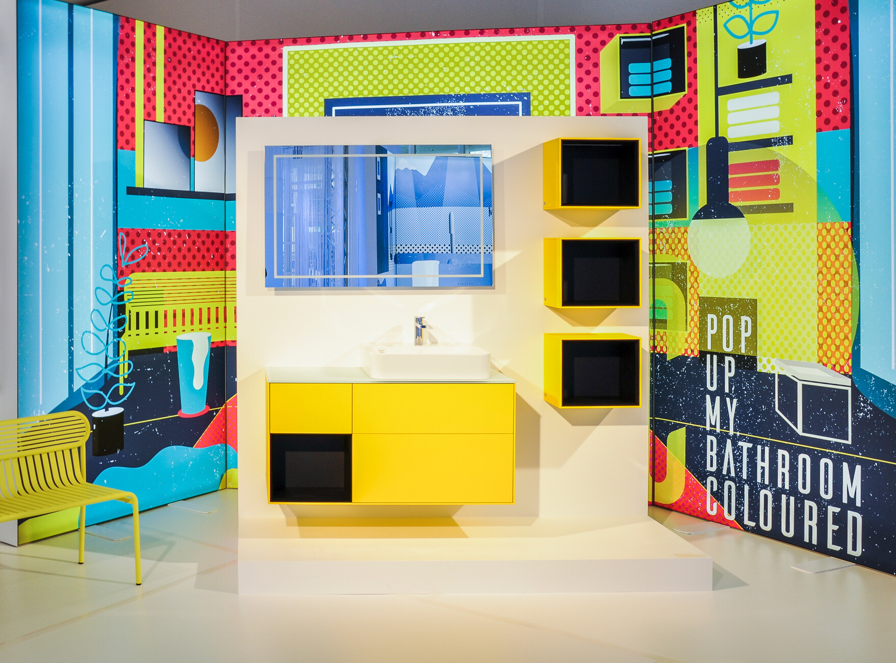 ISH Bäder, die wir lieben14.02.2019Vom Bad zum Wohnraum: Auf der ISH 2019 sind in der Sonderschau "Pop up my Bathroom" Trends in Richtung Farbigkeit zu erleben.
