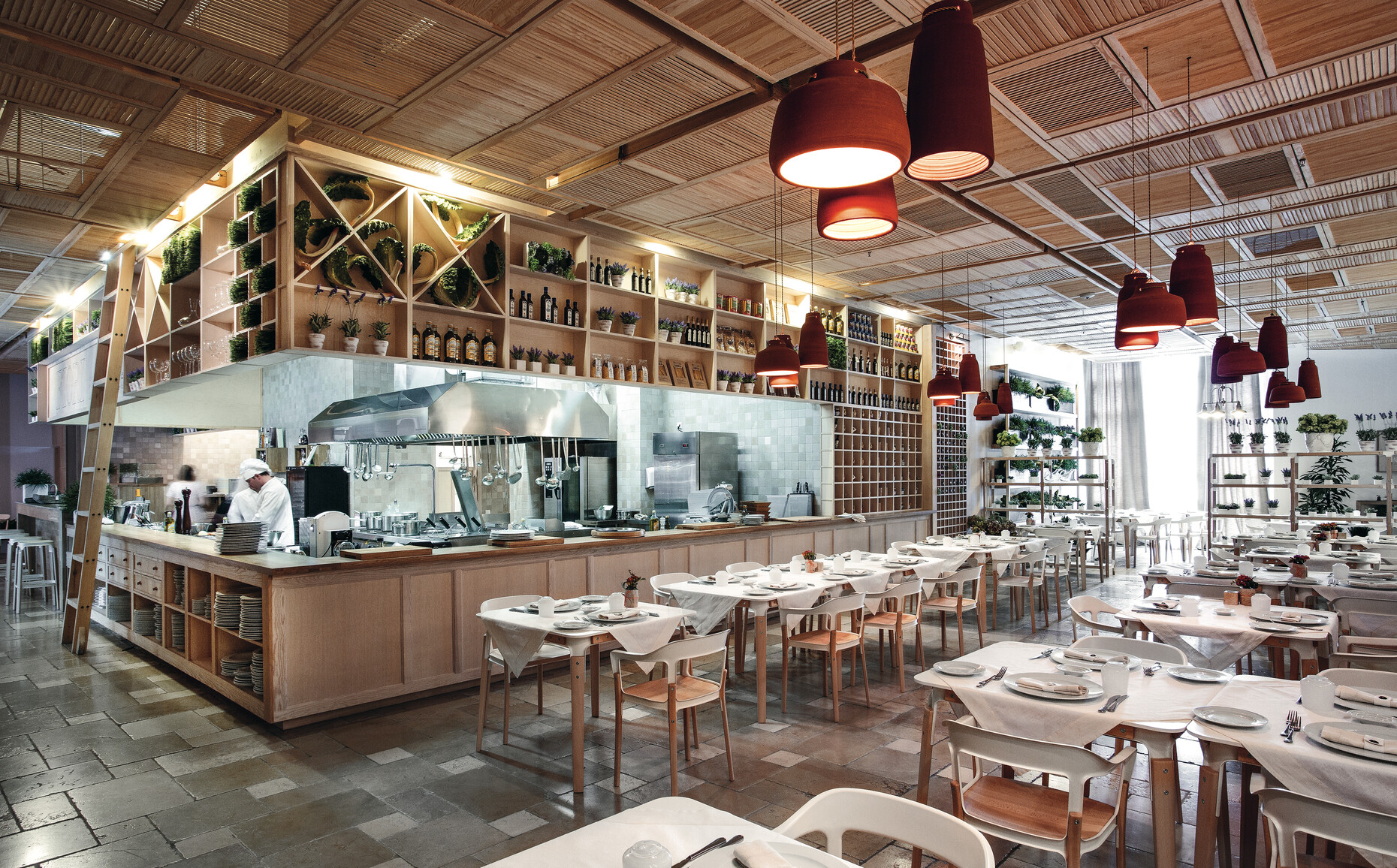 Ob zuhause im Kreis der Familie, ob in Werbeagenturen, Start-ups oder Designer-Studios, überall gibt es heute offene Küchen. Wo früher die Pizza aus dem Karton gefuttert wurde, machen die Kollegen heute Essen füreinander und sitzen gemeinsam mit dem Chef um einen Tisch. Der alltägliche Sinn fürs Kulinarische entwickelt sich mehr und mehr zur Leitkultur. Angenehmer und leichter als beim gemeinsamen Kochen und Essen lassen sich Dinge nicht bereden, Differenzen in der Sache kaum klären. Auch Menschen, die nicht zur selben Abteilung gehören und sonst nicht miteinander sprechen würden, treffen hier aufeinander. So formiert sich für eine halbe oder ganze Mittagsstunde eine Gemeinschaft rund um den Tisch als sozialem Ort – im Geist der Gastlichkeit und jenseits des täglichen Business.
