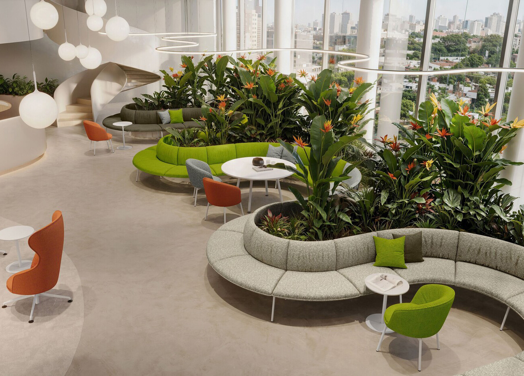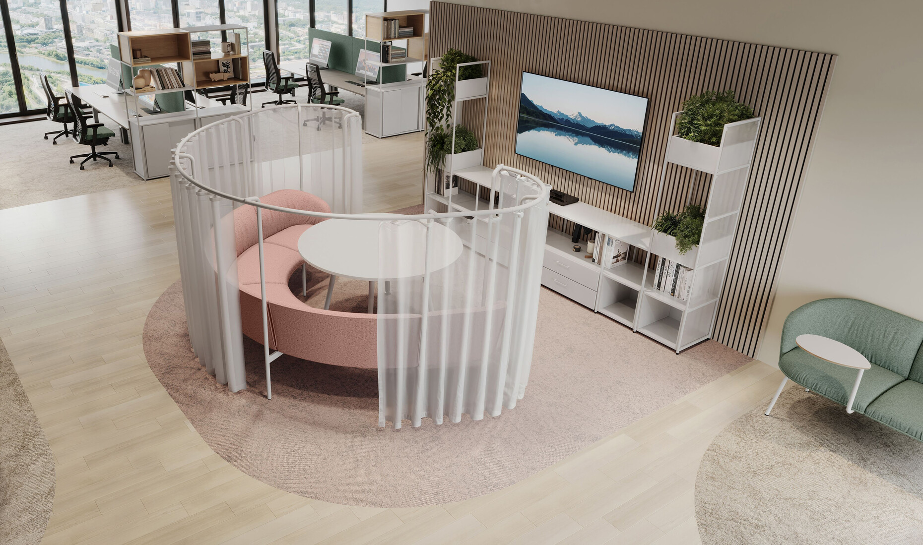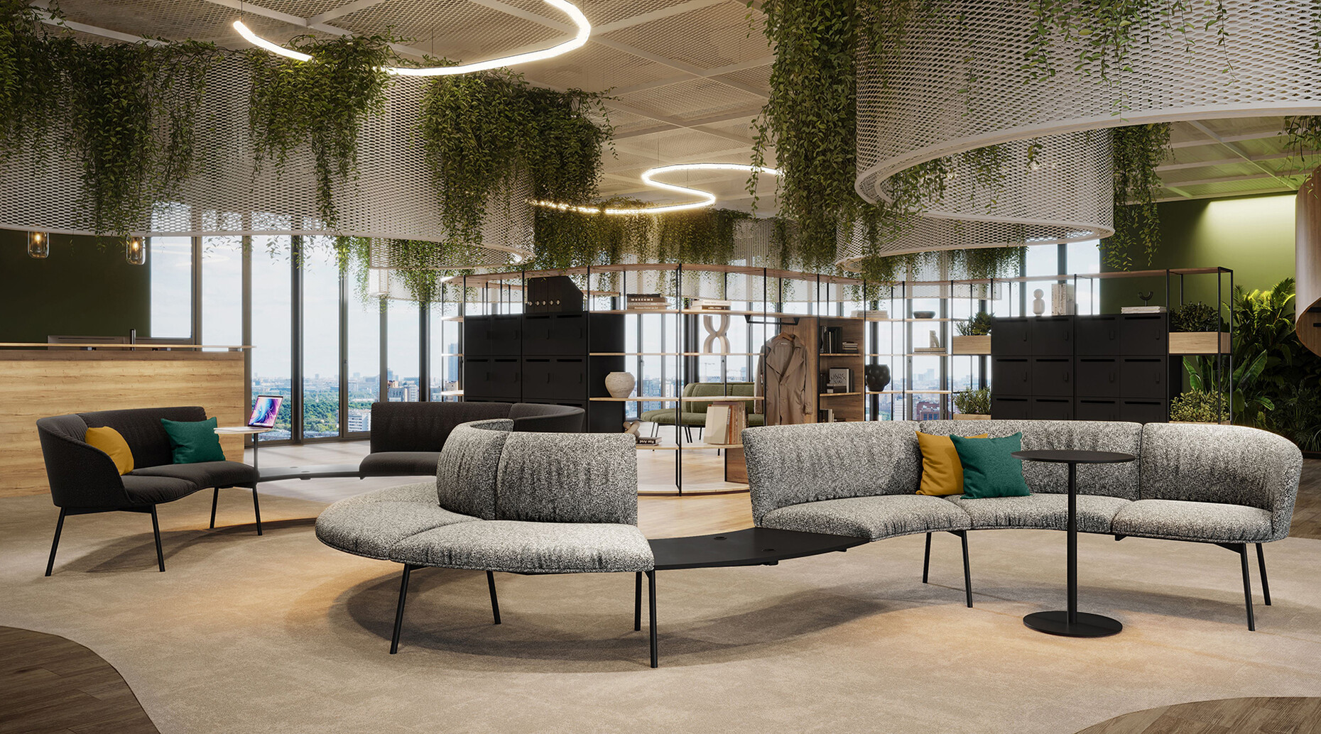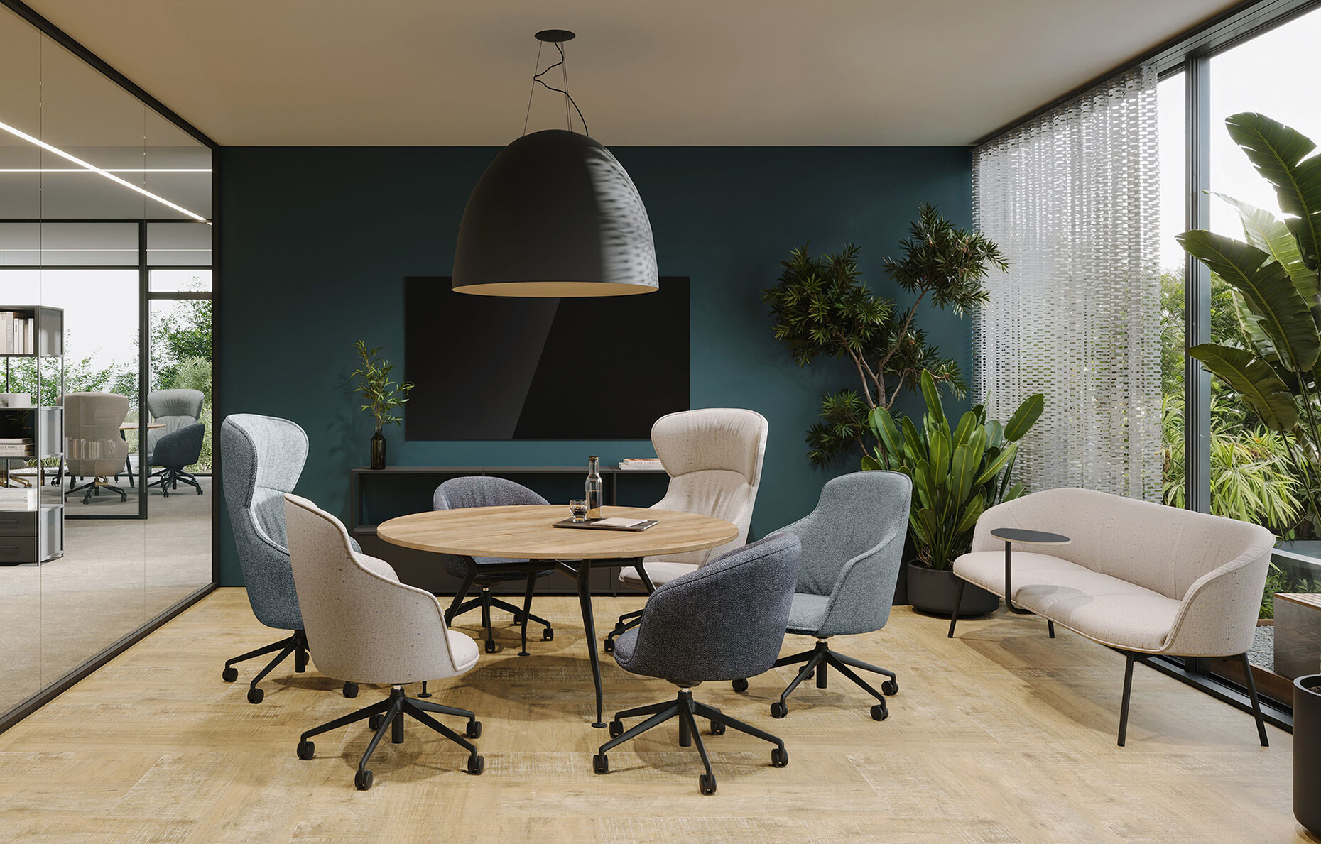In Zeiten der hybriden Zusammenarbeit ändern sich die Bedürfnisse für die Ausstattung von Büroflächen und Kommunikationsbereichen stetig – von der Anzahl der benötigten Sitzplätze, bis zur Auswahl von Farben und Materialien. Die Raumstruktur sollte demnach im besten Fall dynamisch geplant werden. Für diese umfangreiche Gestaltungsaufgabe hat König + Neurath mit Loungesystem "Net.Work.Place Wave" Module geschaffen, die einzeln positioniert wie auch frei kombiniert werden können: Von Sesseln mit unterschiedlichen Höhen der Rückenlehnen über Sitzlandschaften in allerlei Formen sind der Kreativität von ArchitektInnen und PlanerInnen keine Grenzen gesetzt. Dank des modularen Aufbaus kann zudem die Form der Sitzlandschaft sowohl linear wie organisch an den Raum angepasst werden.
