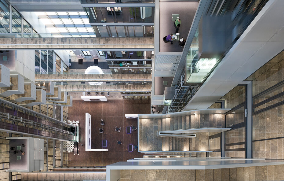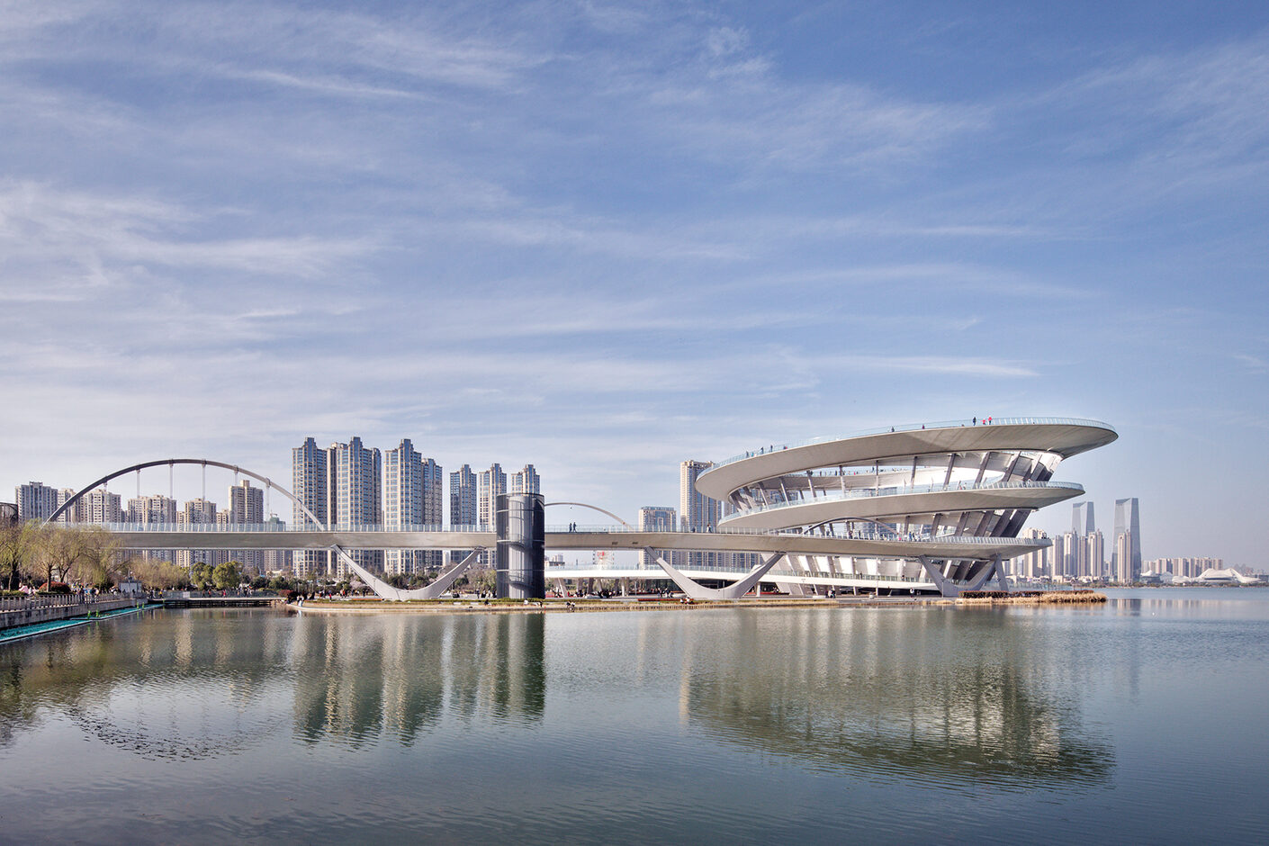 37 Projekte aus den letzten 25 Jahren umfasst die Schau insgesamt, verteilt auf die Werkbänke und sechs Türme, die thematisch miteinander vernetzt sind. Ausziehbare Hohlkammerplatten aus Polycarbonat dienen als interaktive Präsentationsflächen. Das Werk von KSP Engel vollständig darzulegen, ist nicht der Anspruch. Stattdessen werden beispielsweise in den Türmen internationale Projekte herausgestellt, die als Meilensteine am stärksten die Verzahnung der Topologie und der Werkzeuge verdeutlichen – wie die Deutsche Börse, der Central Business Tower (CBT), das Shenzhen Art Museum & Library oder der Umbau des Bestands für die Bundesministerien Berlin. KSP Engel konzipiert Gebäude ganzheitlich, von der stadträumlichen Einbindung bis zur Türklinke und sorgt dabei für einen enormen Wissenstransfer zwischen den zahlreichen Standorten des Büros in Deutschland und China. Einblick in die Arbeit und das Portfolio der Architekturschaffenden wird geboten, aber auch generell aufgeschlüsselt, wie Stadtplanung funktioniert, wie facettenreich diese inhaltlich ist und was für die Entwurfsprozesse ausschlaggebend war.