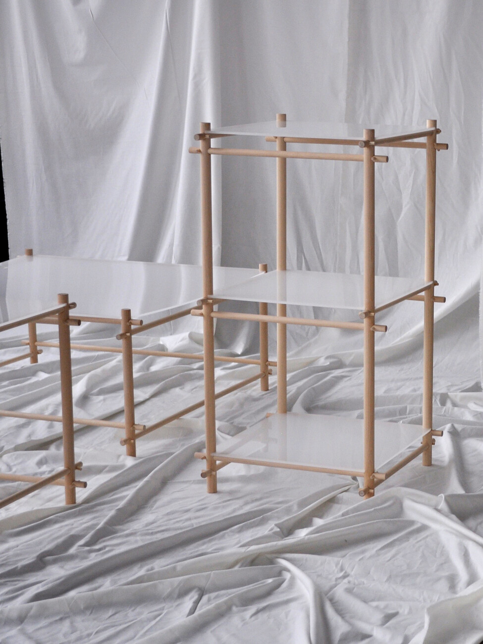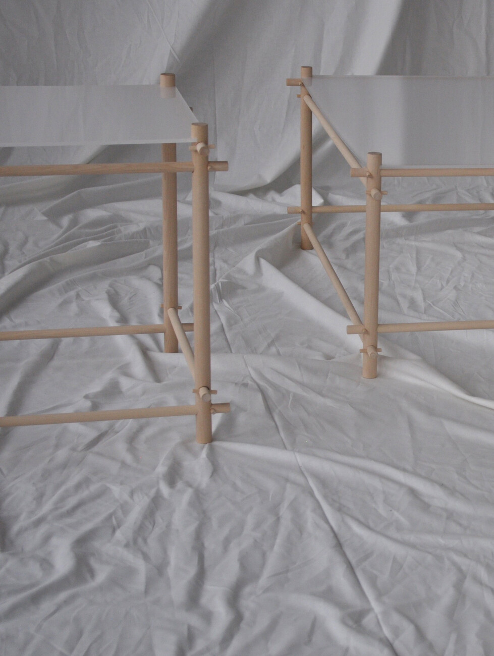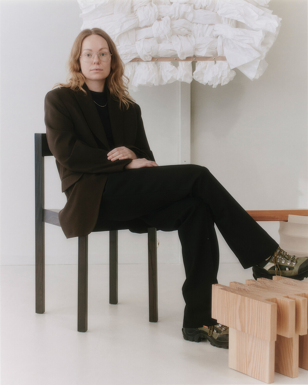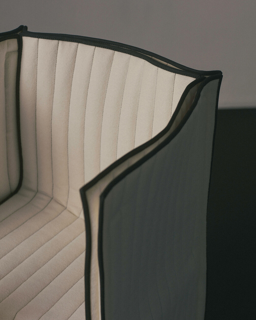 Lærke Ryom: Ich glaube nicht, dass ich jemals nur mit einem Material arbeiten werde, denn jedes hat so viel zu bieten. Aber im Moment bin ich sehr an der Arbeit mit Textilien interessiert. Wenn man mit Metall und Holz arbeitet, ist alles sehr geplant und absichtlich. Bei Textilien muss man auch planen, aber das Material ist lebendiger. Es gibt etwas zurück – sei es der Faltenwurf oder die Bewegung im Material. Es macht sehr viel Spaß, damit zu arbeiten. Ich finde es sehr interessant, Materialien in einen neuen Kontext zu bringen – wie Textilien in Möbel. Für mich ist die Arbeit mit meinen Händen eine Möglichkeit, die Welt zu verstehen. Ich verstehe sie, indem ich sie berühre und mich mit meinem Körper auf die Welt einlasse. Wir sind daran gewöhnt, dass Textilien einen großen Teil unseres Lebens ausmachen, und es gibt eine starke physische Beziehung zwischen Möbeln und dem Körper. Wir beziehen uns sowohl auf die Größe als auch auf die Art und Weise, wie wir interagieren, wie wir am Tisch sitzen, wie wir uns auf den Hocker setzen. Wir sind mit unseren Kleidern in sie eingehüllt. Indem ich einige Techniken von der Kleidung übernehme oder Bezüge zur Kleidung hinzufüge, kann ich mit dieser Beziehung arbeiten und eine engere Beziehung zu einem Möbelstück herstellen.