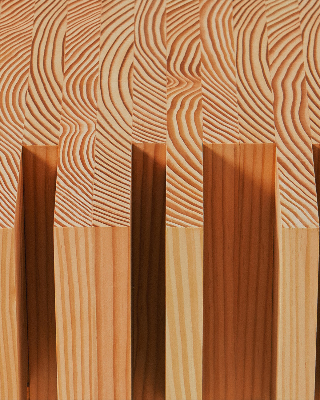 Lærke Ryom: Die Off-Cut-Kollektion, die ich aus Dinesen-Holz hergestellt habe und die ebenfalls aus Abfallmaterial besteht, hat Ähnlichkeiten mit dem Blue-Projekt. Ich fange immer mit Mustern an und arbeite mit der Hand, das gibt so viel Inspiration für den Prozess und ist wirklich wichtig für das Ergebnis. Und ich stelle fest, dass ich mich sehr zu Wiederholungen hingezogen fühle. Die Muster, die durch Wiederholungen entstehen, finde ich sehr interessant. Ich möchte, dass das Design, das ich entwerfe, etwas ist, das man lange benutzen und betrachten kann, und dass man jedes Mal, wenn man es anschaut, neue Details entdeckt. Wenn ich die Wiederholungen mit meinen Händen mache, können meine Gedanken abschweifen. Ich konzentriere mich wirklich auf das Projekt, an dem ich arbeite, aber gleichzeitig kann ich in die Zukunft oder in die Vergangenheit abdriften. Dort entstehen dann oft Ideen für die Zukunft. Es ist eine Zeit der Reflexion für mich und sehr wichtig für meine Arbeit.