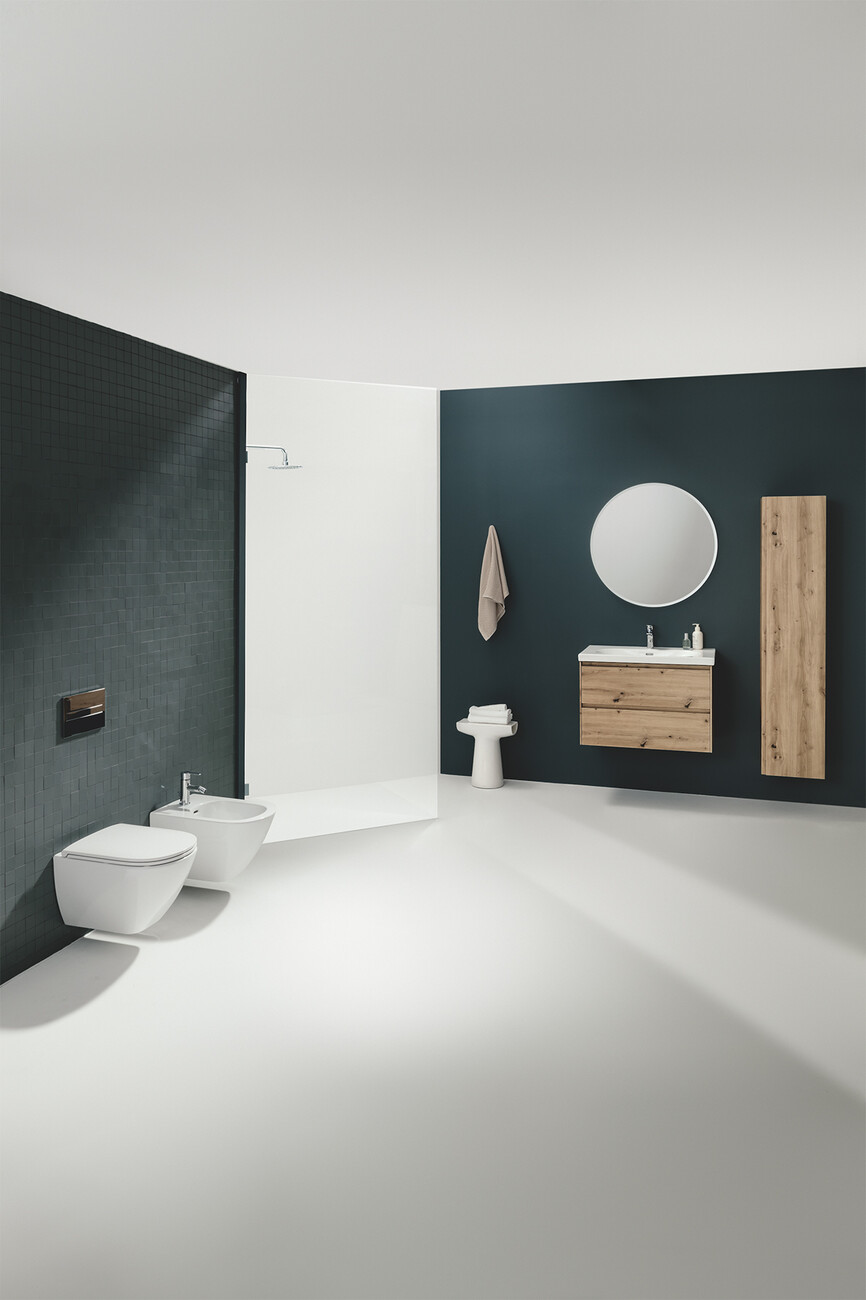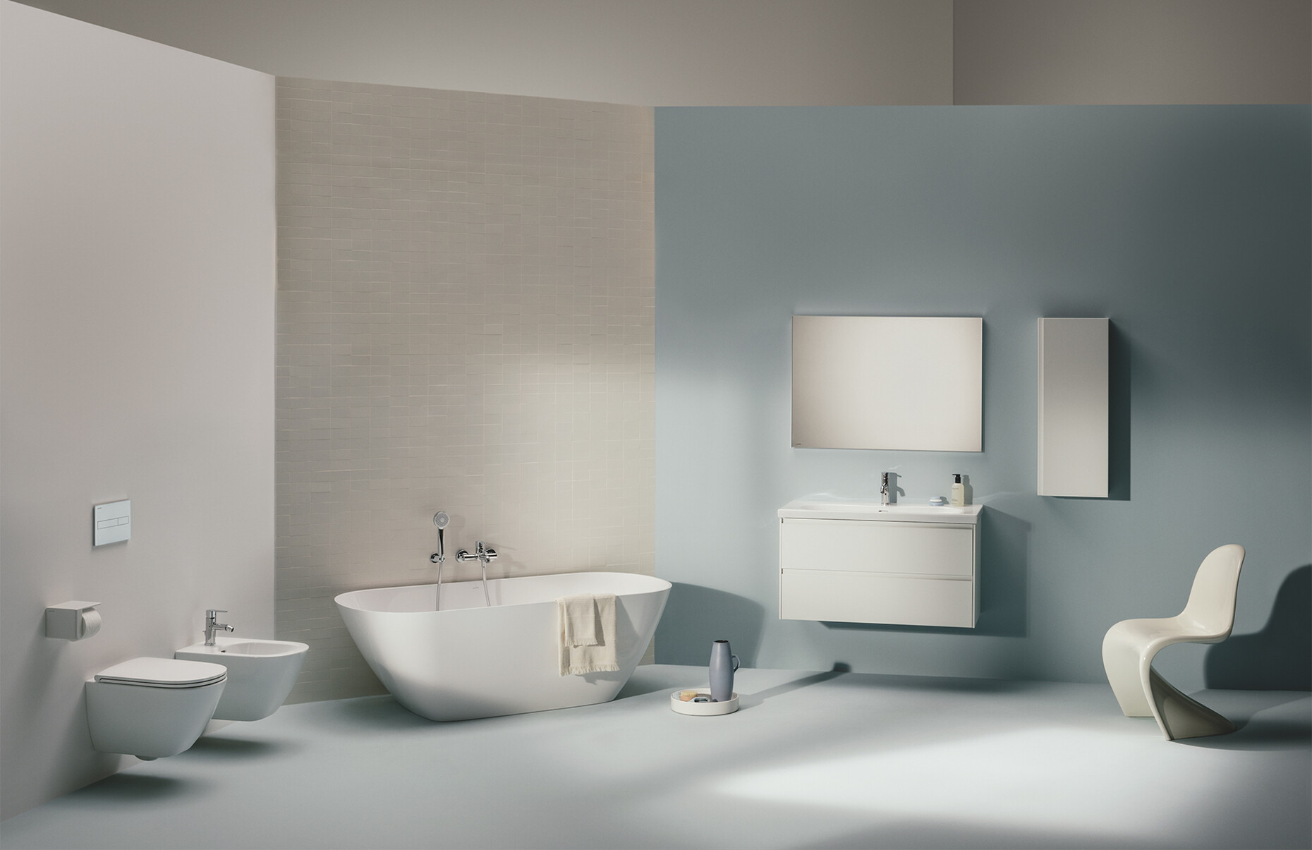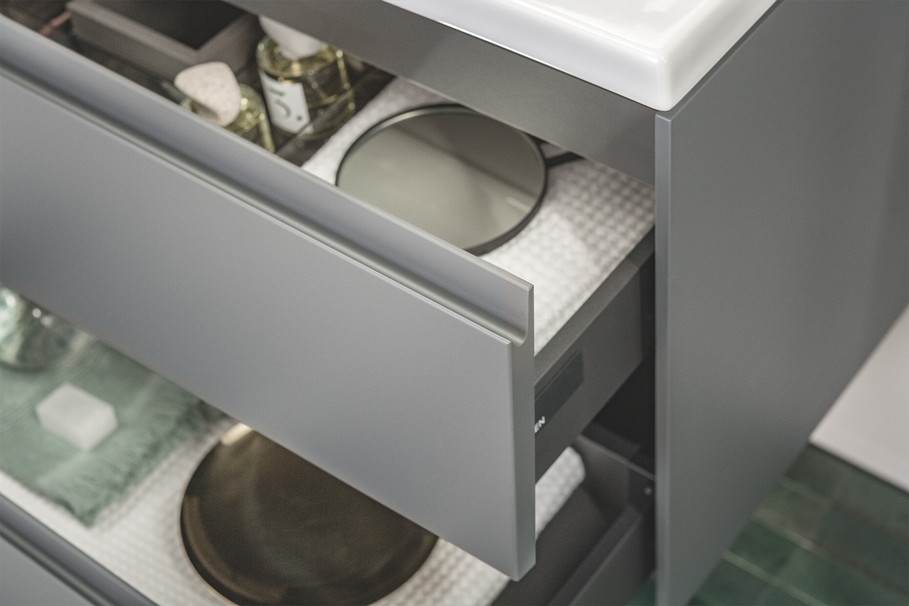 Im Ergebnis ist "LANI" mit ausdrucksstarken Linien versehen, die zu einem ausgeglichenen Gesamtbild beitragen, ohne jeweils zu expressiv zu wirken. Eine ästhetische Gestaltung für ein Badmobiliar, fernab von schnelllebigen Trends, das zudem praktisch in der Verwendung und einfach in der Montage ist. Alle Befestigungselemente der Möbel sind somit mühelos 3D-verstellbar und bieten eine Aushängesicherung. Angenehme Details sind auch die sanft schließenden Türen und Schubladen mit eingearbeiteter Griffmulde, wie die schlanken Seitenpaneelen der Korpusse. Im Inneren der Schränke finden Handtücher und Pflegeprodukte auf eleganten Glastablaren Platz. Für die Wahl der Oberflächen gibt Nguyen den KundInnen viel Freiraum an die Hand: Neben den klassischen Farben Weiß und Grau sind 38 weitere Varianten für die Lackierung möglich, darunter Sonderfarben wie Gold, Kupfer oder Titan. Ist für das ausgewogene Gesamtbild eine natürliche Optik gefragt, bietet Laufen für "LANI" zudem eine Holzoptik in Wildeiche. Alle Holzmaterialien der Kollektion stammen indes aus PEFC und FSC-zertifizierten Quellen europäischen Ursprungs. "LANI" ist eben in sich schlüssig – bis in die Details. (am)