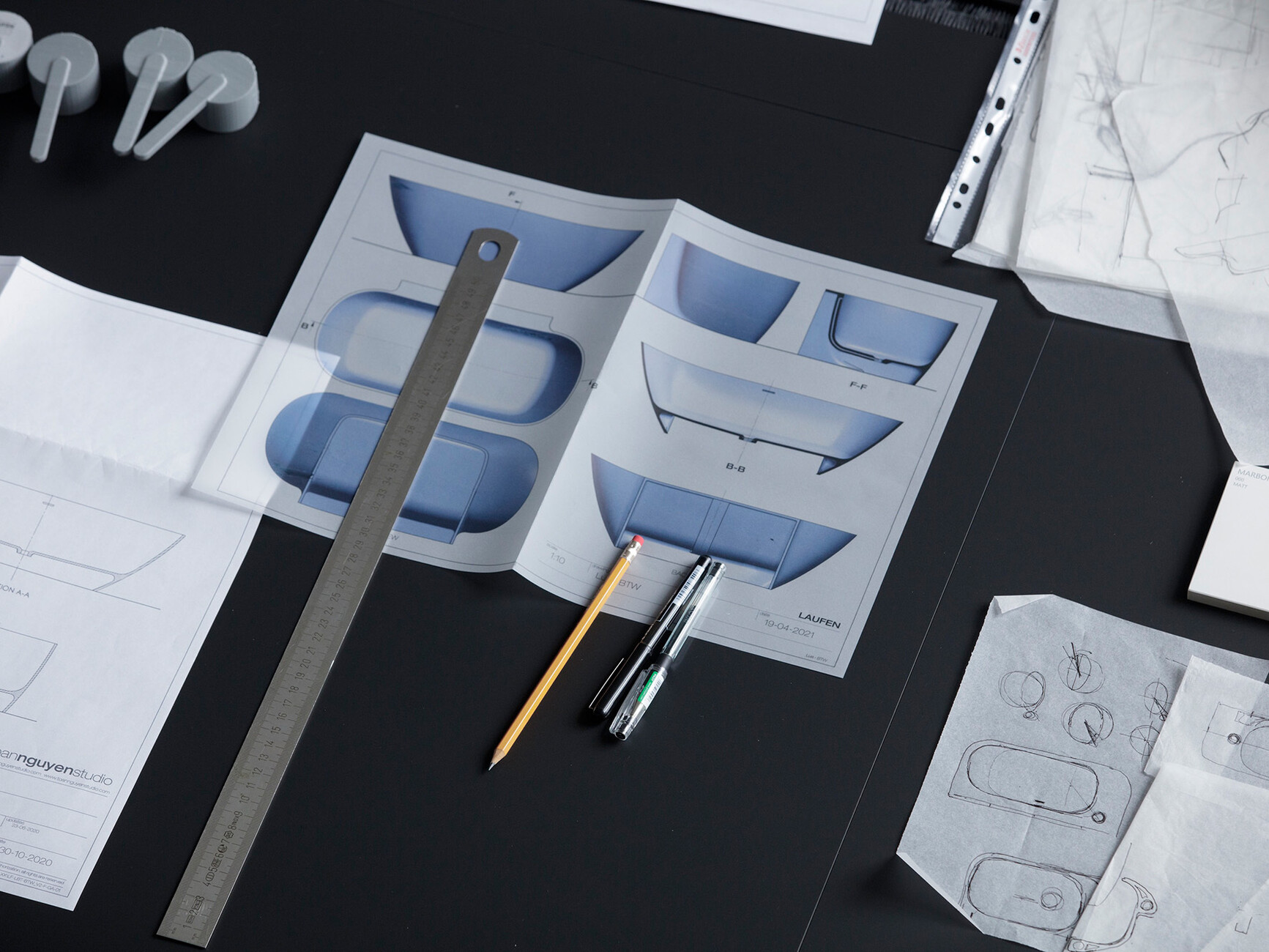 Was braucht ein Bad, um stets aufgeräumt zu wirken? Stauraum natürlich. Ebenso wichtig für den harmonischen Eindruck ist allerdings eine ausgewogene Gestaltung des Mobiliars. Der französische Designer Toan Nguyen hat bereits mit der Kollektion "LUA" für Laufen unter Beweis gestellt, dass er diesen Anspruch im Design umzusetzen weiß. Mit "LANI" führt er die Idee einer reduzierten Badgestaltung fort, die in sich stimmig wirkt. "Ich wollte keine Badkollektion gestalten, die wirkt, als sei sie aus unterschiedlichen Kästen zusammengesetzt", sagt er. "LANI" bietet so Waschtischunterschränke, Schränke, Waschtischplatten, Schubladenelemente, Spiegel und Spiegelschränke, die perfekt mit anderen Kollektionen von Laufen kombiniert werden können. "Wir möchten für jede Dimension und jedes Bad eine Lösung anbieten, die sowohl die Anforderungen der EndverbraucherInnen wie die der ArchitektInnen berücksichtigt", erklärt der Designer. Den Startpunkt setzt er dabei mit dem Bleistift, denn jede Suche nach der perfekten Idee beginnt für ihn mit einer Skizze. Es folgt ein 3D-Modell und der für ihn wichtigste Part: Der Austausch. "Die Zusammenarbeit mit dem Team von Laufen ist sehr wertvoll und ihr Feedback ist immer konstruktiv.", sagt er. Und fügt an: "Wir erzwingen den Prozess nicht, sondern arbeiten gemeinsam an dem Produkt, bis es in sich logisch ist".